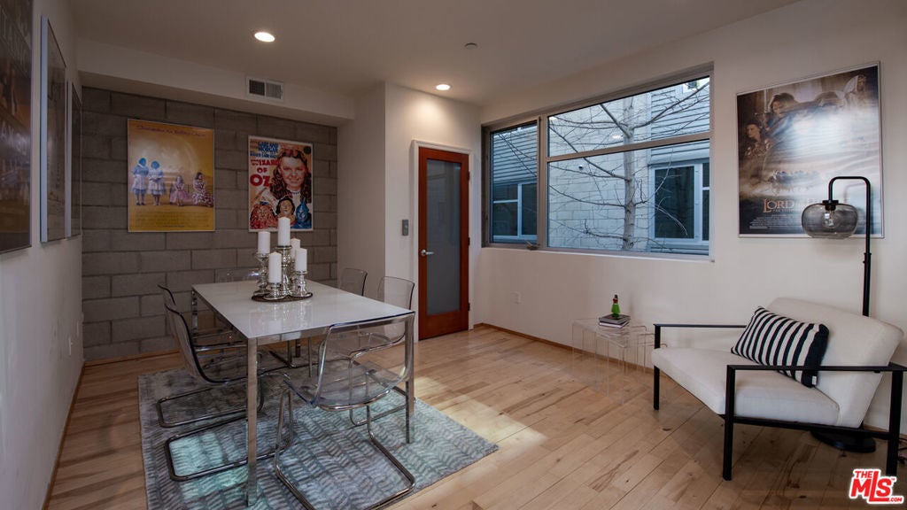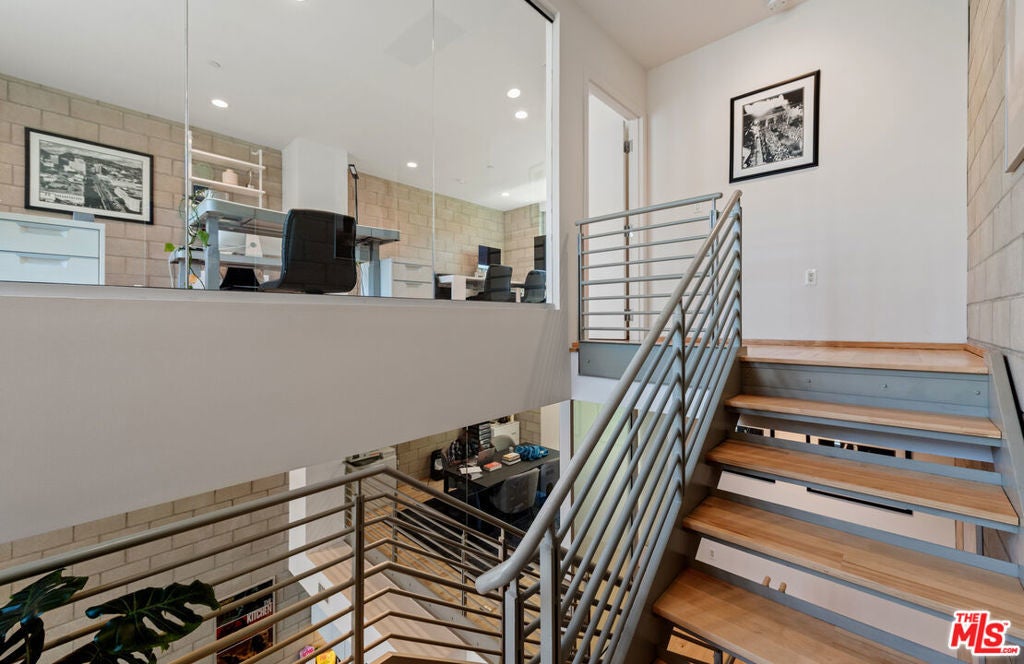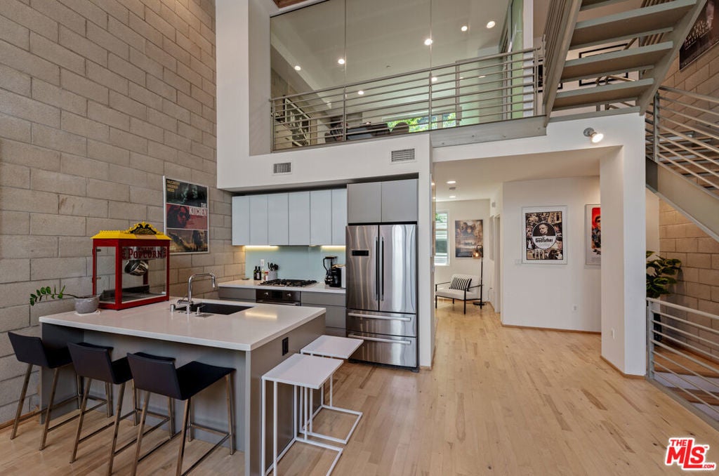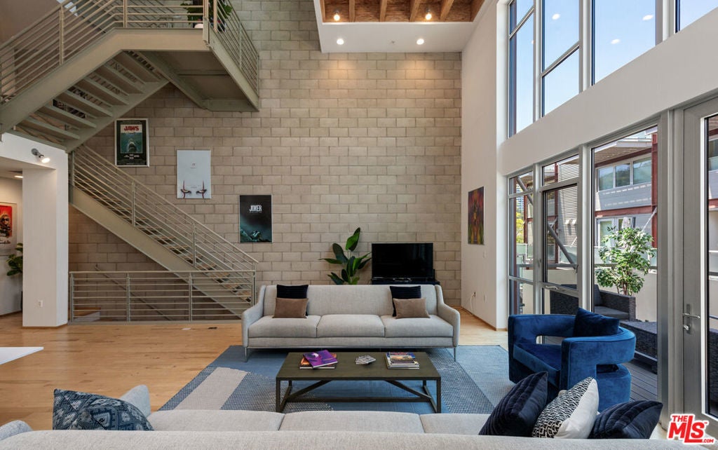 Located in the sought-after Hollywood Hillsis this modern architectural live-work townhouse loft, boasting a rare double-wide floor plan that rarely comes available for sale.The industrial-chic design features soaring high 18 ft ceilings on the main floor, flooded with natural light through massive floor-to-ceiling windows. The open floor plan seamlessly integrates the entertaining spaces with the kitchen, featuring stainless steel appliances. The living room leads directly to a large balcony, while a bonus office space and powder room round out the main floor. The primary suite offers a private balcony and an en-suite spa-like bathroom with a double vanity and soaking tub, while the guest bedroom also features an en-suite bathroom. The oversized private garage can accommodate four cars and includes a gym space with an outdoor patio ideal for pets. The current owners added an elevator from the garage to the main floor, providing an incredibly valuable convenience when transporting groceries. Building amenities include controlled access, valet parking during business hours, guest parking, and common area lounges with BBQ facilities. Situated just outside Universal and close to major studios in Burbank, this live-work zoned property presents the perfect opportunity for work-from-home professionals looking for both luxury and convenience.