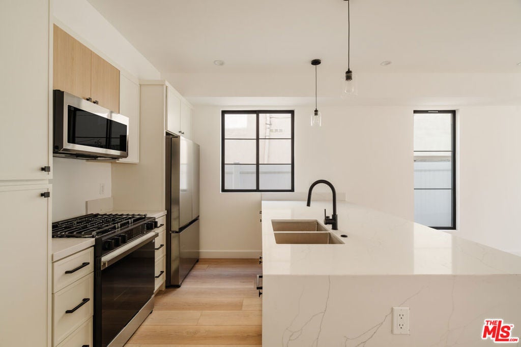 **1ST MONTH FREE PROMO - SEE FULL DESCRIPTION** LARGE DEDICATED LAUNDRY ROOM**DUAL ZONE CENTRAL AC**2 ASSIGNED PARKING SPACES**PRIVATE ROOF DECK**PRIVATE FRONT YARD**IN-UNIT WASHER/DRYER**PET FRIENDLY** Welcome home to your new casita. This meticulously designed new construction complex brings a breath of fresh air to the rental market with its Spanish flair. High ceilings, sleek finishes, warm hardwood flooring, quartz kitchen and bathroom countertops, and vibrant Mediterranean-inspired tiles are tastefully blended giving the residence an airiness and warmth throughout. Large picture windows allow natural light to pour in on all levels. This unit spans over 2,300 SF and features 6 bedrooms and 5 bathrooms. The home comes complete with an in-unit washer and dryer, two balconies, a large private roof deck with sweeping views, and an open concept kitchen/living area that spills onto a spacious enclosed front patio through beautiful modern french doors. These residences are nestled in a residential neighborhood of Los Angeles sprawling with businesses and institutions that cater to many lifestyles (hospitals, schools, auto shops, etc.); just one block away there is a plaza home to a Target, Coffee Bean & Tea Leaf, CVS, Smart & Final, and more. *Tenant pays all utilities **1ST MONTH FREE PROMO - PRICE SHOWING 12 MONTH SPREAD - BASE RENT $8,695**