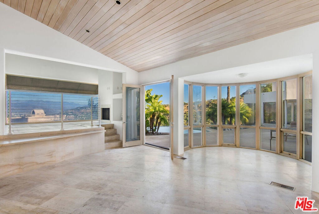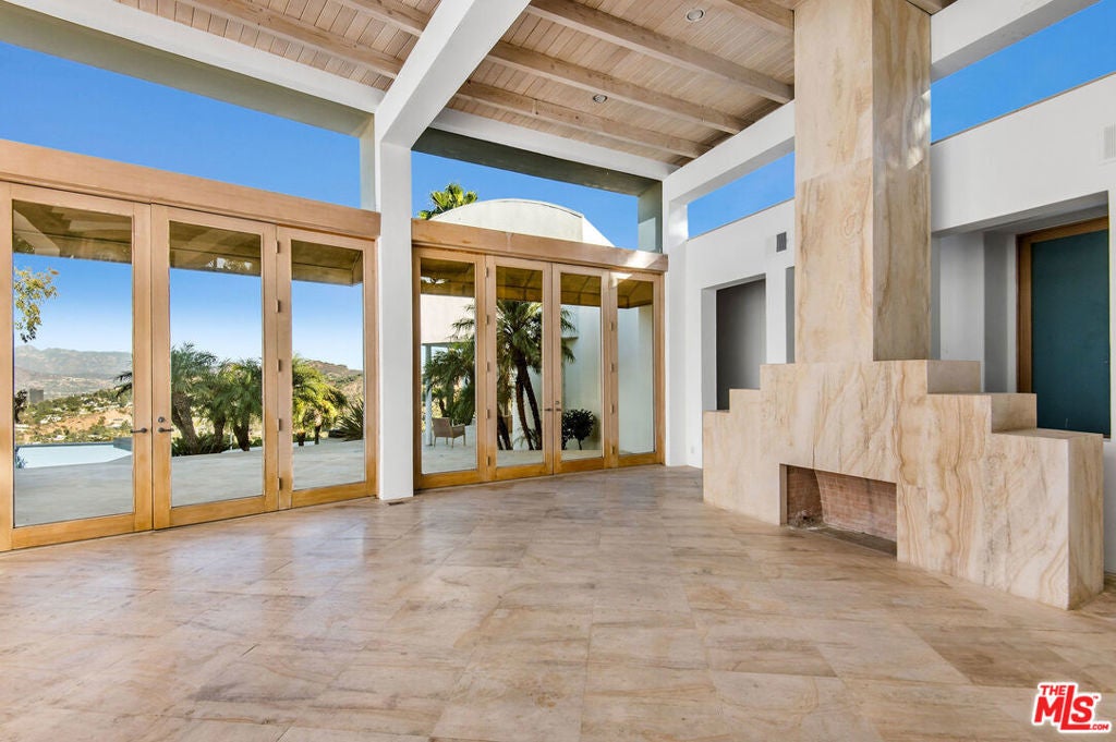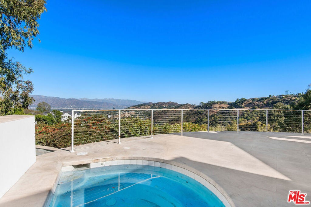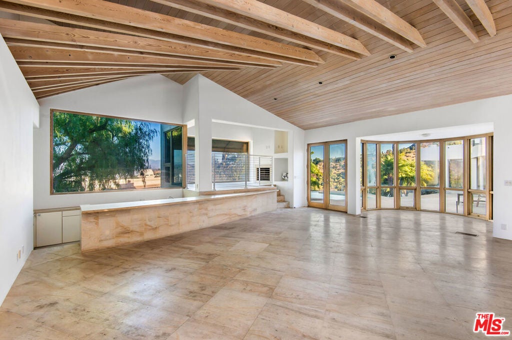 Also avail for lease. Nestled in The Summit, a prestigious 24-hour guard-gated community in Beverly Hills, this spectacular contemporary estate offers an unparalleled living experience with breathtaking panoramic views. Designed by renowned architect Ron Goldman, this custom home combines striking architectural design with seamless indoor-outdoor living. The expansive floor plan features high ceilings, walls of glass, and luxurious French limestone floors that flow throughout, creating a light-filled environment with an effortless connection to the outdoor spaces. The home includes a gourmet kitchen with European cabinetry and granite countertops, an eat-in nook, and spacious living areas, including a family room, media room, and formal dining room. The master suite offers a private retreat with a loft office, steam shower, sauna, and Jacuzzi tub. Additional spaces include a separate maid's quarters and a subterranean garage. Outside, the meticulously landscaped grounds feature an infinity pool and spa, offering stunning views of the city lights and surrounding mountains. Perfect for entertaining, the property seamlessly blends luxury and comfort with its expansive layout, including a tropical courtyard, high-beam ceilings, and a serene poolside setting. This architectural gem is a must-see. Lease term of 18+ months only.