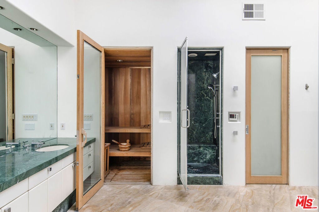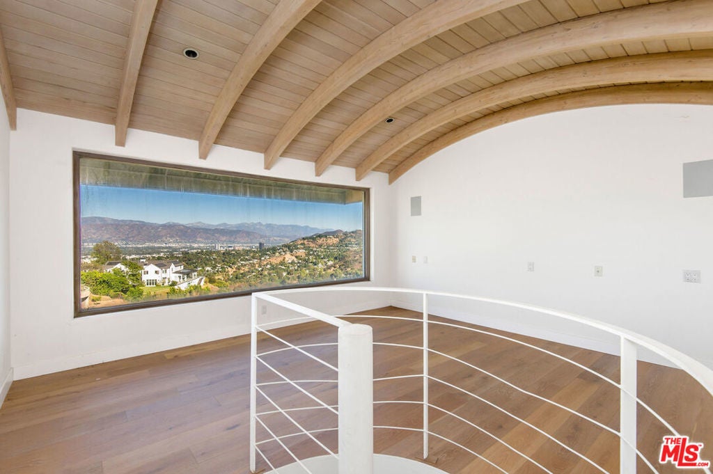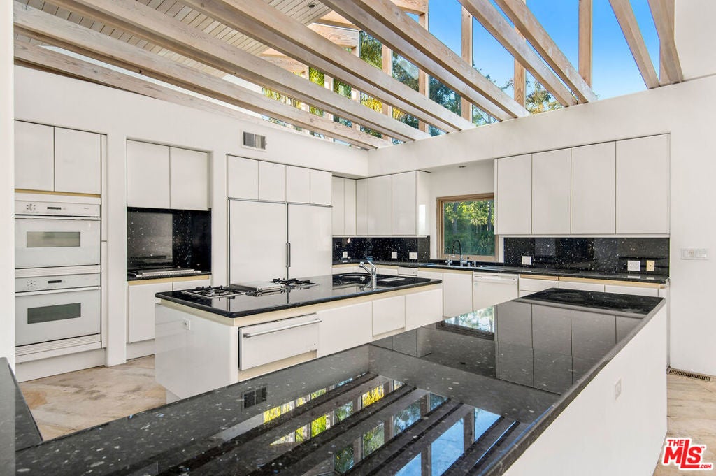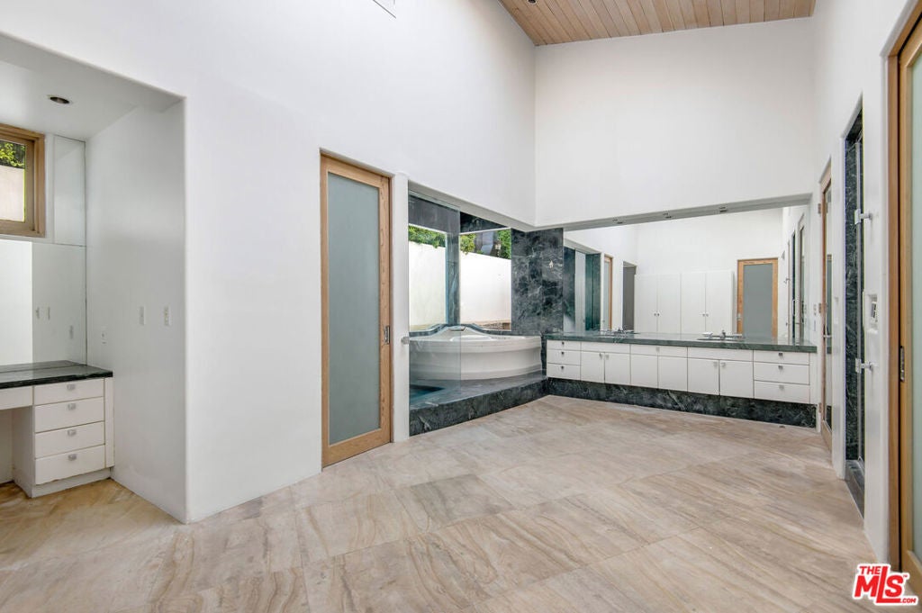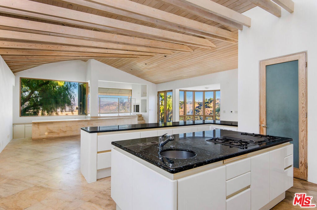 Also avail for lease. Nestled in The Summit, a prestigious 24-hour guard-gated community in Beverly Hills, this spectacular contemporary estate offers an unparalleled living experience with breathtaking panoramic views. Designed by renowned architect Ron Goldman, this custom home combines striking architectural design with seamless indoor-outdoor living. The expansive floor plan features high ceilings, walls of glass, and luxurious French limestone floors that flow throughout, creating a light-filled environment with an effortless connection to the outdoor spaces. The home includes a gourmet kitchen with European cabinetry and granite countertops, an eat-in nook, and spacious living areas, including a family room, media room, and formal dining room. The master suite offers a private retreat with a loft office, steam shower, sauna, and Jacuzzi tub. Additional spaces include a separate maid's quarters and a subterranean garage. Outside, the meticulously landscaped grounds feature an infinity pool and spa, offering stunning views of the city lights and surrounding mountains. Perfect for entertaining, the property seamlessly blends luxury and comfort with its expansive layout, including a tropical courtyard, high-beam ceilings, and a serene poolside setting. This architectural gem is a must-see. Lease term of 18+ months only.