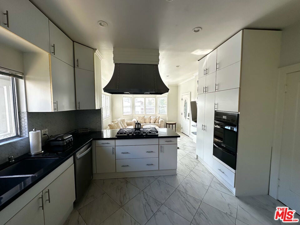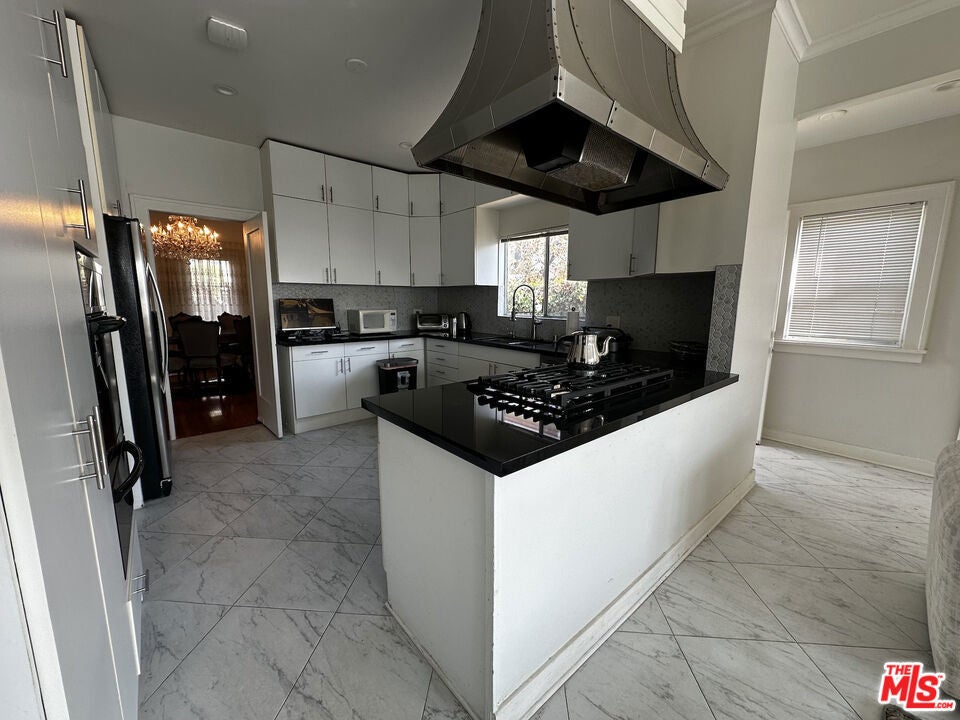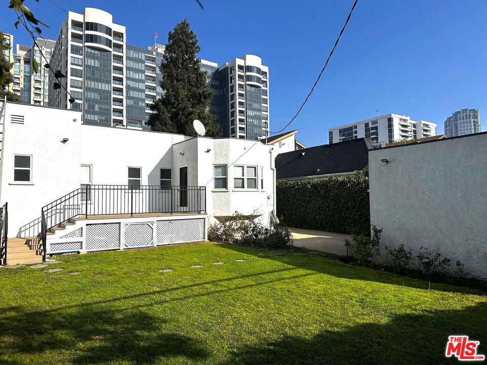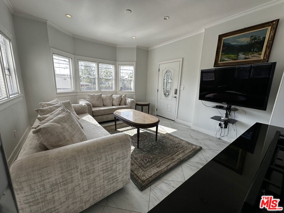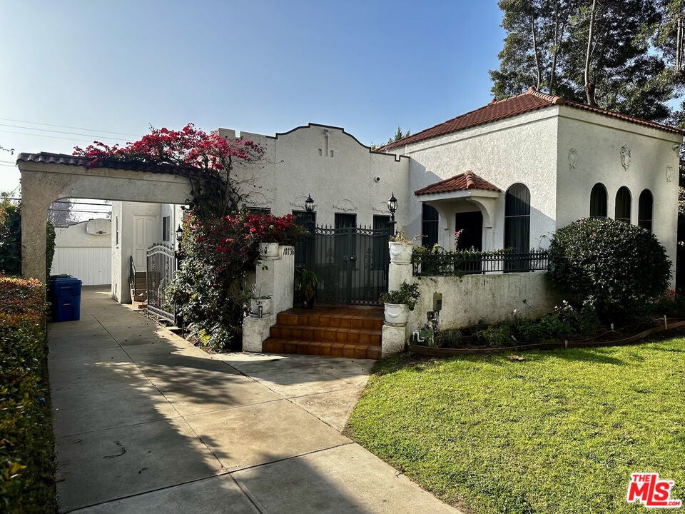 This beautiful Spanish-style home in prestigious Westwood features a classic central floor plan with elegant formal living and exclusive dining rooms, both with hardwood flooring. The remodeled eat-in kitchen boasts white tiles and stainless steel appliances, while the updated powder room adds modern convenience. The spacious living room is filled with natural light through floor-to-ceiling windows and includes a fireplace, a private deck, and views of the lush backyard. The home offers two bedrooms, with the primary suite featuring two closets. A spacious patio opens from the den, leading to a beautifully landscaped private backyard. Additional amenities include a laundry section with backyard access, parking for up to seven cars, and a two-car garage. Ideally located just blocks from Century City, with easy access to UCLA and Beverly Hills, the home is also situated in the Fairburn Elementary School District, according to the LAUSD website. For added convenience, the home fully furnished.