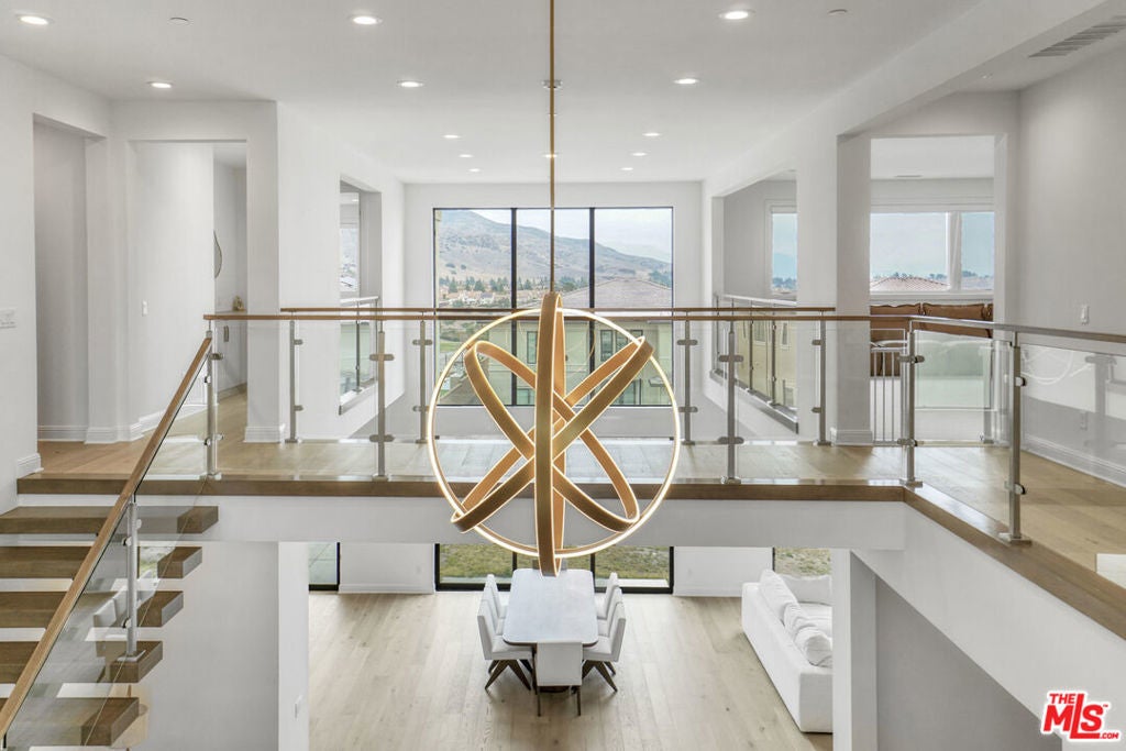 **FULLY UPGRADED** "Harbor Coastal Contemporary" home from the Skyline Collection is situated in the prestigious guard-gated community of Westcliffe. It offers breathtaking mountain views and generous outdoor space. Built in 2024, this residence showcases high-end design throughout. As you enter, you'll be welcomed by a striking floating staircase and soaring ceilings. The main living area features oversized glass windows and three sets of large stacking doors that seamlessly connect to the outdoors, enhancing the indoor-outdoor living experience. The chef's kitchen, equipped with stone countertops and premium Wolf/SubZero appliances, opens into the dining and living areas, making it perfect for entertaining. Step outside to a spacious backyard that offers ample room for a pool, fire-pit, outdoor kitchen and basket ball court, all complemented by stunning hilltop views. The main floor includes an impressive guest room with a spa-like bathroom featuring a custom upgrades and stunning views. Additionally, there is a versatile multi-purpose room that can serve as an office or playroom.Upstairs, you'll find another family room, ideal for an in-home theater, along with even more spectacular views. The primary suite is spacious, boasting mountain views, a luxurious spa-like bathroom, and a large walk-in closet. All guest rooms and bathrooms maintain the same high-quality finishes found throughout the home. Additional features include a three-car garage and solar panels for energy efficiency. Westcliffe is conveniently located near a new park with walking trails, dog parks, and sports courts, as well as restaurants, a movie theater, and grocery stores. Top-ranked schools and golf courses are also nearby. Don't miss the opportunity to see this stunning contemporary hillside home!
