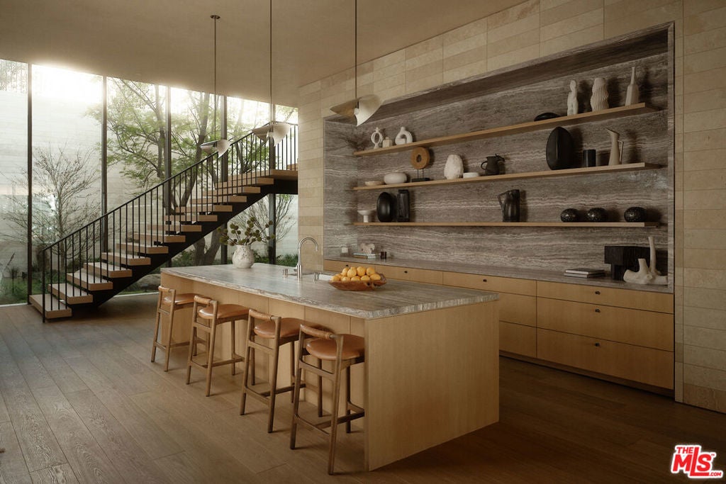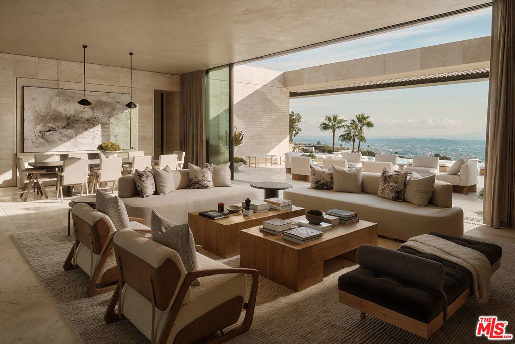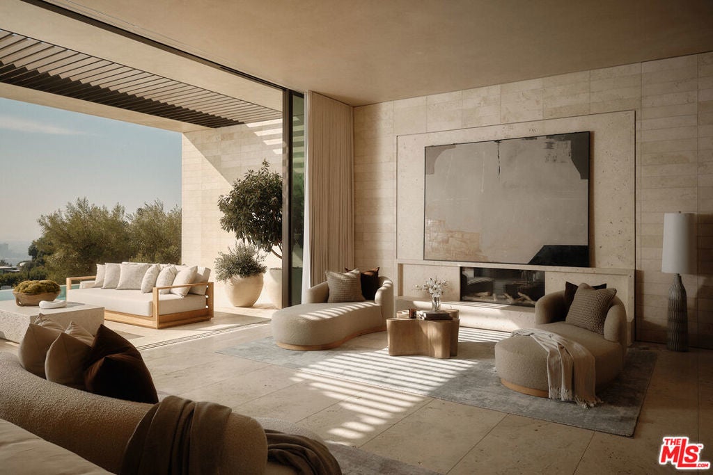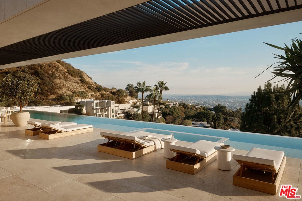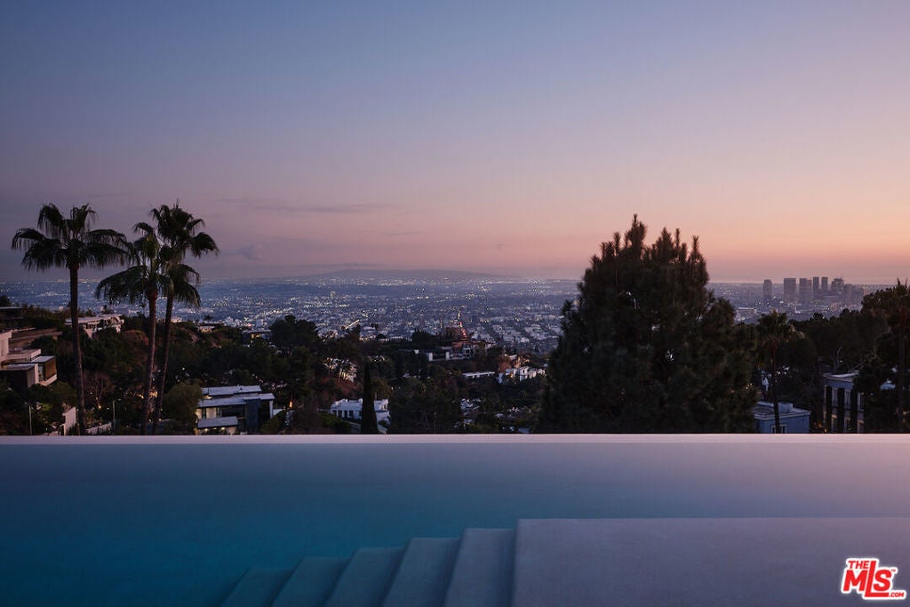 Designed by the internationally acclaimed architectural firm Woods + Dangaran, this extraordinary estate commands unparalleled 280 southern views, spanning from the glittering Los Angeles skyline to the vast expanse of the Pacific Ocean. Crafted with 200 tons of hand-selected Turkish Travertine, the residence is a masterpiece of modern design, where floor-to-ceiling glass panels and White Oak accents invite abundant natural light, creating an atmosphere of warmth and sophistication. At the heart of the home, a state-of-the-art chef's kitchen outfitted with Gaggenau and Sub-Zero appliances, seamlessly integrates with the exquisitely designed formal dining room and living space, both of which open to the 115-foot infinity pool that spans the length of the estate, offering an unparalleled setting for entertainment and relaxation. The primary suite is a private sanctuary, evoking a spa-like retreat with a soaking tub, expansive custom closets, and a secluded atrium, ensuring tranquility and refinement. A striking two-story glass enclosure houses a 35-foot Jacaranda tree, serving as the estate's living centerpiece - a breathtaking fusion of architecture and nature. Designed for unrivaled luxury and wellness, the estate boasts an array of premier amenities, including a private theater, gym, spa, wine cellar, and lounge. Advanced Delos Super V air purification technology ensures an environment of pristine air quality, capturing and reducing ultrafine particles to promote health and well-being. Every element of this estate has been meticulously curated to redefine luxury living, where form, function, and artistry converge to create an unparalleled residential experience. Nightingale is not just a home but a sanctuary of sophistication, serenity, and distinction.