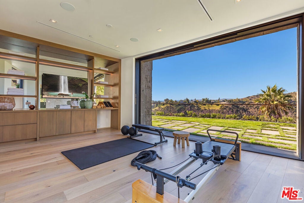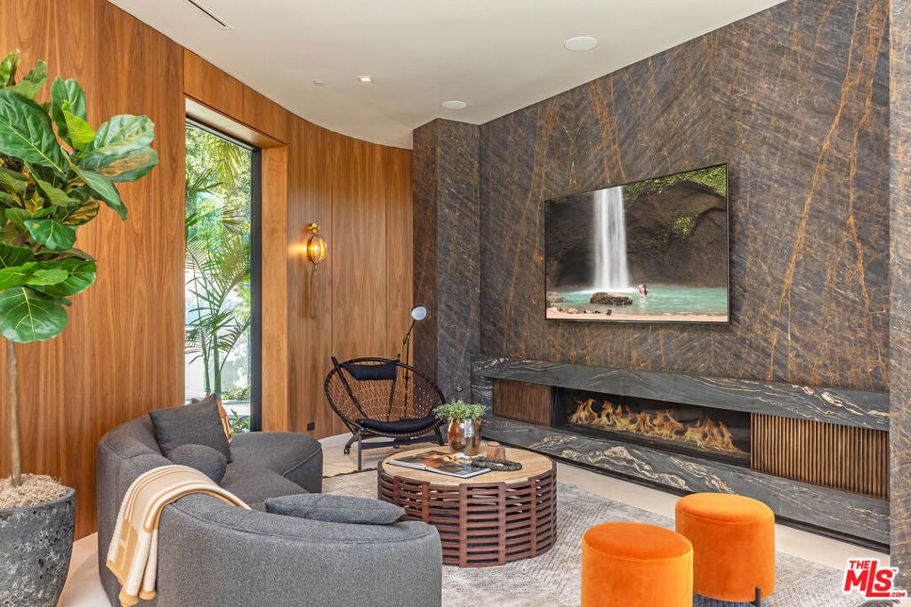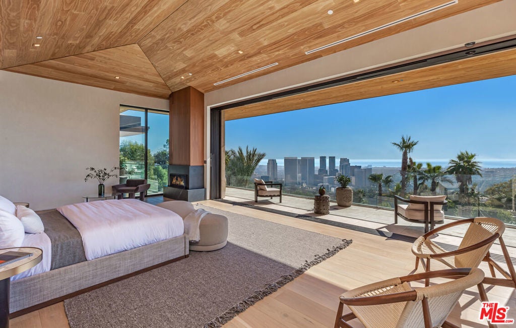 Experience ultimate luxury living in this exclusive Beverly Hills estate. This private, gated compound offers resort-style amenities on a sprawling lot. Upon arrival, you'll be greeted by a striking waterfall and lush landscaping, with ample parking for up to 10 cars. The estate features a hand-tiled Balinese pool, spa, and fire pit, complemented by stunning 180-degree city and ocean views. Enjoy outdoor dining with a full kitchen, expansive grassy yard, and sports/pickleball court. A wellness spa and gym with floor-to-ceiling glass doors open to breathtaking grounds. Inside the spacious main house, you'll find luxurious details including a great room with panoramic views, a gourmet kitchen with a 12-ft island, and a wood-paneled office with a bar. The home offers two primary suites, each with luxurious baths and terraces, plus three additional ensuite bedrooms and a vast outdoor deck. Additional features include a 2-bedroom, 2-bath guest apartment, a state-of-the-art theater, a tequila tasting room, a poker room, a 2000-bottle wine cellar, and a ~3000-sf finished garage with a glass elevator. With perfect finishes throughout, this estate is designed for those seeking an unparalleled rental experience in Beverly Hills.