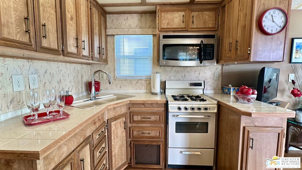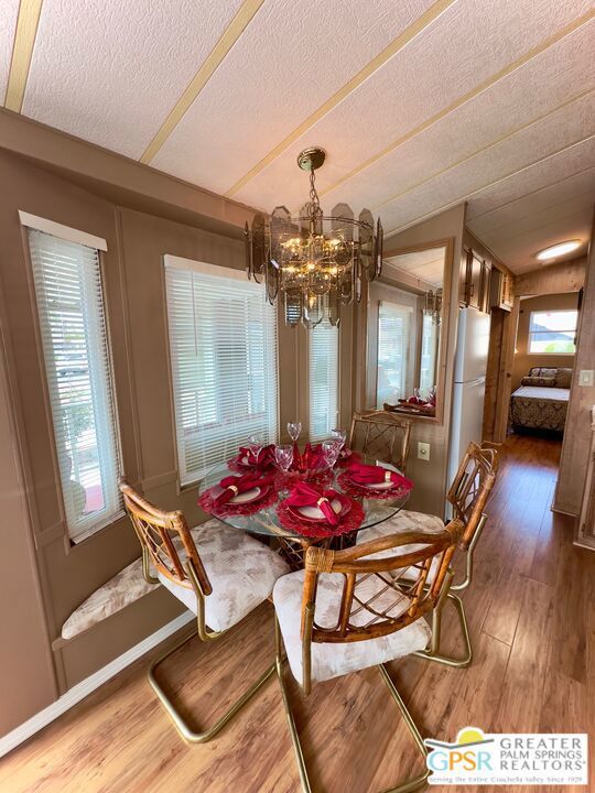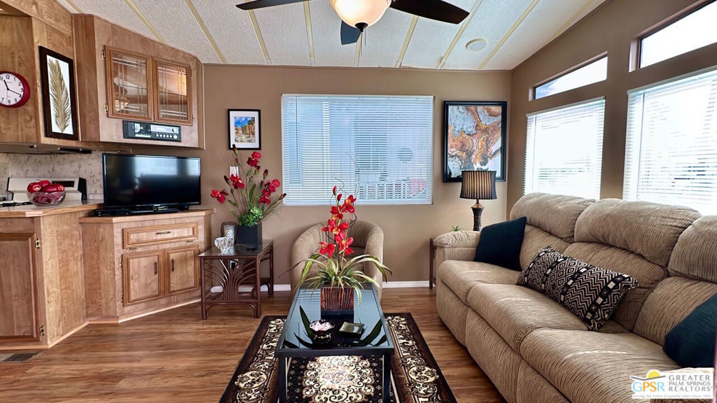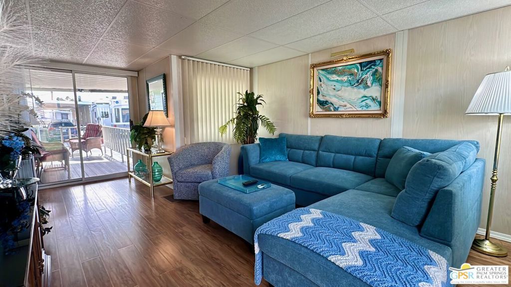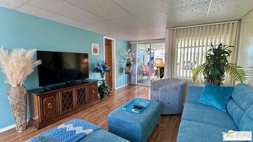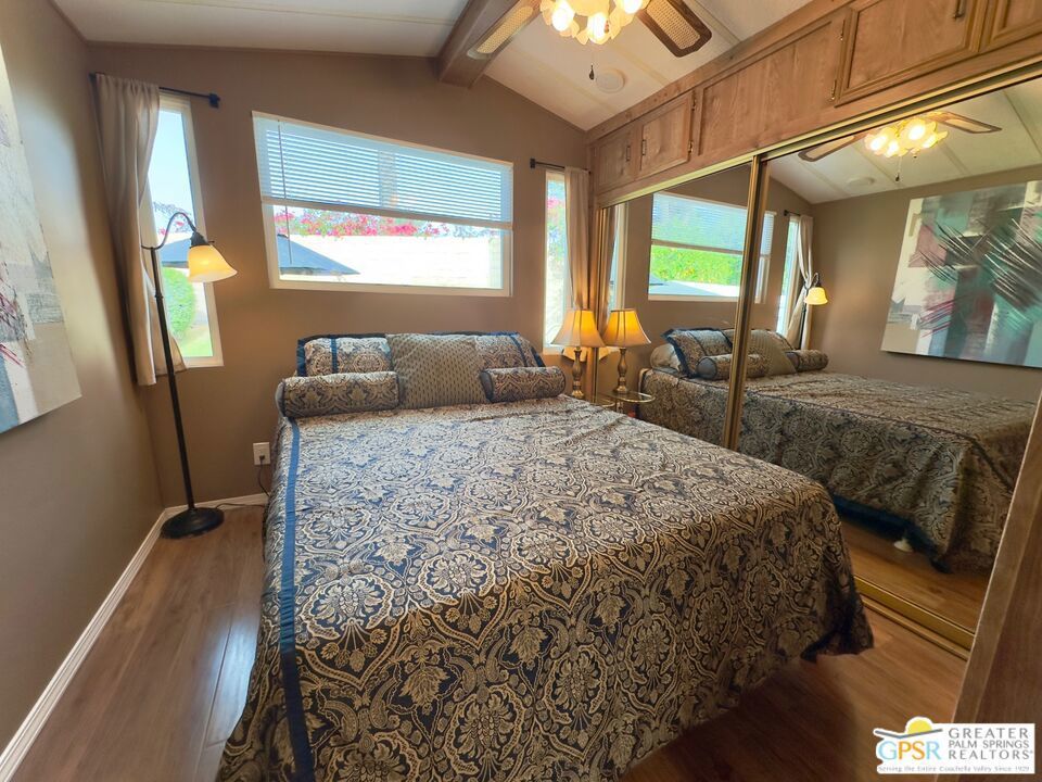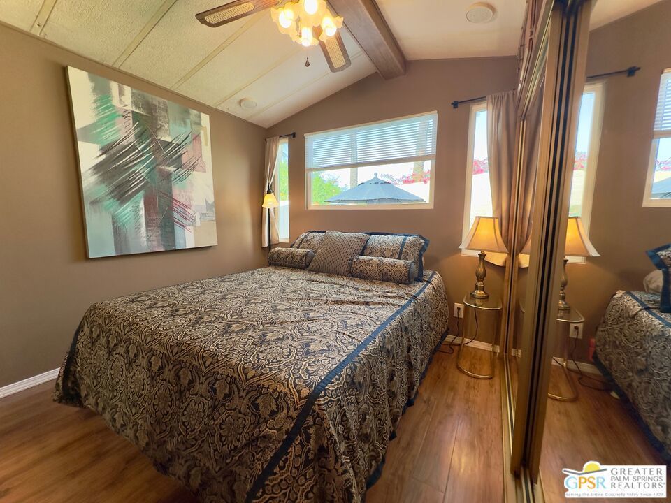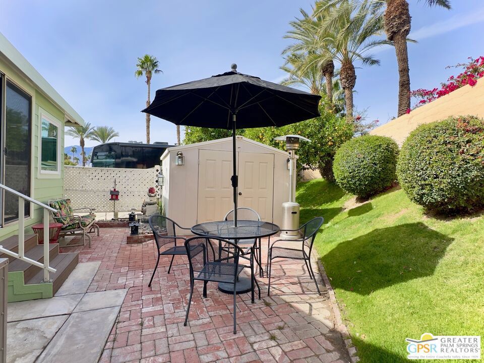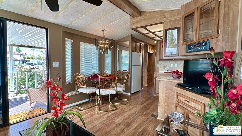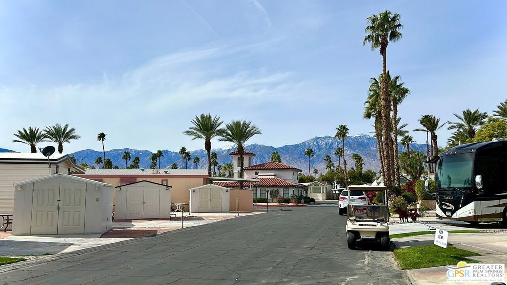 This charming and fully renovated tiny home is in highly sought-after Desert Shadows RV Resort, and offers the perfect blend of comfort and convenience for those seeking a relaxed, resort-style lifestyle. Designed with warmth and character, this beautifully maintained Park Model features one bedroom, one bath, and a spacious California room, creating an inviting atmosphere filled with natural light and incredible Mountain Views. Thoughtful wood accents and stylish flooring enhance the home's cozy appeal, while a convenient storage shed provides extra space for all your essentials. Located in a secure, gated 55+ community, this vibrant resort boasts an array of amenities tailored to an active and social lifestyle. Enjoy access to six sparkling pools, including an indoor Olympic-size pool and an outdoor lap pool, as well as a relaxing sauna. Stay active with sunken, lit tennis and pickleball courts, an indoor shuffleboard pavilion, and a fully equipped fitness center. Unwind in the 16,000-square-foot ballroom, explore the well-stocked library, or engage in your favorite pastimes in the card and hobby rooms. A putting green, scenic picnic areas, and beautifully maintained clubhouses add to the resort's charm. Each home is equipped with high-speed internet and upgraded cable, ensuring modern connectivity in this peaceful retreat. With its welcoming atmosphere and unparalleled amenities, this delightful tiny home is an ideal place to embrace the best of desert living.