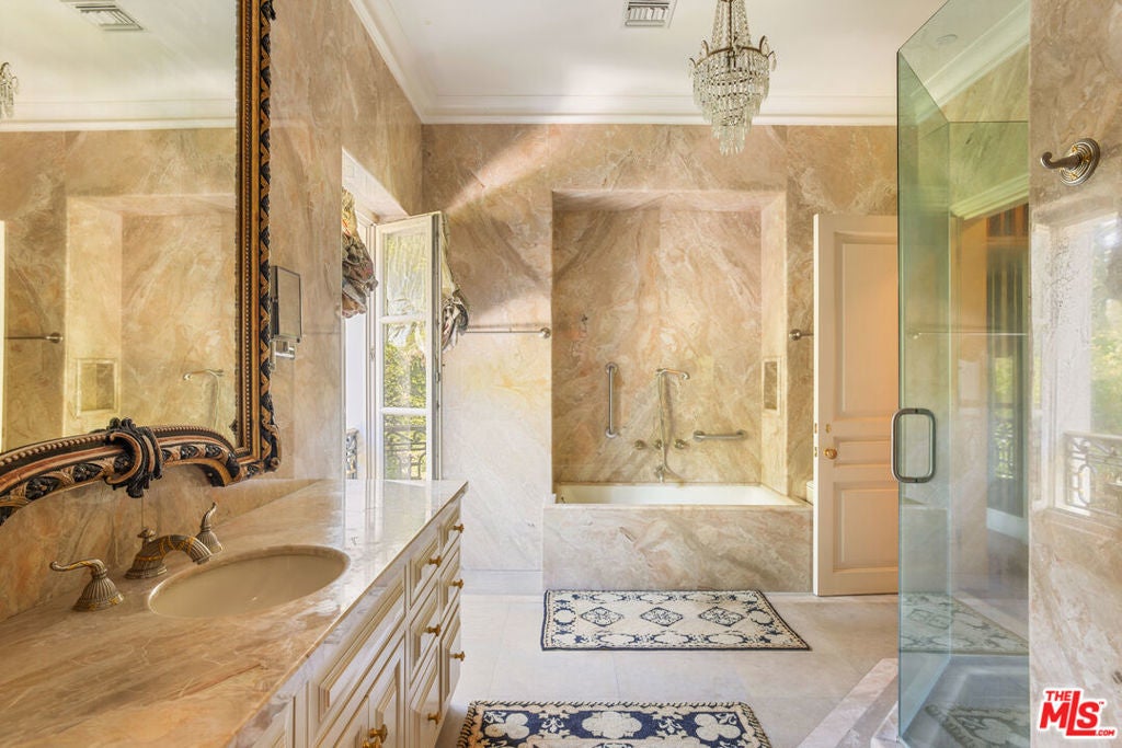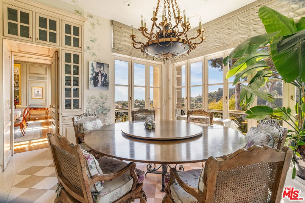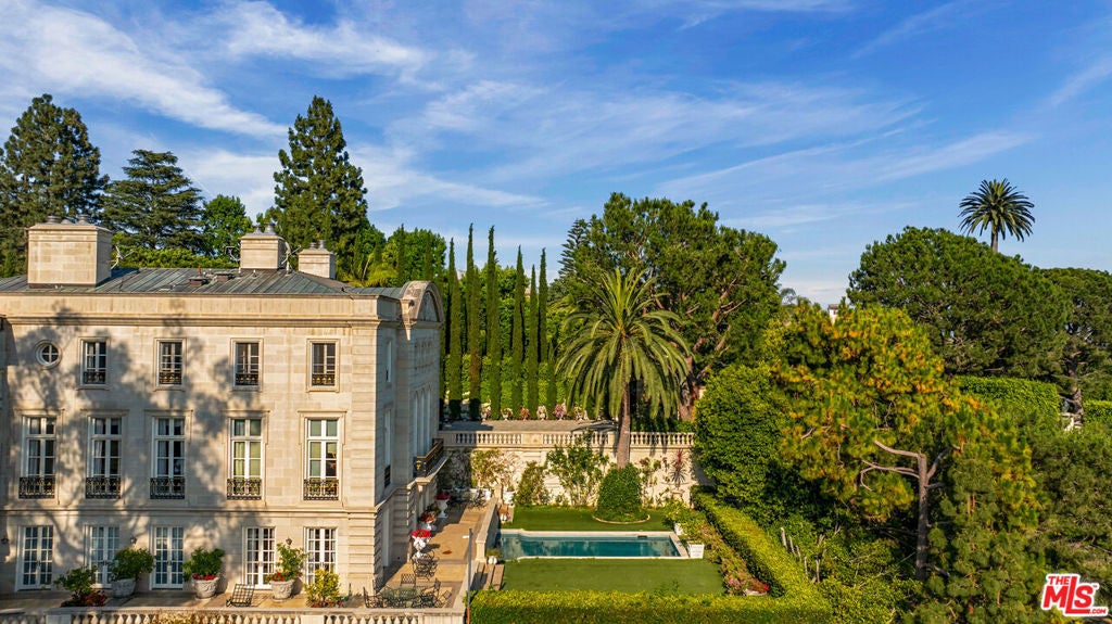 A Chateau in Bel Air where French refinement and architectural design meet Los Angeles city and ocean vistas and perfect for the upcoming Olympics! This magnificent estate was modeled after Le Petit Trianon in Versailles, France and offers lots of bedrooms and space for the discerning taste. The grand interior with double-height ceilings decorated with meticulously crafted moldings offers elegantly appointed formal living rooms. Just one floor below, informal quarters provide spaces to casually luxuriate after laps in the pristine pool under the California sun. And movie nights are sure to delight in the sumptuously comfortable home theater conveniently adjacent to the wine room. For those who love to entertain in grand style, this estate offers an approximately 10,000sf open air terrace complete with an outdoor kitchen, cabana room and city views. Offering 9 bedrooms and 12 bathrooms, including the guest house and maid's quarters, this home presents a truly unique opportunity. One of the most distinctive features of this estate is the 22-car garage situated directly below the open-air terrace. Live elegantly and entertain in style with the Los Angeles skyline in the background while hosting all your favorite people under one roof. Grand in every detail (including the parking)!