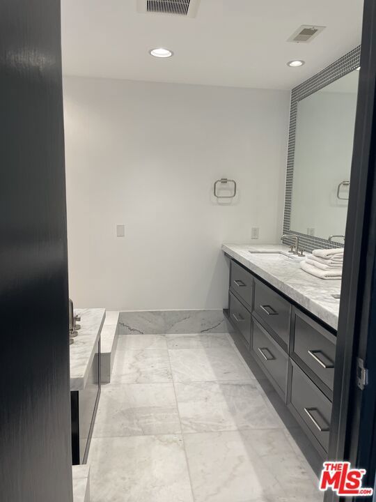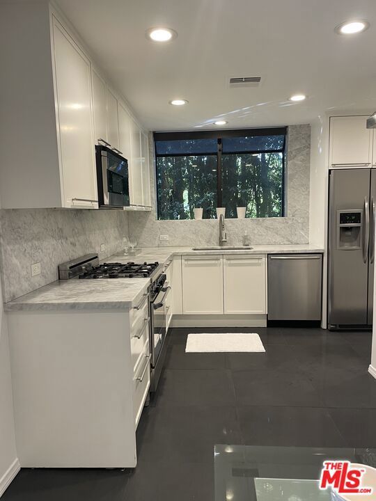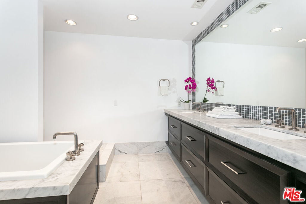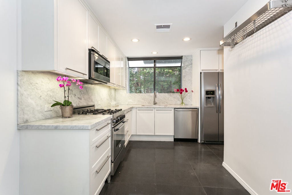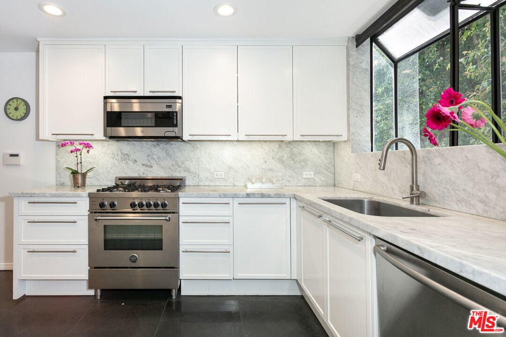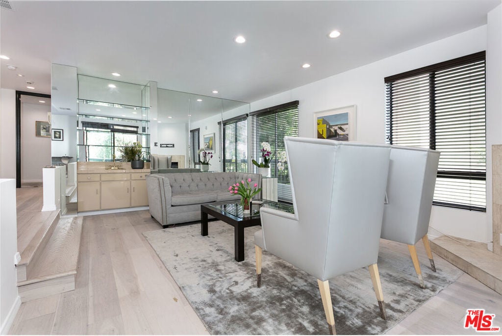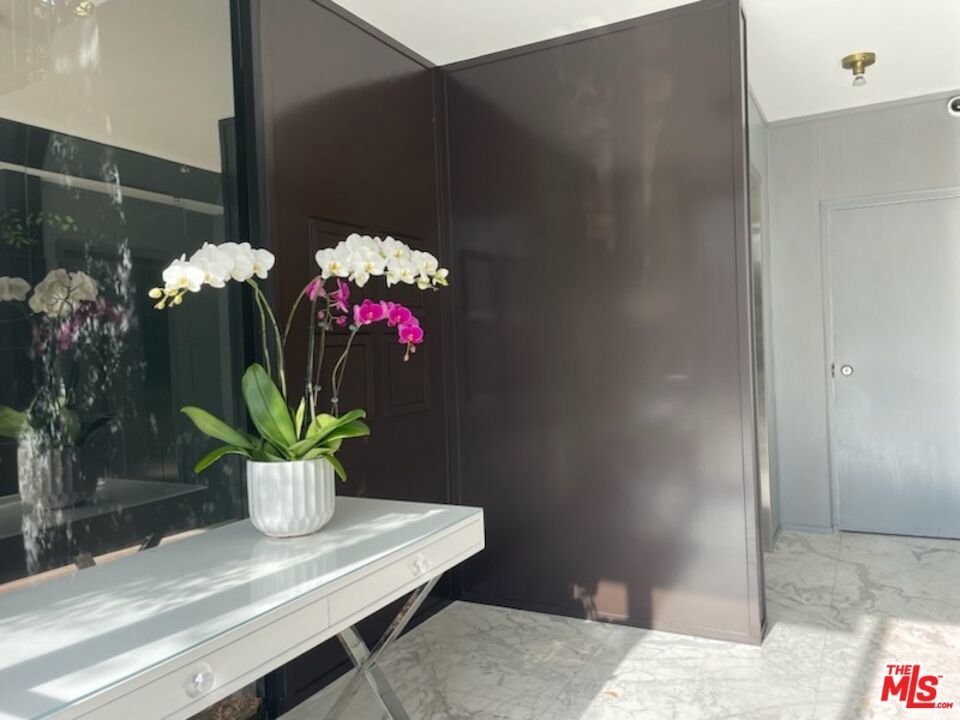 Large with PRIVATE PATIO Boutique 3-unit building feels like a single-family home Yet with direct elevator entry BY style. with a private back patio spanning the width of the property. Rarely available unit in this building, located in the coveted Norma Triangle area just off Doheny. This home features its own exclusive private back patio yard off the main bedroom. Direct elevator access (New York style) leads to your home, designed with an exceptional floor plan. Boasting 2 bedrooms, 2.5 baths, this unit includes a formal elevator entry, powder room, step-down living room with a gas fireplace, dining room, and one bedroom with light hardwood floors. A private front terrace provides serene olive tree views and privacy. The kitchen includes a laundry area, and both bathrooms feature windows for natural light and ventilation. A truly unique living space in one of the best areas of West Hollywood.