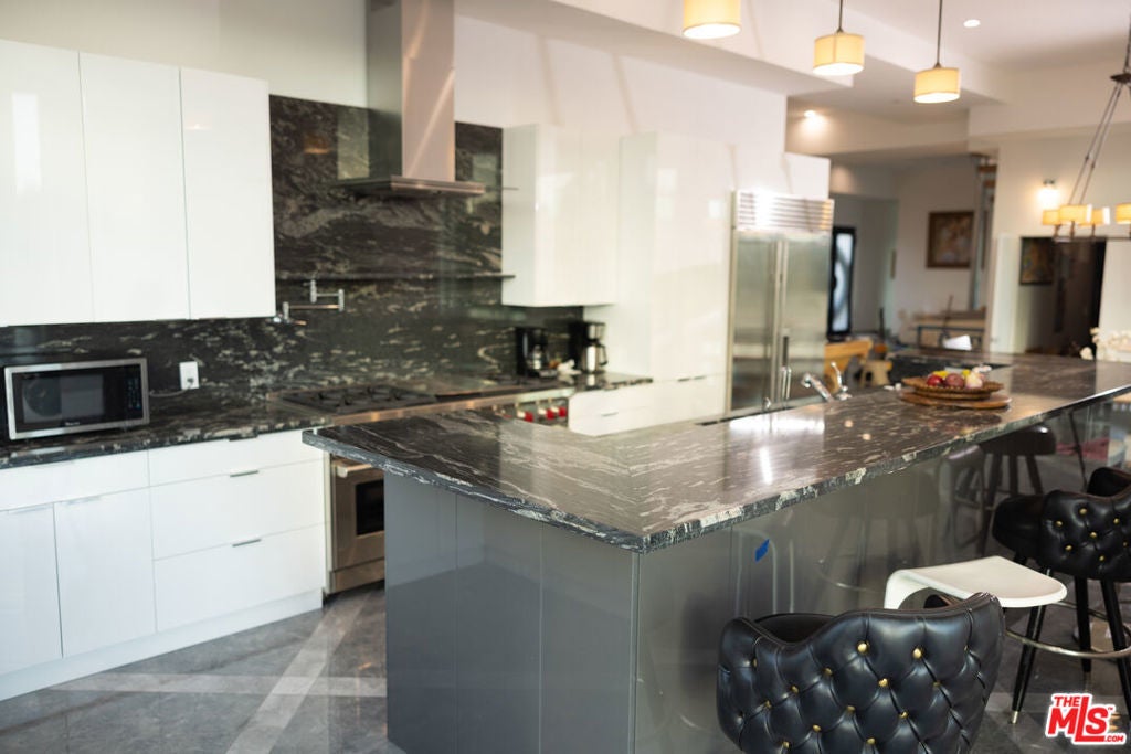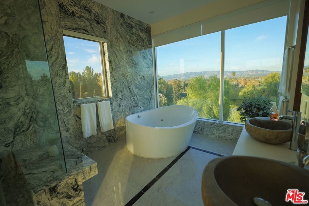 Discover the epitome of luxury in this pristine 8000 sq ft estate, meticulously crafted in 2023. Nestled on over an acre of a private gated mountainside, revel in breathtaking panoramic 360 degree views with onsite parking for over 30 cars. Immerse yourself in opulence with 12-foot ceilings, a 54-foot sliding door seamlessly connecting indoors and outdoors, a luminous night-glowing Crystallo Fume marble bar, a vintage Kawai grand piano that plays itself with over 4000 songs controlled by Ipad, and a nicely-equipped home gym. Entertain endlessly in the soundproof basement with a $30,000 Sonos system and over 30 speakers throughout 3 levels. Relax in the redwood dry sauna on the upstairs deck, boasting valley and downtown LA views. The master bedroom is a sanctuary with an oversized jacuzzi tub, gas fireplace, automatic blinds, his and hers walk-in closets, hand carved rock sinks, and more. Marble floors, a full laundry facility on the 2nd floor as well as on the first floor, top-of-the-line appliances, and smart home features for lighting and climate control linked to your cellphone. Indulge in culinary delights with a 48-inch Subzero fridge, 60-inch Wolf range, dual dishwashers and sinks, and an outdoor gas BBQ. Every detail, from Fleetwood doors to Graff plumbing fixtures, contributes to an unmatched experience. JUST completed is a 3-level, 1 million dollar backyard waterpark with 2 pools, an underground cave with 20 jets, 12 person jacuzzi, a 10 foot tall infinity wall, waterfall, multiple tanning decks and a custom 90 foot waterslide! Join us for a personal tour and transform your life into an extraordinary reality!