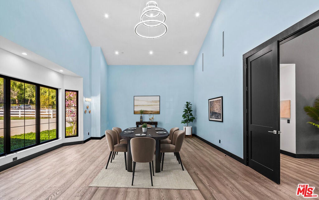 Welcome to 6006 Spring Valley Rd, an extraordinary modern ranch estate in the prestigious guard-gated community of Hidden Hills. Built in 2021 on 2.1 acres, this residence blends luxury, privacy, and sophistication. The 7,903 sq ft main home offers 7 beds and 9 baths with soaring ceilings, glass chandeliers, and seamless indoor-outdoor living. A gourmet chef's kitchen boasts dual islands, custom cabinetry, Miele appliances, double ovens, twin ranges, dual fridges, built-in coffee machine, and double dishwashers. A retractable glass wall opens to a resort-style pool, spa, outdoor kitchen, and expansive lawn.The first-floor primary suite features two walk-ins and a spa-inspired bath with heated floors and double shower. Upstairs, a lounge/game room and two bedrooms open to a scenic balcony. Each bedroom includes an en-suite. The property also includes a 1,200 sq ft 2 bed/2 bath guest house with full kitchen, a 3-stall barn with tack room, a basketball court, and a 750 sq ft standalone gym with bath. The main home also features a private theater.Hidden Hills amenities include a clubhouse, pool, pickleball and basketball courts, and movie theater for residents. A rare offering combining modern design, estate scale, and premier community living all at a highly competitive price.