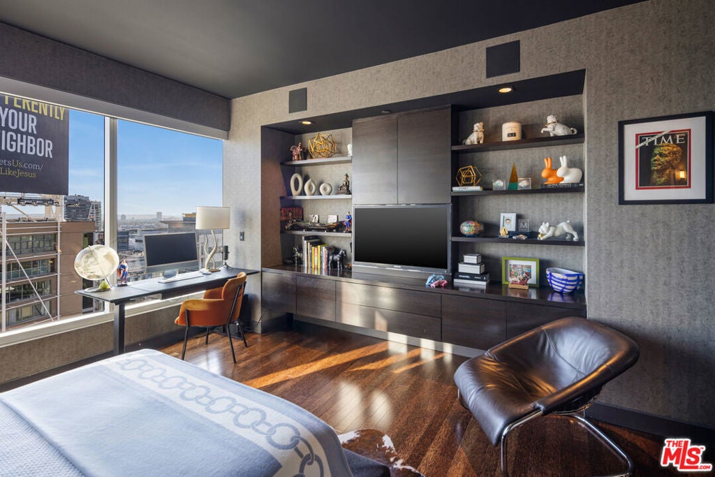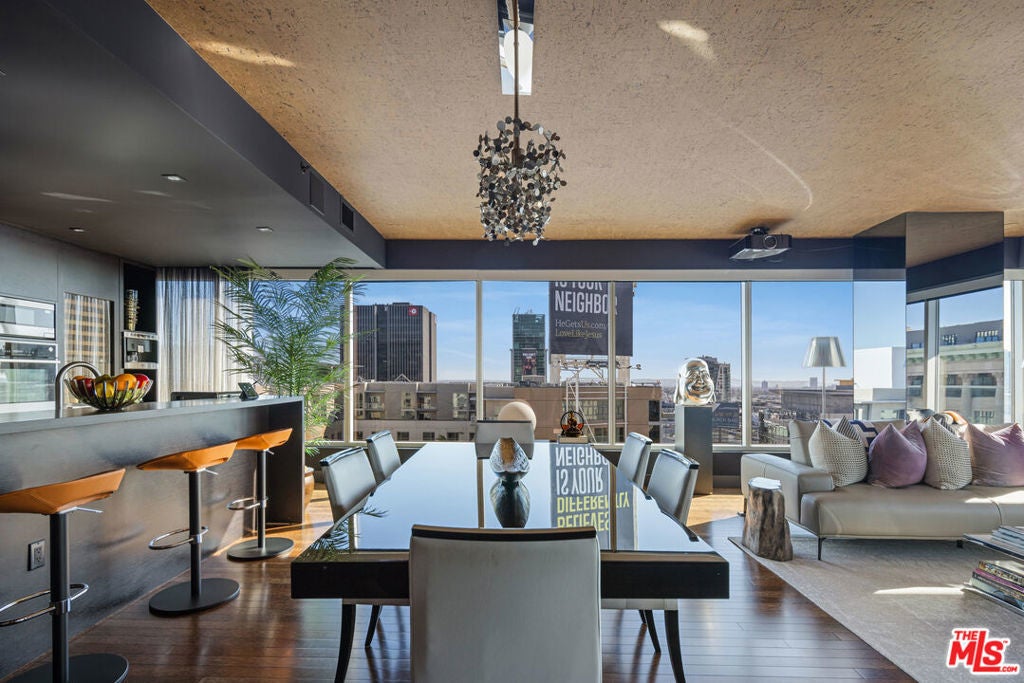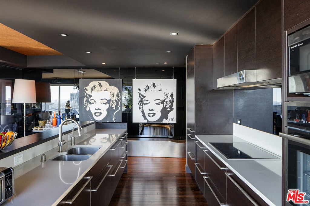 Perched high above the heart of Hollywood, this breathtaking penthouse defines luxury at the renowned W Hotel Residences. This residence provides endless options, a stylish getaway, a sophisticated urban retreat, or a front-row seat to the city's vibrant energy. Designed to set the ambiance, the home is equipped with a Control4 system and customizable mood lighting throughout. From the moment you step inside, you're met with panoramic views stretching from Downtown LA to the Ocean and Century City, visible from the elegant living area and expansive private terrace. The chef's kitchen boasts Italian-crafted Poliform cabinetry and premium Sub-Zero and Miele appliances, offering both sophistication and top-tier functionality. For movie nights, simply lower the shades and projector screen, and immerse yourself in a private cinema. The bedroom features sultry perimeter lighting, while the spa-inspired dual master bath glows with LED accents. New hardwood floors, custom built-ins, and designer wallpaper elevate the already refined space. As a resident at the W, enjoy access to an exclusive rooftop hideaway with a private pool, cabana and fitness center, 24-hour concierge service, housekeeping, room service, valet, and all the hotel amenities. With Hollywood's premier entertainment, dining, and nightlife just steps away, this penthouse isn't just a home, this is a gateway to the city's glamorous lifestyle.