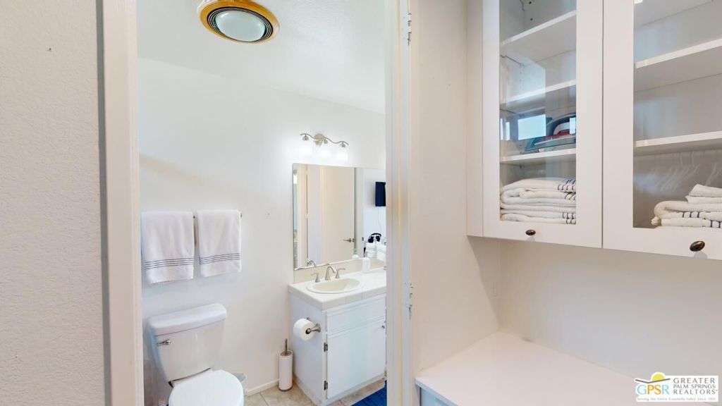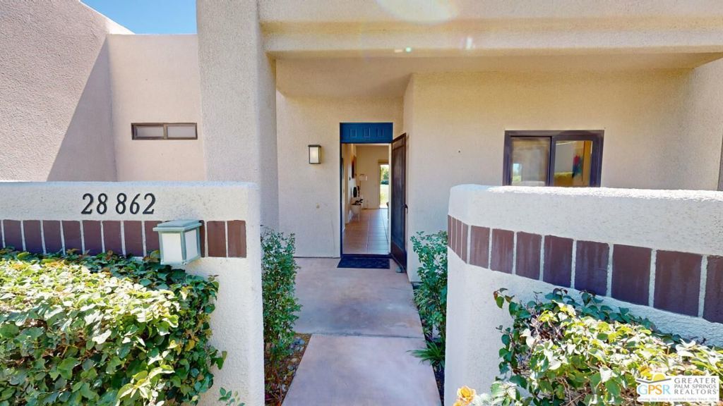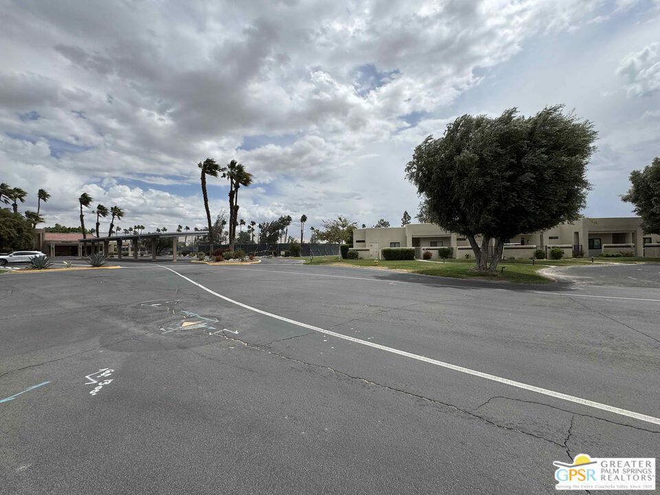 **NOTE** This condo is located one building away from the tennis/pickleball courts and fitness pavilion, plus a pool and spa - on Isleta Court. Unfurnished 2 bedroom, 2 bath condo in the highly desirable guard gated Desert Princess community! Enter through the front courtyard into the main living area. The entry flows into the spacious living room flanked on both sides by the two large ensuite bedrooms, allowing privacy for you & your guests. Both the primary and guest bedrooms offer ensuite baths with dual vanities and lovely stall showers - the primary bath offers access from the bedroom and the hall. The primary bath also includes a spacious closet. The living room features a ceiling fan & slider to the covered, east facing patio - please be careful - the actual opening slider has a broken exterior pane that needs to be repaired. Unique to this condo are the beautiful pond views with wildlife galore. Golf course views to the east of the pond are awesome and what a great covered patio to sit under and have your morning coffee as the sun rises and greets you! Both ensuite bedrooms offer access to the covered east facing patio as well. There is a laundry closet next to the foyer and a one car detached garage is included in the sale.