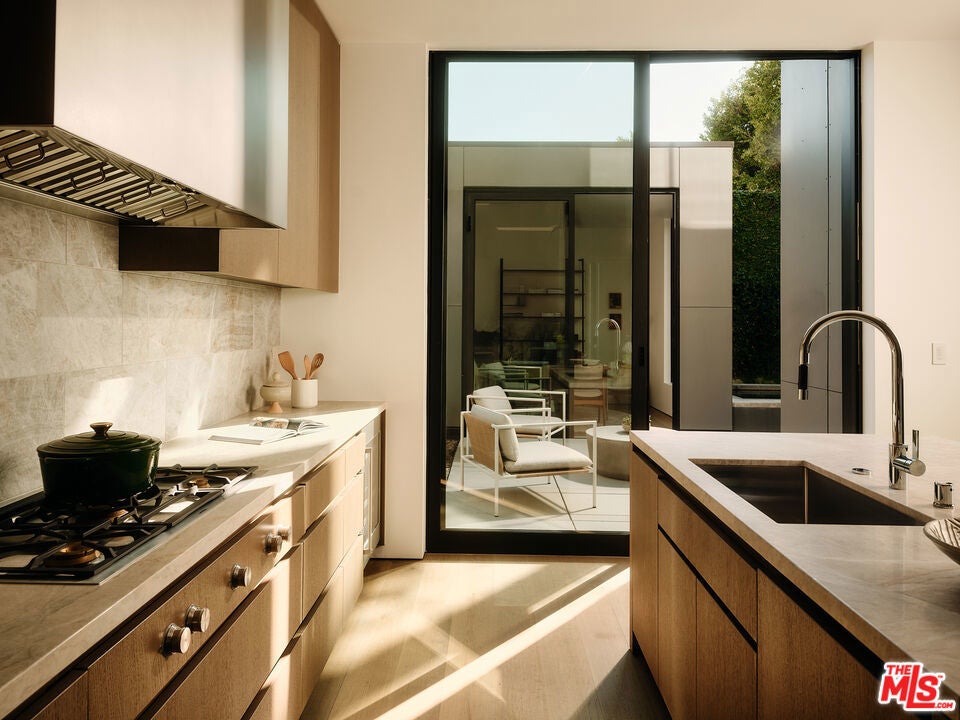 Garden House. Olson Kundig. Nestled in the heart of West Hollywood, 8910 Rosewood Avenue embodies luxury living, where resort-style amenities merge seamlessly with architectural brilliance. This remarkable residence is part of an exclusive collection of eight signature homes designed by the world-renowned Olson Kundig, each offering a distinct material palette and a truly unique living experience. Garden House is a masterpiece of lightness and fluidity, thoughtfully divided into north and south zones to create a dynamic spatial experience. The 3,067-square-foot main residence features three bedrooms and three-and-a-half bathrooms, complemented by an additional studio house with its own bathroom. Entering through the side, guests are welcomed into a harmonious interior progression that effortlessly connects both zones. At the heart of the home, a grand double-height central space and an inviting fireplace in the living room unify the interiors, enhancing the sense of warmth and openness. True to its name, Garden House epitomizes indoor-outdoor living, seamlessly integrating elegant interiors with serene outdoor spaces. Multi-panel operable doors in the front living and rear dining rooms invite effortless transitions between indoor comfort and outdoor hospitality. A private garden sanctuary awaits, complete with a tranquil plunge pooloffering a retreat of unparalleled serenity. Residents of this signature collection enjoy a perfect balance of individuality, privacy, and world-class amenities. As part of Olson Kundig's visionary development at 8899 Beverly Boulevard, hailed as a "Love Letter to Los Angeles", homeowners have access to 24-hour concierge services, a state-of-the-art fitness center, and a lushly landscaped oasis featuring a resort-style pool, spa, custom outdoor kitchen, and the acclaimed on-site restaurant, Stella. Public Report Renewal with CalDRE pending