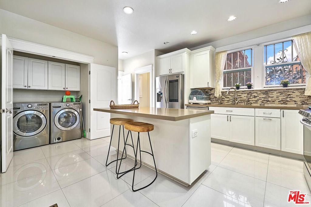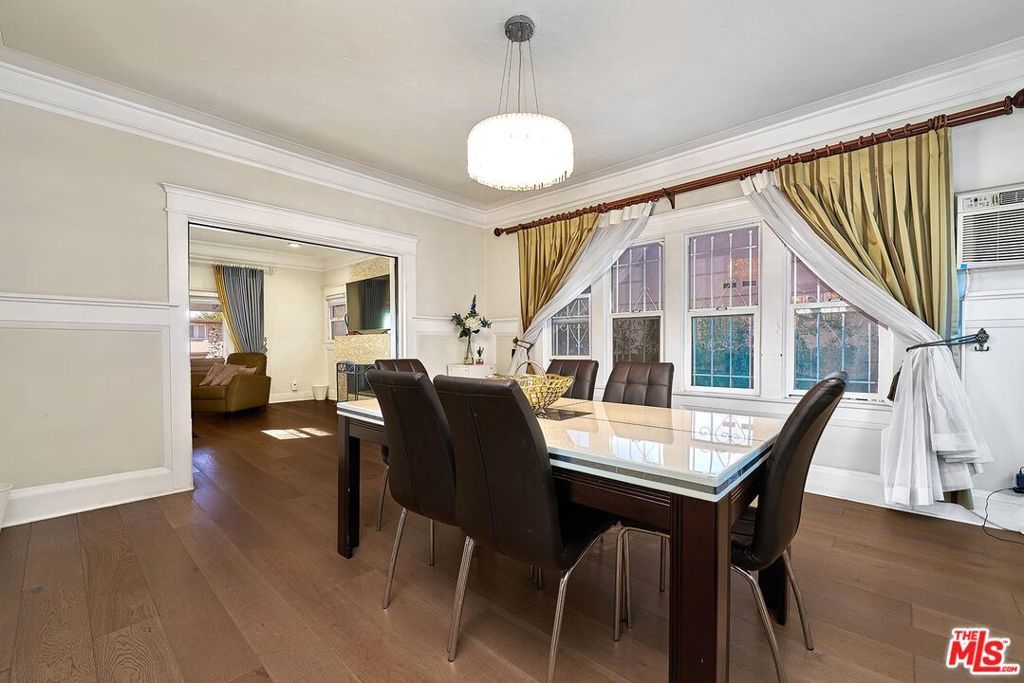 Welcome Home to a quiet charming neighborhood in Wilshire Park. Great night city view! Close proximity to Hollywood and Downtown, LA. Walking distance to local schools. 3 Bed. & 3 Baths. Master bed has spacious walk-in closet, with double-sink bathroom. Formal dining room, kitchen with centered-island with lots of cabinetry & storage. Steel appliances all included. Dual-paned windows. Customized curtains & blinds. Windows have security metal bars. Built-in fireplace. Big backyard with wooden deck. Auto gate drive way - 2 cars can park in the garage, or can be used as gym/misc. & ceiling fans in garage! Ample parking spaces for guests; additional 4 to 5 parking spaces inside the gate. Convenient living for big-sized family. Automatic sprinkler system. The property is in a HPOZ (Historical Preservation Overlay Zone). Enjoy the spacious backyard and multiple car parking spaces.