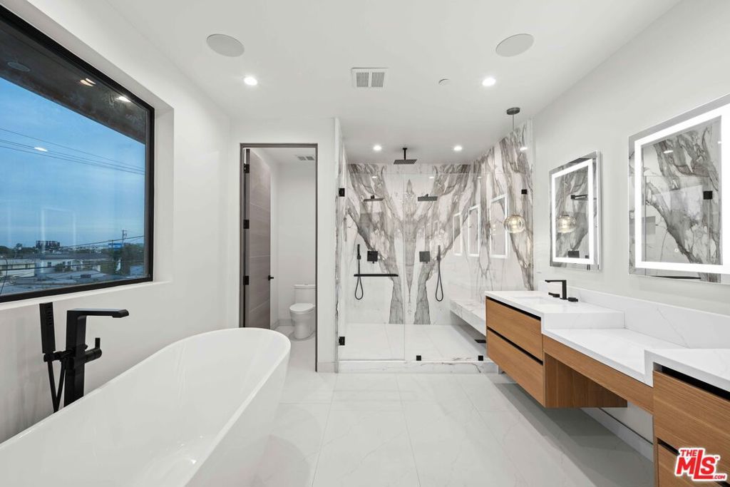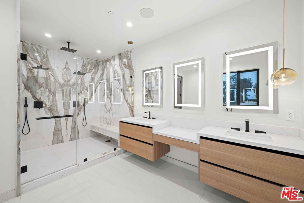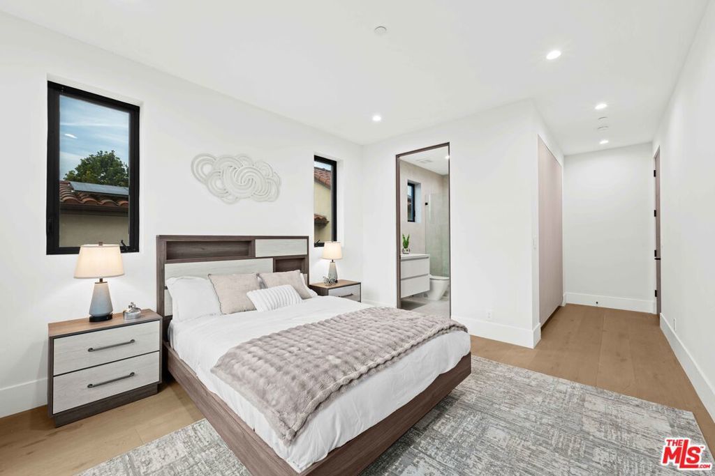 Beverlywood adjacent Modern luxury at it's best. Expansive Fleetwood windows and doors flood this brand-new construction with natural light, offering a perfect blend of modern design and luxury living. Tucked away on a private driveway, this stunning home welcomes you with a beautifully landscaped front garden. Spanning over 4,000 square feet with 5 bedrooms and 5 bathrooms, the open-concept layout features a first-floor en-suite bedroom and a powder room with four additional bedrooms on the second level, each with their own en-suite bathroom. The primary suite is a private retreat with a spacious balcony, spa-like soaking tub, massive shower, and two generous his and hersEuropean style customwalk-in closets.Great open floor plan that is perfect for entertaining and your everyday living and dining desires. The main floor features a living room, dining room, family room,top-of-the-line chef'skitchen, and a walk-in Butler's pantry. The king-size gourmet chef's kitchen showcases high-end finishes, top-of-the-line SubZero/Wolf appliances, a separate double oven, a warming drawer, two dishwashers, an oversized island with an attached custom table, lots of storage cabinets, and Taj Mahal counter tops.Floor-to-ceiling glass doors open to a lush backyard, complete with a built-in BBQ, pool, hot tub, and waterfall. A stunning 885-square-foot rooftop deck (notincluded in the sqft of the house) provides additional outdoor space with breathtaking city views, perfect for entertaining or relaxing under the stars. Luxury finishes include wide-plank hardwood floors, Italian porcelain bathrooms, Ecobee climate control on each level, integrated surround sound in the master bedroom and family room, security cameras, and a full Control 4 smart home system. Perfectly located within walking distance to Pico-Robertson's vibrant dining and shopping, with easy access to Beverly Hills, Culver City, and beyond, this home is a rare opportunity to own a modern sanctuary in one of LA's most desirable neighborhoods.