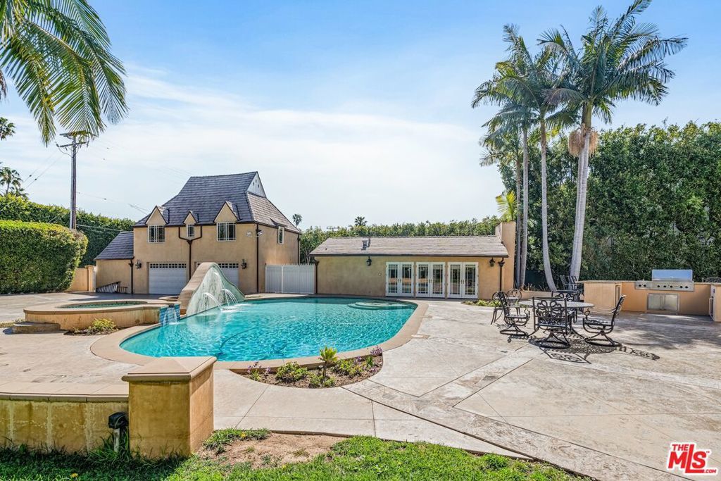 This luxuriously remodeled 1927 traditional estate is a rare gem in the heart of Beverly Hills Flats. Spanning 5,400 square feet, this distinguished residence of grandeur has a rich history of hosting dignitaries and celebrities, seamlessly blending classic elegance with modern luxury. Situated on an expansive 30,000-square-foot lot, the main house features four spacious bedrooms, while a separate one-bedroom guest house offers additional privacy for visitors or staff. The estate's prime location, directly across the street from the iconic Beverly Hills Hotel, provides unparalleled convenience and prestige. Designed for grand or intimate entertaining, the home features large scale rooms, a sparkling pool and spa, grassy yard, and outdoor areas for reflecting and socializing. Two separate two-car garages ensure ample parking and storage, while a dedicated housekeeper/house manager add an extra level of ease to daily living. This is a rare opportunity to own a piece of Beverly Hills history, where timeless sophistication meets grand luxury.
