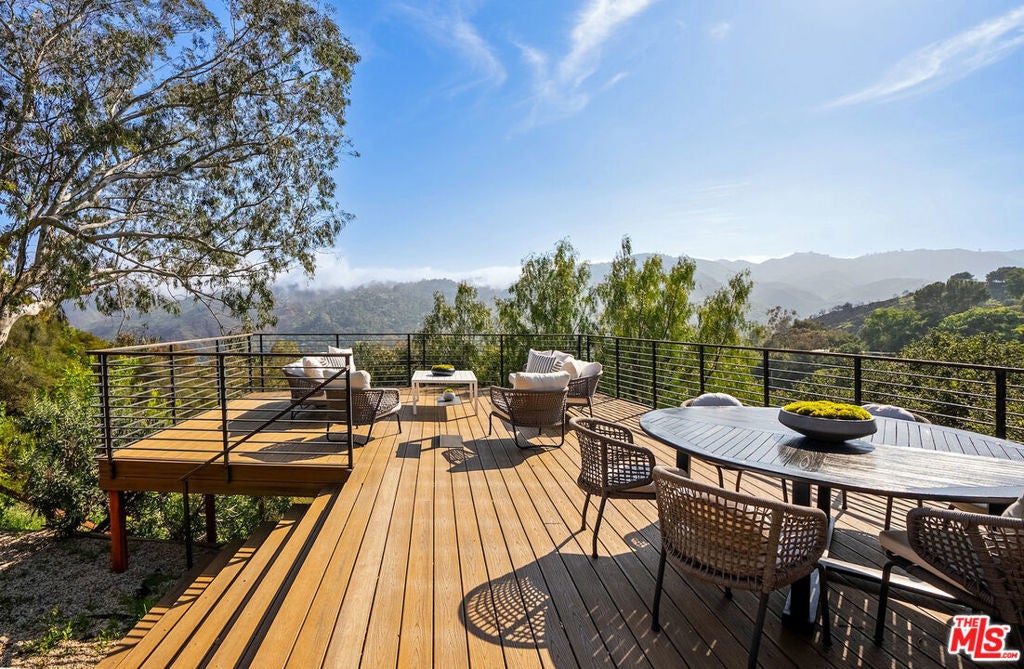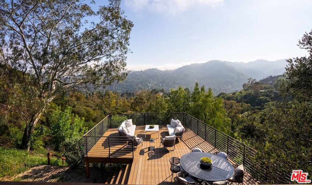 Perched atop a private road on one of Topanga's most coveted streets, 21338 Colina Drive offers breathtaking southern canyon views and effortless access to scenic park trails. This spacious 4-bedroom, 3-bathroom main home boasts an open-concept living room with soaring vaulted ceilings, rich hardwood floors, and a dramatic wall of glass that showcases expansive canyon vistas. The heart of the home is the true chef's kitchen, equipped with top-of-the-line appliances, ideal for entertaining or preparing intimate meals. The luxurious primary suite features a walk-in closet and a serene soaking tub for ultimate relaxation. Two additional bedrooms offer comfort and versatility, while a spacious family room functions perfectly as a second primary suite. Additionally, a cozy den makes an ideal home office, creative space, or reading nook. A private entrance leads to a charming 1-bedroom, 1-bathroom studio guesthouse with a kitchenette, perfect for studio for guests, extended family, or an office.. The home is encircled by expansive decks, offering the perfect setting to relax, dine, or entertain while taking in the captivating canyon views. With its prime Topanga location, spacious floor plan, flexible living spaces, and exceptional outdoor areas, this remarkable home is available for move-in starting April 15.