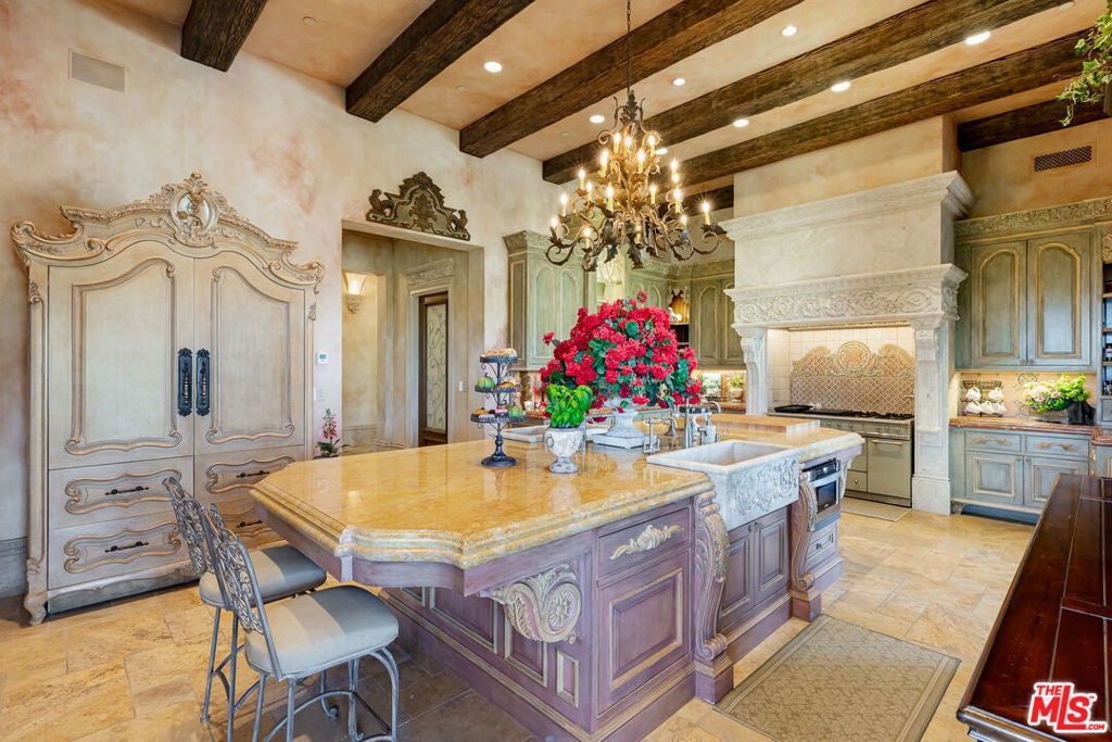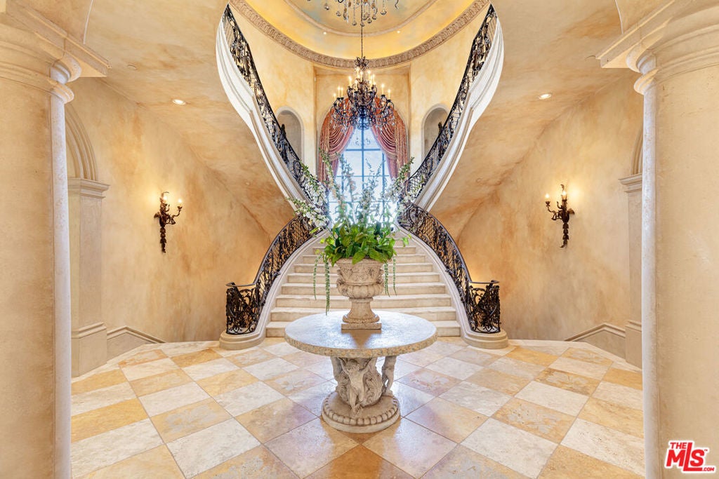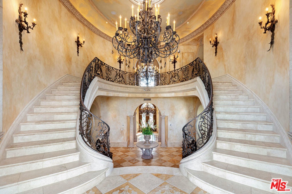 Introducing Villa Bellezza, the best value opportunity in the prestigious double guard gated Estates at The Oaks. With over $20 million invested, this architectural triumph was commissioned by a visionary owner and brought to life by world-renowned "architect to the stars," William Hablinski. Over six years in the making, this bespoke Italianate villa exemplifies the pinnacle of design, craftsmanship, and sophistication. Perched atop what is arguably the most coveted location within The Oaks, this estate stands proudly at the summit offering unrivaled privacy, commanding presence, and sweeping panoramic vistas. A grand motor court welcomes you to nearly 16,000 square feet of meticulously curated living space, anchored by a rare, fully independent two-bedroom guest house designed as its own private villa. Every inch of Villa Bellezza reflects a relentless commitment to excellence. Handcrafted by elite European artisans, the home is a reverent ode to the Italian palazzos on Lake Como where elegance meets California luxury. Exquisite custom Venetian plaster walls run throughout the residence, complemented by hand-carved travertine tubs and fireplaces that speak to the artisanal mastery behind every detail. The soaring foyer opens into a breathtaking 150-foot gallery hall with groin-vaulted ceilings, setting the stage for the estate's architectural splendor. The stunning great room soars to 28 feet, crowned by a custom hand-painted ceiling and framed by floor-to-ceiling glass that seamlessly merges the indoors with the surrounding landscape. Entertain in the formal dining room, unwind in the richly appointed library, or create culinary brilliance in the gourmet kitchen outfitted with premium European appliances and hand-selected stone. The adjacent breakfast rotunda and cozy family room create a welcoming space for everyday moments. Select rooms and exterior loggias are enhanced with luxurious heated floors, adding warmth and comfort to the estate's refined ambiance. Upstairs, three tranquil guest suites ensure restful retreats, while the lavish primary suite redefines indulgence with a Roman-style bath, boutique-inspired dressing room, and a serene private loggia. The lower level caters to every lifestyle indulgence, featuring a private cinema, a 1,100-bottle wine cellar, a fitness area, a beauty lounge, and a five-car garage for prized collections. Step outside into grounds designed by the acclaimed James Dean. Rolling lawns give way to a signature Chanel-inspired pool and spa, a retractable roof that leads to an unobstructed deck with 360-degree views, and even a life-sized chess board. Every outdoor detail complements the estate's masterful design. Villa Bellezza is more than a home it is a legacy. A singular estate where artistry, elegance, and seclusion converge in one of Southern California's most exclusive and coveted communities.