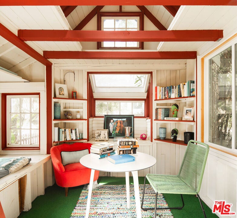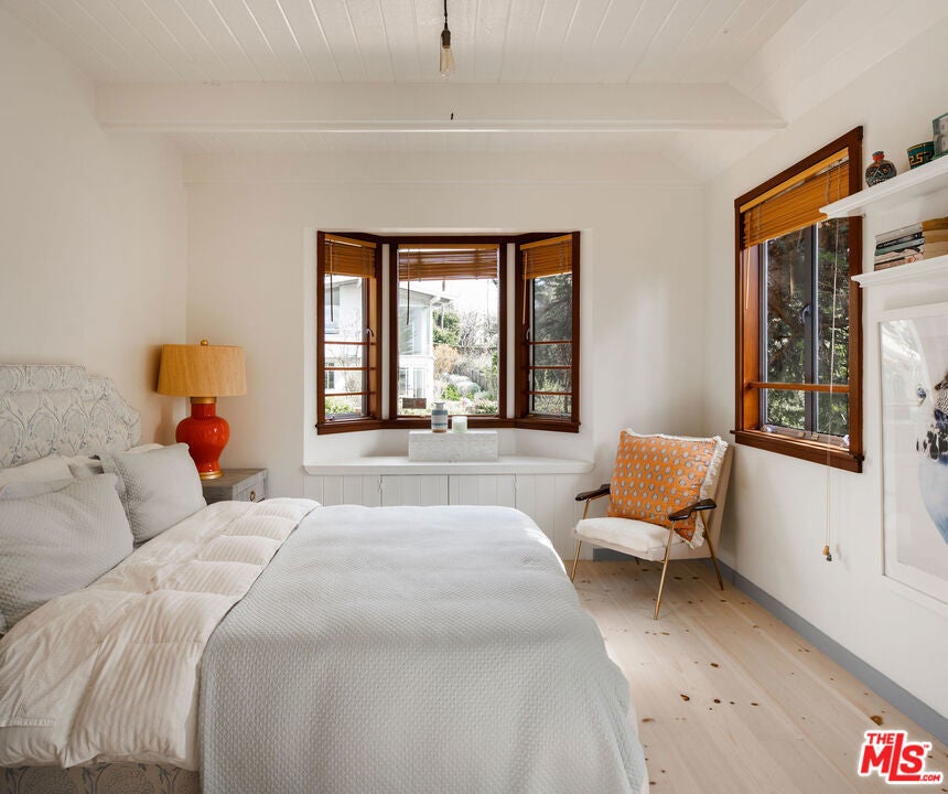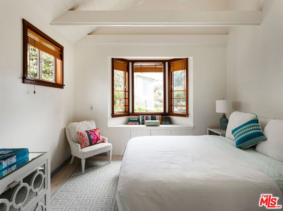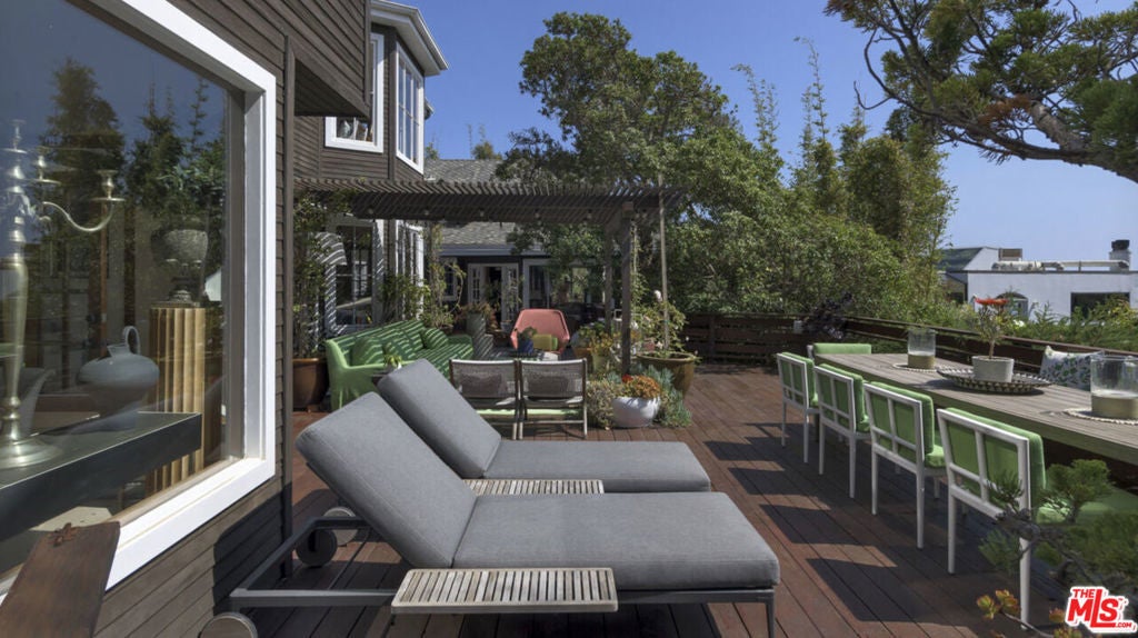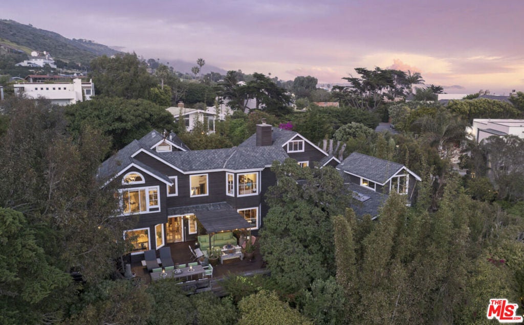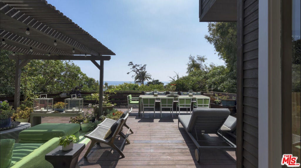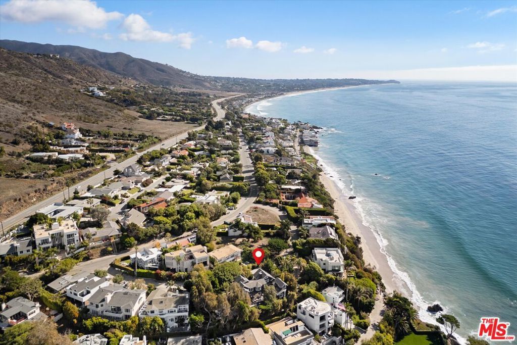 Nestled on a double lot in Western Malibu, this exceptional estate boasts a spacious, light-filled home with soaring ceilings, breathtaking ocean views, and lush landscaping, offering unparalleled privacy. The dual lots create a serene setting around the gated Cape Cod-style main residence and guest house, offering seamless indoor-outdoor entertaining spaces with the sounds of the waves as a backdrop. Inside, steeply pitched plank ceilings, skylights, generous built-ins, large windows, and wood floors define the open-concept design. The welcoming entryway leads to a dramatic two-story living room with ocean views, a cozy fireplace, a charming bay window, and a staircase leading to the upper level. A loft-style hallway lined with windows bathes the central living space in natural light. The adjacent kitchen is an entertainer's dream, featuring greenhouse skylights, stunning garden and ocean views, a glass-topped island with bar seating, premium appliances, an impressive butler's pantry, and a dining area wrapped in windows showcasing breathtaking ocean vistas. Just off the kitchen and living room, a wraparound wood deck offers a seamless extension of the living space, complete with a pergola-shaded lounge, dining area, outdoor sound system, and steps leading to a private courtyard with a hot tub. Upstairs, the home offers three beautiful bedrooms, including a luxurious primary suite with a serene ocean-view sitting area, a walk-in closet/safe room, and a spa-like bath with a free-standing tub. The additional bedrooms each feature bay windows with built-in seating, and one includes a charming ladder-access loft. Across the main-level deck, a separate two-story guest house/studio/office offers soaring wood-plank ceilings, a powder room, breathtaking views, and soundproofed wall is ideal for creative pursuits or work-from-home convenience. Additional highlights include a two-car garage, direct keyed beach access, air conditioning, central vacuum, a security system, and spectacular gardens with a waterfall, koi pond, detached writing studio/office, and meandering pathways. A rare offering, this estate epitomizes gracious living, breathtaking views, and the ultimate in private Malibu luxury.