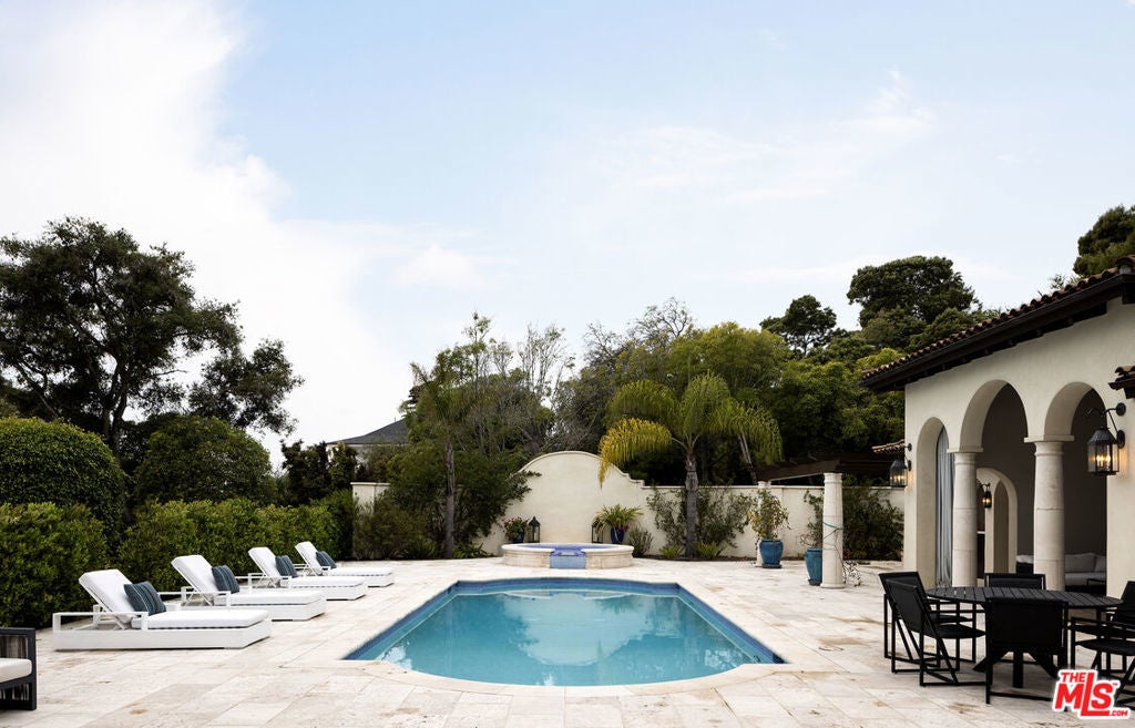 Discover the newly priced Villa Cascina, an enchanting reflection of Montecito's rich history set on three acres of lush gardens. Tucked away on a prestigious private lane, this magnificent 1920s estate was reimagined in 2016, with its timeless architectural character preserved while modern luxuries were introduced. Nestled in the iconic Lower Village, this gated, livable estate property showcases breathtaking views of its natural environment and surrounding mountains, while sitting in close proximity to Coast Village Road's famed restaurants and boutiques. Upon entering through the gated main drive, discover three private, sprawling acres of lush gardens, meandering pathways, and beautiful landscaping, all setting the tone for the grandeur that awaits. The 7,299-square-foot main residence features six bedrooms, an office, and six full bathrooms (plus an additional two half-bathrooms), all exquisitely appointed with fine finishes. The main level is welcoming with a bright and open floor plan, highlighted by a marvelous foyer, beamed ceilings, and wood floors. Elegant Moroccan-style archways and steel doors and windows lead to a central courtyard adorned with antique tiles and a grand outdoor fireplace. Enjoy a fully equipped gourmet kitchen, formal dining and living rooms, and a dedicated media room. The generously sized primary suite finishes out the ground floor and is equipped with a luxurious bathroom and grand walk-in closet. Upstairs, four spacious and private en-suite bedrooms await. The lower level houses a sizable wine cellar perfect for the wine aficionado and collector. Amenities abound outside, including a swimmer's pool and cabana, sauna, and a north/south championship tennis court. Multiple additional structures on the three-acre parcel form intentional spaces for all of life's necessities; a separate two-bedroom, one-bath guest house offers privacy and comfort for visitors, a large gym space provides wellness, and a spacious four-car garages provide ample parking. Impeccably landscaped grounds with an ocean view, formal gardens, and romantic courtyards coalesce in an idyllic setting for this exceptional estate that is rooted in Montecito's history yet encompasses all of the modern luxuries. Whether seeking a private sanctuary or an entertainer's paradise, this historic Montecito estate offers a rare opportunity to live in grandeur while also enjoying the allure of the Lower Village.