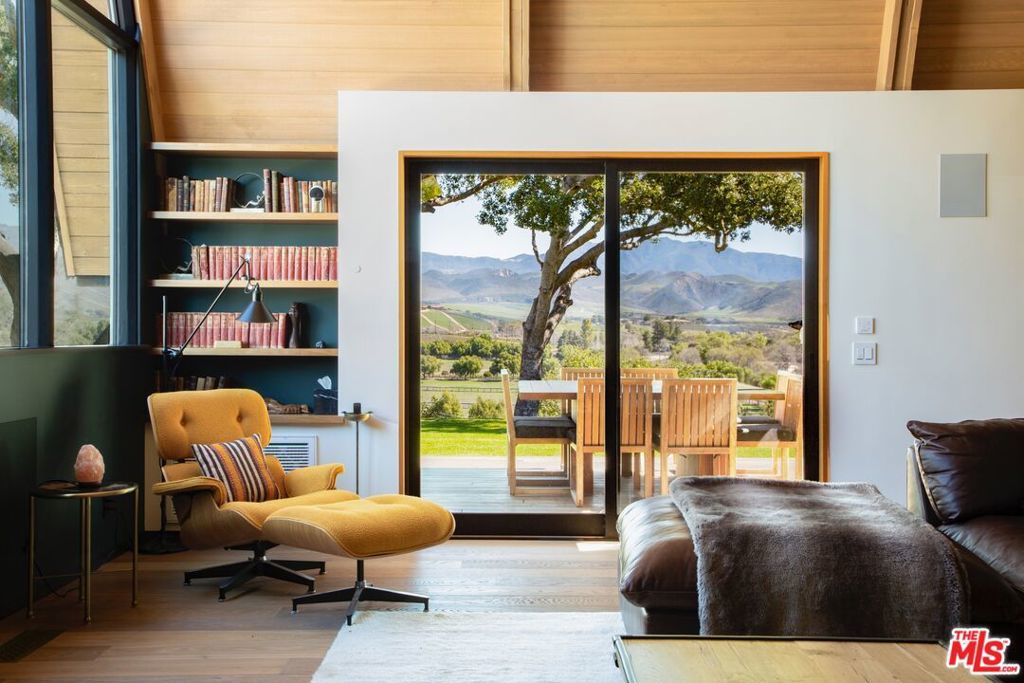 Unparalleled beauty and style define this reimagined ranch estate, offering breathtaking views of the entire Santa Ynez Valley and the surrounding mountains. A level of design sophistication rarely seen in the Valley has been seamlessly integrated into the recent rebuild of this 1965 mid-century masterpiece. Set back on a flat, elevated 6.33-acre private mesa in the prestigious Rancho Estates, near the intersection of Baseline and Happy Canyon Road, the property provides sweeping vistas of the horse ranches and wineries below. Century-old oak trees frame the landscape, while expansive lawns and meadows surround the residences. As you approach the main residence via the olive tree-lined drive, passing a two-acre pasture, you arrive at the massive steel-framed entrance door. Inside, your gaze is immediately drawn to the soaring, raw cedar-lined architectural ceilings and, beyond, through walls of glass, to the towering oak trees, the pastoral valley, and the Los Padres Forest that frames the entire vista. In addition to the main ranch house, the property boasts a guest house/gym/office structure, a workshop, chicken coops, and a bee house. The owner also has plans for an entertaining barn. The orchard is abundant with apple, pear, fig, apricot, plum, and peach trees, as well as raspberry and blackberry bushes, and champagne grapevines. The harvested olives recently yielded 4 tons of fruit, which provided a 55-gallon barrel of organic pure EVOO at the Figaro Farms press. The circular pool and spa, designed to resemble an artistic pond, operate on an AOP system (a combination of UV and ozone for minimal chlorine usage). Relax and enjoy the views from one of the many thoughtfully curated outdoor spaces, including the vista-point fire pit area. Additionally, the upper yard is completely fenced in. Uniquely for this region, the property is equipped with its own private, dedicated fiber optic line, not shared with any other properties. This invaluable asset ensures seamless streaming, podcasting, and business operations. The design elements throughout the home are nothing short of breathtaking, featuring brass, copper, and raked concrete finishes, an Italian marble bar, wine storage, multiple fireplaces, and a gourmet kitchen outfitted with Wolf and Miele appliances. Smart home upgrades throughout the main house, guest house, gym, and outdoors include lights, sound systems, and security integrated on Control4. All of this is just a short distance from Santa Barbara, offering a rare blend of seclusion and accessibility. Come experience an unrivaled lifestyle of luxurious design in a stunning pastoral setting. We can confidently say that you haven't seen anything like this in the Santa Ynez Valley.