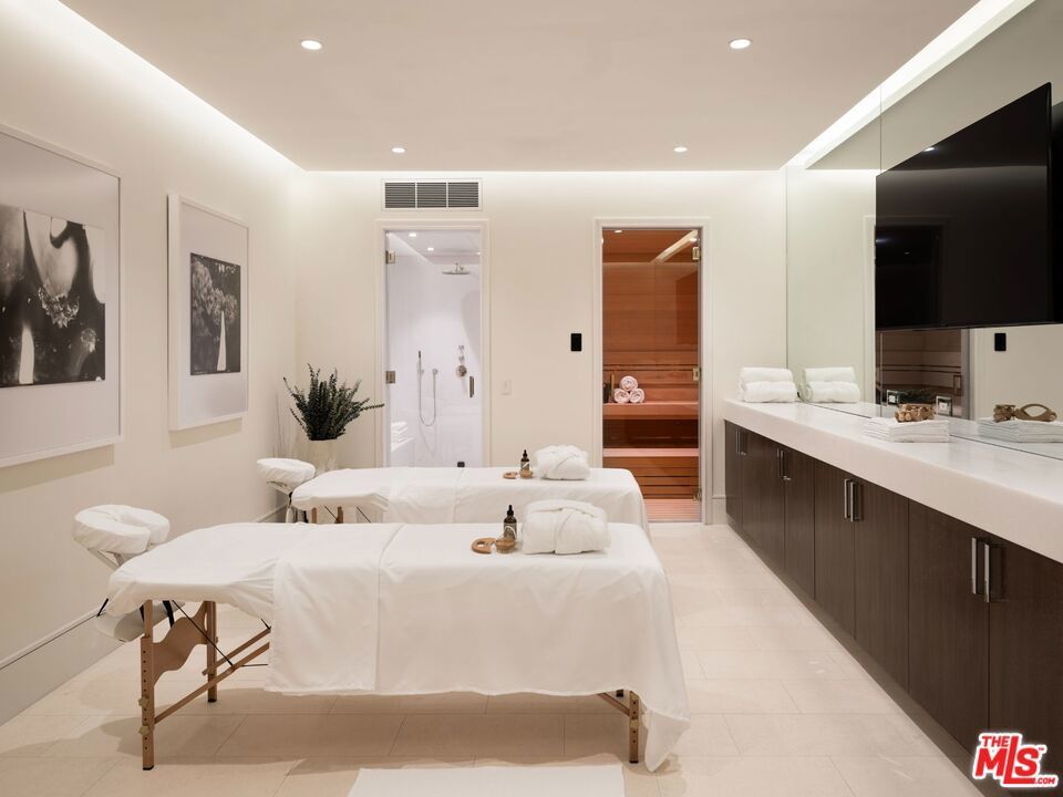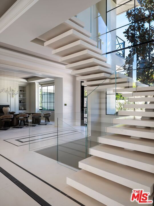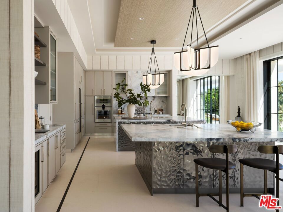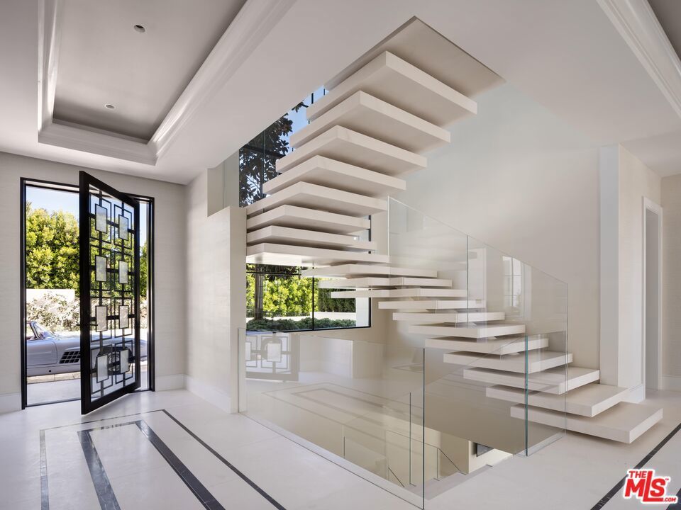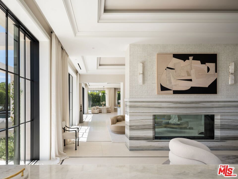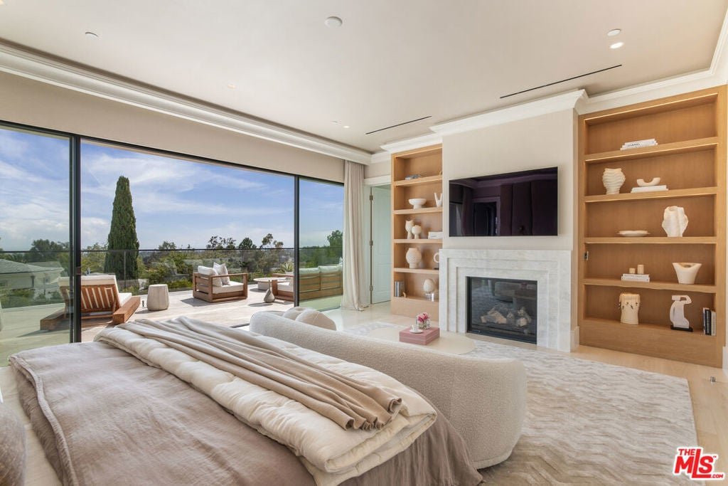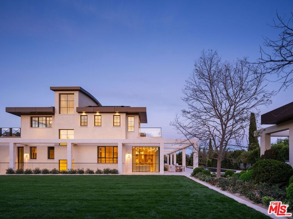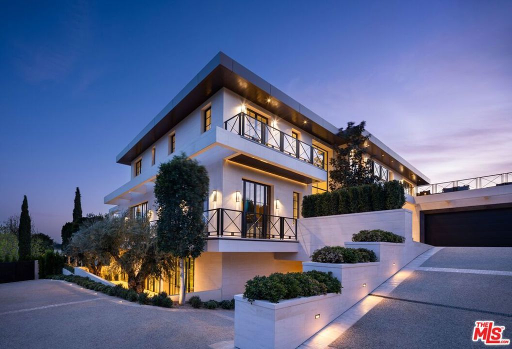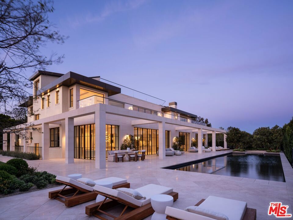 This newly completed approx. 16,500-square-foot estate in Brentwood is the debut Los Angeles development designed by internationally acclaimed AD100 Hall of Fame firm, Ingrao Inc. Inspired by the architectural grandeur of the Getty Museum, the residence is clad in timeless limestone, accented by sweeping travertine pavilions and a stately bronze roof. Positioned on a private, gated, and sprawling lot, the home offers sweeping views of the Pacific Ocean and panoramic views of the Getty and the city. Crafted with the highest caliber of design and materials, the estate features 7 bedrooms and 14 bathrooms arranged across three levels, connected by a sculptural staircase and private elevator. The primary suite is a true retreat, boasting dual baths, dual walk-in closets, and a vast ocean-facing balcony. With an art gallery, auto gallery, and a main floating staircase that acts as a complex structure of art, the home was designed for a collector who enjoys elevated living and exceptional entertaining. A rooftop deck offers 360-degree views, a firepit, and a bar, while the state-of-the-art movie theater, indoor/outdoor wellness center with gym, sauna, steam room, and cold plunge bring resort-level luxury into daily life. Outdoor amenities abound: a serene pool with Baja shelf and spa, a pool house with built-in BBQ, a fire pit encircled by mature strawberry trees, and an expansive presidential-like flat lawn framed by sycamore trees and landscaping curated by Will Bailey, formerly of Christine London, to harmonize with the estate's refined architecture. Additional features include a 2-car main-level garage, an 8-car subterranean garage with a dedicated security room, and infrastructure for a guard booth at the entry gate. Every element of this estate has been meticulously considered to deliver an unmatched lifestyle, an architectural and design tour de force in one of Los Angeles' most coveted enclaves.