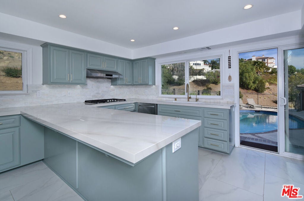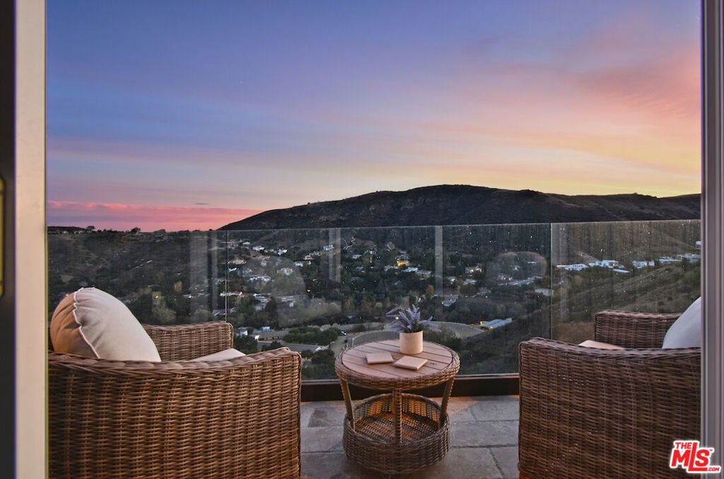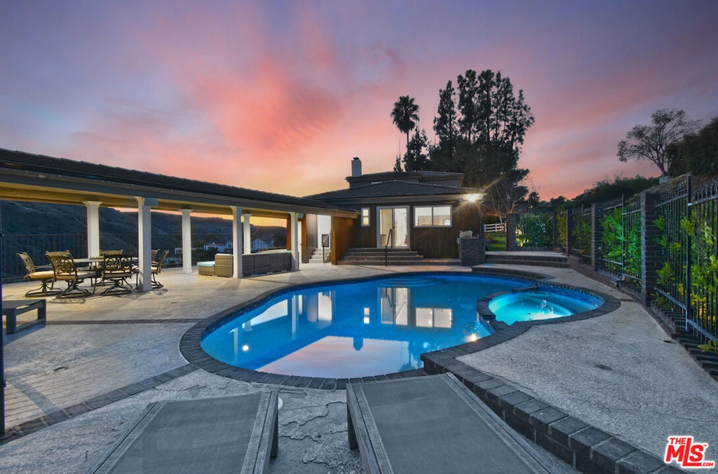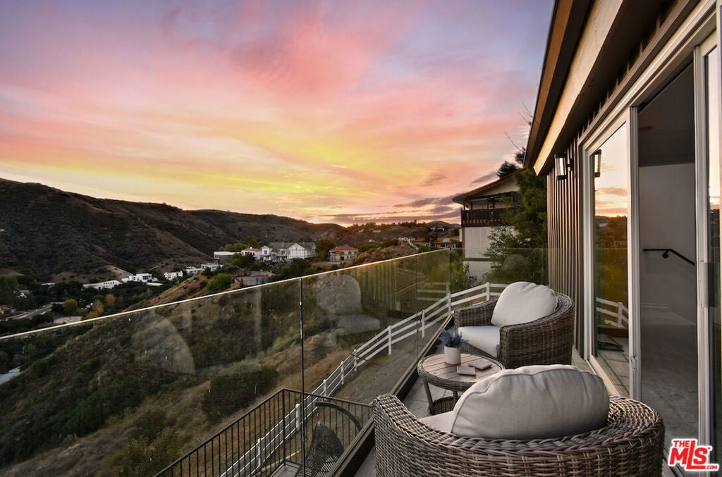 VIEW VIEW VIEW! New Price improvement! $300,000 in price reduction! Set in the prestigious gated community of Bell Canyon is this fully remodeled Traditional home is perched atop a 1.38-acre promontory, offering stunning canyon views from nearly every room. Every detail of this residence has been thoughtfully remodeled, blending timeless charm with modern luxury for a truly turnkey living experience. The open floor plan is perfect for both entertaining and everyday living. The expansive living room, with glass walls, opens to a private terrace where you can take in Bell Canyon's tranquil evenings. Adjacent is the family room, complete with a wet bar, flowing into a chef's kitchen. This fully remodeled space includes custom new cabinets, a water filtration system, and an expansive breakfast nook. The formal dining room, framed by sunset views, offers a versatile setting for casual or formal gatherings. Key Upgrades Include: * New Roof, Gas Line, Plumbing, & Electrical Systems (new electric panel). * New Garage Doors, epoxied floors & approved plans for a 768 Sq.Ft. ADU above the garage * Converted one garage space into a fully functional office. * New Glass Railing on the primary bedroom balcony and a remodeled primary bath with steam shower, custom tiles, heated marble floors, heated towel bar, Toto toilets, Rohl plumbing fixtures, and luxurious finishes. * Completely remodeled Guest bedroom bath and powder room. * New Paint, Drywall, and Exterior Wood/Stonework, along with freshly laid turf, slabs, and rock detailing for a polished exterior. * Renovated saltwater Pool & spa w/new equipment offers a serene outdoor escape. * 5 to 6 parking spaces in the driveway. The home's layout includes three downstairs bedrooms, two with direct patio access, and an upstairs primary suite with private viewing deck, custom-built closets, and a spa-like bathroom. Custom cabinetry throughout enhances functionality. Outdoor living includes covered patio & multiple terraces, surrounded by lush landscaping. The home also features a tankless water heater & whole-house water system for efficiency This property is a rare opportunity to own a meticulously updated home with modern amenities in a secure, private setting. Bell Canyon offers 24-hour gated entry, equestrian center, tennis courts, a fitness center, and year-round community events. Served by the award-winning Las Virgenes School District.