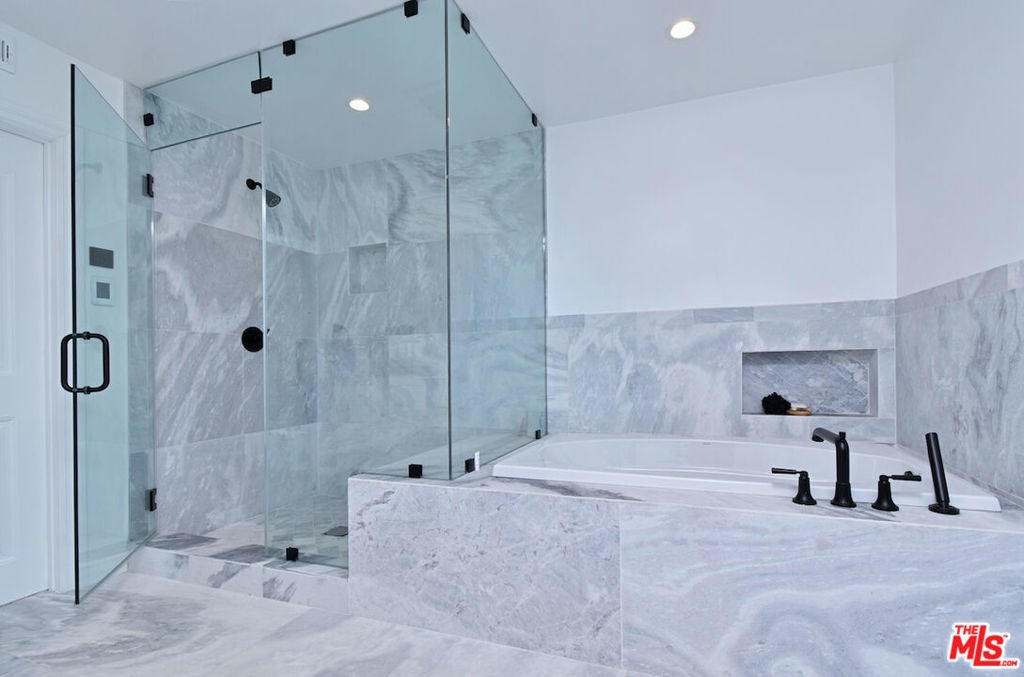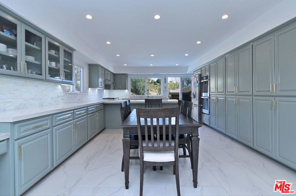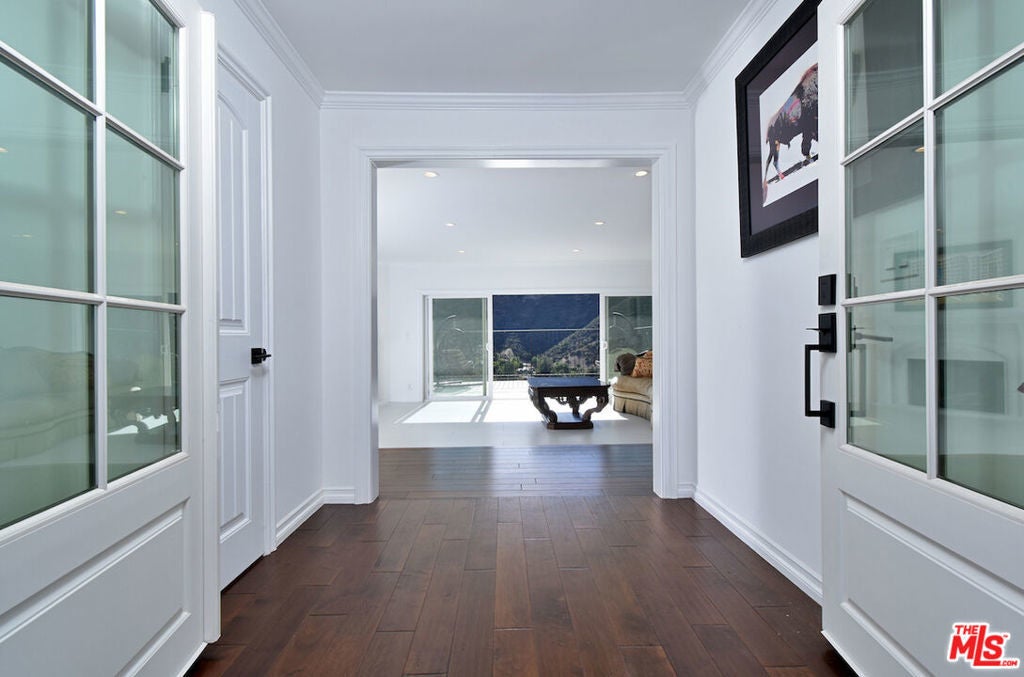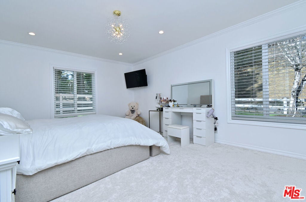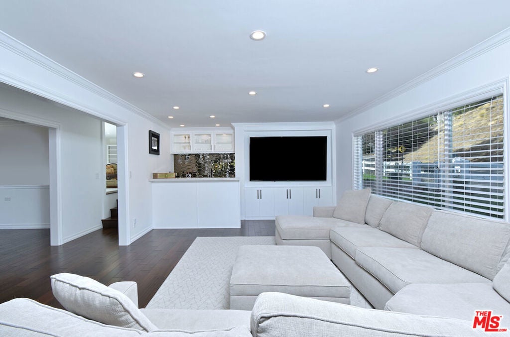 VIEW VIEW VIEW! New Price improvement! $300,000 in price reduction! Set in the prestigious gated community of Bell Canyon is this fully remodeled Traditional home is perched atop a 1.38-acre promontory, offering stunning canyon views from nearly every room. Every detail of this residence has been thoughtfully remodeled, blending timeless charm with modern luxury for a truly turnkey living experience. The open floor plan is perfect for both entertaining and everyday living. The expansive living room, with glass walls, opens to a private terrace where you can take in Bell Canyon's tranquil evenings. Adjacent is the family room, complete with a wet bar, flowing into a chef's kitchen. This fully remodeled space includes custom new cabinets, a water filtration system, and an expansive breakfast nook. The formal dining room, framed by sunset views, offers a versatile setting for casual or formal gatherings. Key Upgrades Include: * New Roof, Gas Line, Plumbing, & Electrical Systems (new electric panel). * New Garage Doors, epoxied floors & approved plans for a 768 Sq.Ft. ADU above the garage * Converted one garage space into a fully functional office. * New Glass Railing on the primary bedroom balcony and a remodeled primary bath with steam shower, custom tiles, heated marble floors, heated towel bar, Toto toilets, Rohl plumbing fixtures, and luxurious finishes. * Completely remodeled Guest bedroom bath and powder room. * New Paint, Drywall, and Exterior Wood/Stonework, along with freshly laid turf, slabs, and rock detailing for a polished exterior. * Renovated saltwater Pool & spa w/new equipment offers a serene outdoor escape. * 5 to 6 parking spaces in the driveway. The home's layout includes three downstairs bedrooms, two with direct patio access, and an upstairs primary suite with private viewing deck, custom-built closets, and a spa-like bathroom. Custom cabinetry throughout enhances functionality. Outdoor living includes covered patio & multiple terraces, surrounded by lush landscaping. The home also features a tankless water heater & whole-house water system for efficiency This property is a rare opportunity to own a meticulously updated home with modern amenities in a secure, private setting. Bell Canyon offers 24-hour gated entry, equestrian center, tennis courts, a fitness center, and year-round community events. Served by the award-winning Las Virgenes School District.
