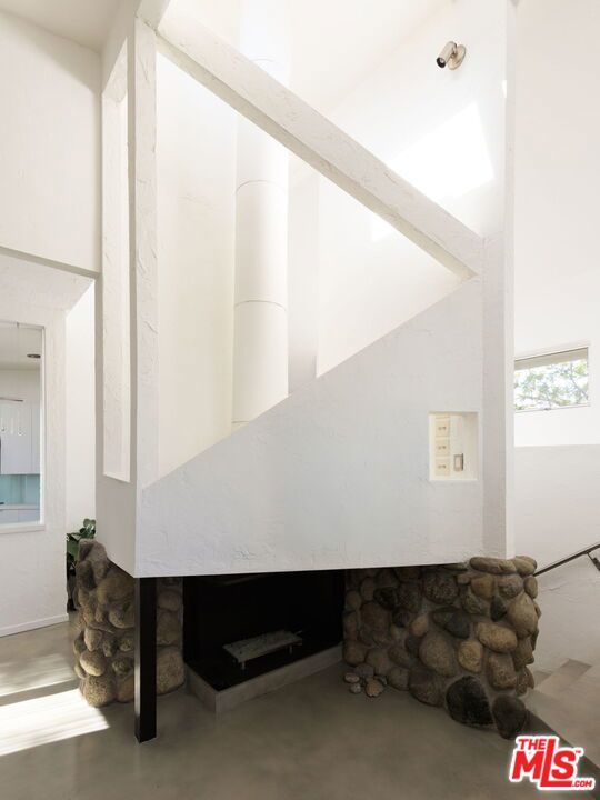 Welcome home to your own private Architectural Oasis in Prime Sherman Oaks. Situated just South of the boulevard, this Architectural Oasis is tucked behind gates and perched above the street on a rare double lot. This exceptional Sherman Oaks retreat offers the perfect balance of refined design and serene outdoor living. Designed by notable architect Dennis McGuire, known for seamlessly integrating structures with their surroundings, the home reflects a quiet elegance and intentional connection to nature. Formerly part of a botanical garden, the grounds are lush and layered, with mature trees: an 80-year-old Melaleuca tree, palm trees and fig trees as well as a Meyer lemon tree. All are centered around a breathtaking saltwater pool, spa, and three cascading waterfalls that serve as a tranquil centerpiece, surrounded by curated outdoor living and entertaining spaces. Back inside the kitchen is the heart of the home, with expansive ceiling heights and natural light throughout. The kitchen is outfitted with Caesarstone countertops, a 6-element Dacor cooktop, Fisher & Paykel refrigerator, convection oven, Bosch dishwasher, and built-in wine fridge perfectly blending form and function. Adjacent you'll find the private outdoor patio with European-style outdoor fireplace and BBQ, remote-controlled patio awning, and built-in Bose sound system. Solar panels are paid off and for convenience there is a Tesla charger located in the garage. Every element of the home has been carefully curated for comfort, sophistication, and connection to the surrounding environment. There are multiple levels that create private living spaces and bedrooms. All with privacy and comfort and updated details. Throughout the house the natural light and 50 windows facilitate in capturing the essence of California living; effortless, and completely private. Welcome to a new elevated way of living.