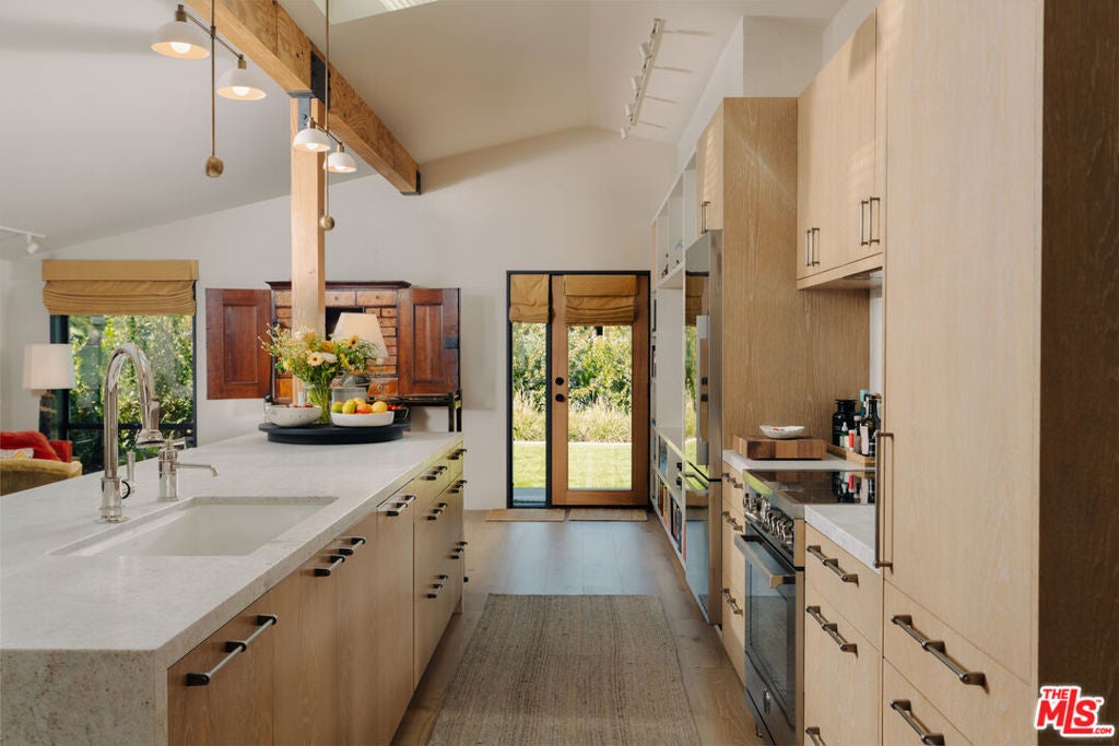 Discover this turnkey, reimagined mid-century modern masterpiece located in the heart of Ojai. Zoned village-mixed-use, this unique live/work property offers an ideal location next to the lively Ojai Certified Farmers Market, top-rated restaurants, wineries, boutiques, galleries, the Ojai Valley Inn & Spa, and around the corner from the new Hotel El Roblar. Designed by the renowned Whelan-O'Neill architectural firm and completed in 2023, this thoughtfully renovated space features 750 sqft+/- of retail/commercial space and 1,205 sqft+/- of private living. Hardscaping and landscaping have been extensively upgraded throughout. Additional upgrades include an outdoor shower; whole-house water filtration provided by Life Source; Waterworks plumbing fixtures; Apparatus, Noguchi, and vintage lighting fixtures; Nanz decorative hardware; electrically operated skylight shades; new primary bath cabinetry; new electrical floor sockets, and updated wiring to provide the home with the highest-speed internet. The private living quarters boast two stylish bedrooms, two-and-a-half spa-inspired bathrooms with radiant heated tile floors, and an open-concept living area, including a modern chef's kitchen. The expansive backyard, a rare find in downtown Ojai, is perfect for entertaining, offers room for a pool or ADU, and provides stunning views of the iconic Topa Topa mountains, especially during the famous Ojai Pink Moment. This property is an ideal live/work sanctuary in vibrant, historic Midtown Ojai.