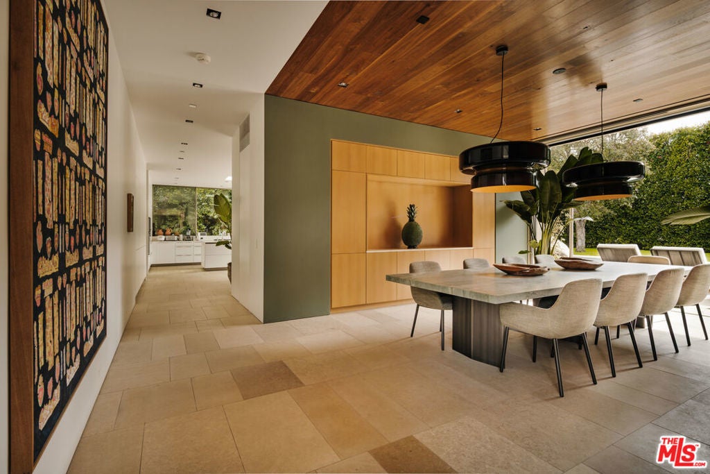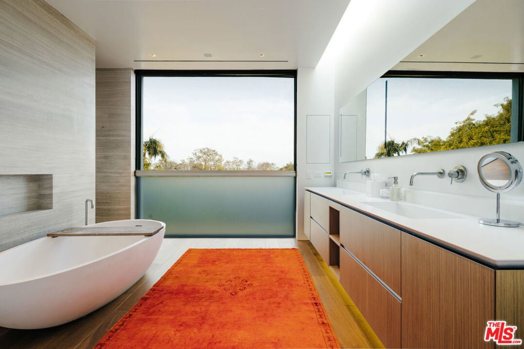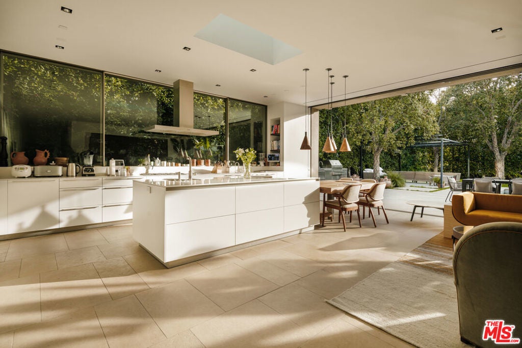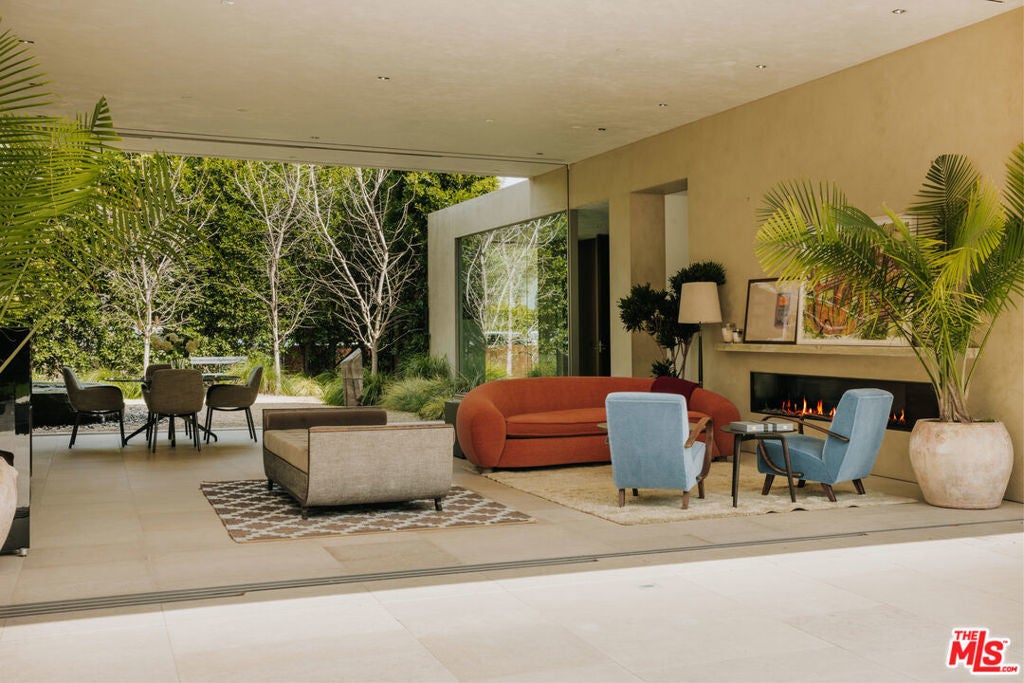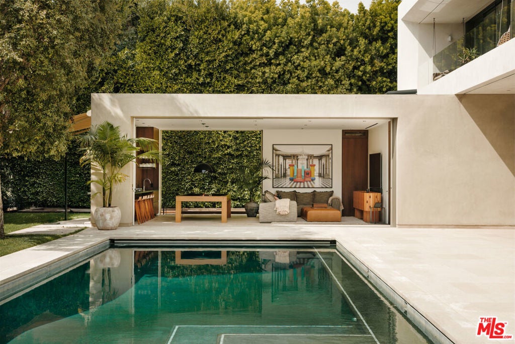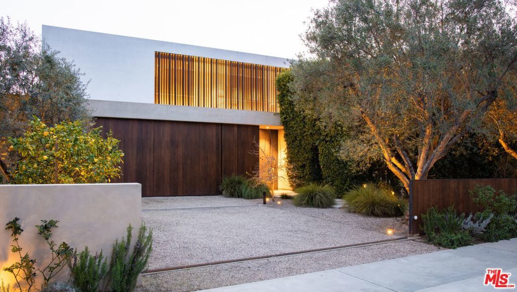 Introducing One Over Two, an exquisite architectural estate by Michael Kovac and MG Partners, located in one of Brentwood's most desirable enclaves. Set on an expansive double flat lot that amplifies both scale and privacy, this custom family home is as visually captivating as it is inherently livable. Beyond its bold facade, a private sanctuary unfolds, where a serene entry courtyard sets a tranquil tone from the moment of arrival. Voluminous interiors, defined by warm wood accents and walls of glass, dissolve the boundaries between indoors and out. The gourmet kitchen is outfitted with the finest integrated appliances, while an additional chef's kitchen, complete with its own private entrance and the option to be discreetly enclosed, effortlessly caters to both intimate evenings and grand-scale entertaining. The elegant dining room seamlessly opens to the outdoors, offering a stunning setting for memorable meals and sophisticated soires. A hidden bookshelf door reveals a private office and guest suite, while the upper level can be secured, creating a tranquil retreat above it all. The primary suite features a spacious walk-in closet and sliding doors that open to a deep, covered balcony, perfect for taking in the serene views of the lushly landscaped grounds. The spa-inspired ensuite is designed for utmost relaxation, complete with an infrared sauna, dual vanities, and a freestanding tub. Curated for those who appreciate the art of entertaining, the estate's outdoor spaces are a true masterpiece of leisure. A bocce court, immaculate pool, spa, outdoor kitchen with pizza oven and meticulously kept landscaping create the perfect setting for gatherings that flow effortlessly from day to night. Below, the basement accommodates atech room and a wine cellar. To facilitate clutter-free living within the expansive, open spaces, generous storage areas have been thoughtfully integrated across all three levels. Elevated by cutting-edge amenities, including radiant heated floors throughout, a state-of-the-art Mitsubishi HVAC system with ultra-quiet airflow and advanced filtration, solar power with battery backup, whole-home water filtration, a discreet laundry chute, and 24-hour neighborhood guard patrol, this home is as intelligent as it is striking. Unparalleled in design and setting, this is a home you won't want to miss.