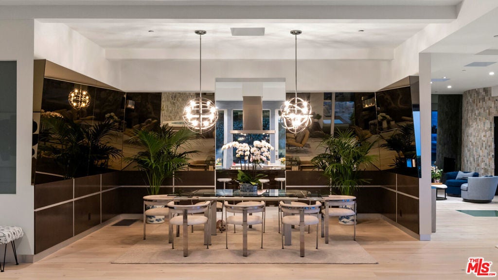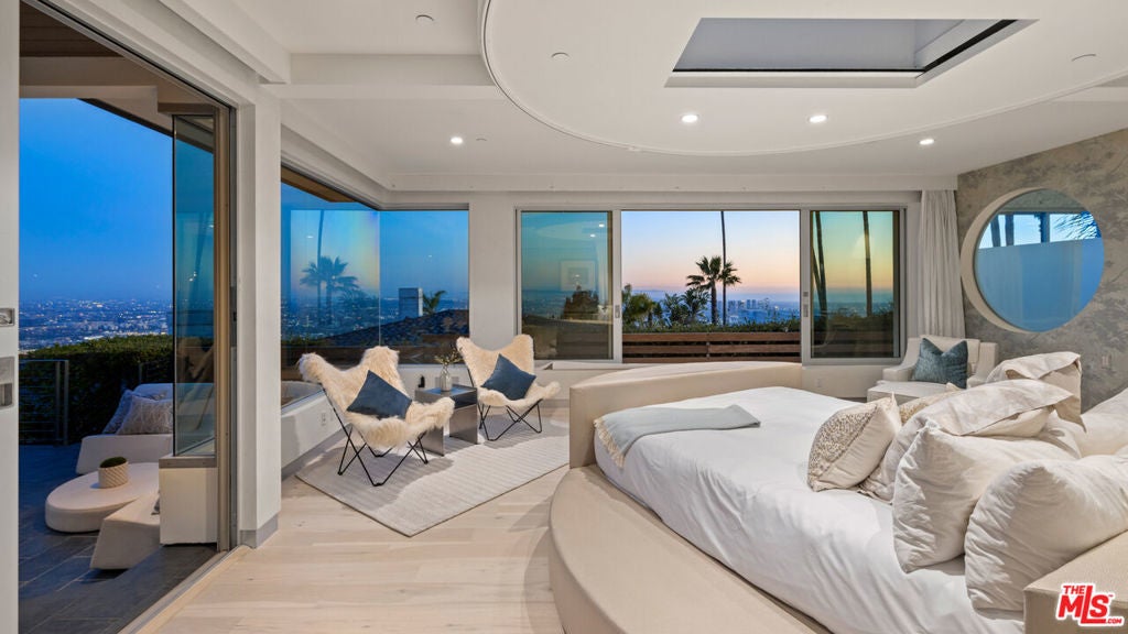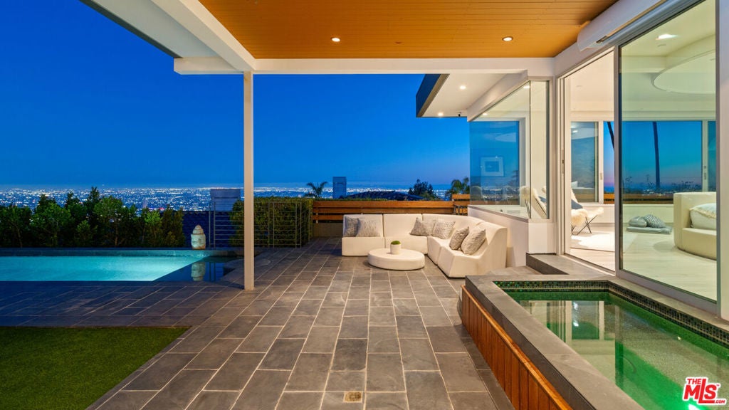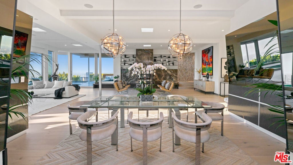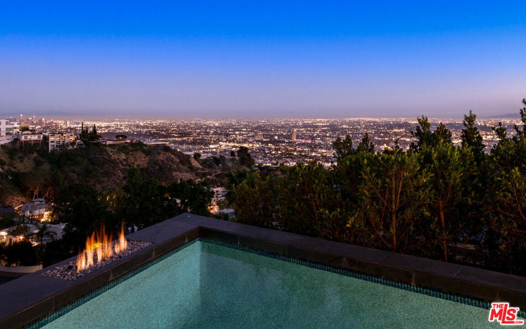 Perched atop the coveted Bird Streets in Doheny Estates, 9353 Nightingale Drive is an architectural triumph that seamlessly blends modern luxury with breathtaking panoramic views. This exquisite residence boasts an open-concept design, where soaring ceilings, floor-to-ceiling glass walls, and expansive living spaces create an effortless flow between indoor and outdoor living. The sleek chef's kitchen is a culinary dream, featuring top-of-the-line appliances, custom cabinetry, and a stylish islandperfect for both entertaining and everyday living. Just beyond, an outdoor BBQ and seating area provide the ideal setting for al fresco dining. The primary suite is a private sanctuary, offering head-on city views, a cozy fireplace, a serene seating area, and a spa-inspired bath. A dream walk-in closet, designed with double functionality as a panic room, adds a touch of discreet sophistication. For ultimate entertainment, the home has a dedicated media room, a fitness area, and a full bar with seating, accompanied by a temperature-controlled wine cellar. The resort-style backyard is an oasis of relaxation, complete with a stunning pool, fire pit, and multiple outdoor lounge spaces all set against the dazzling backdrop of Los Angeles' skyline. Other features include an elevator, a fireproof room, a state-of-the-art security system, and a two-car garage equipped with lifts to accommodate additional vehicles. Just moments from the world-class dining, shopping, and entertainment of the Sunset Strip, this extraordinary residence presents a rare opportunity to own one of the most iconic homes in Los Angeles.