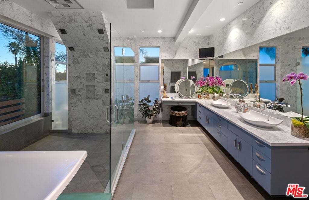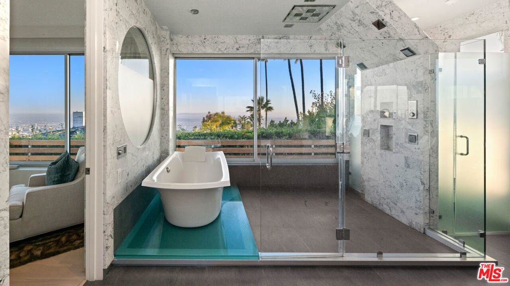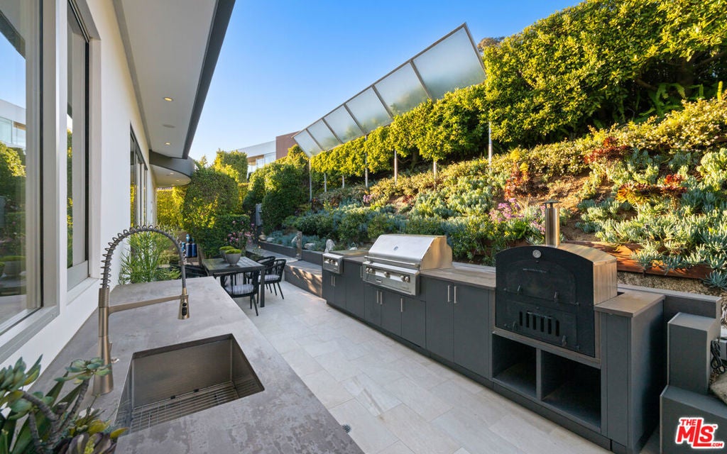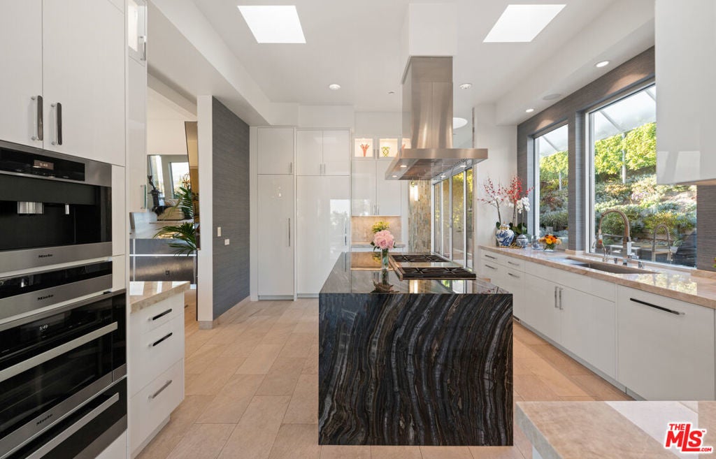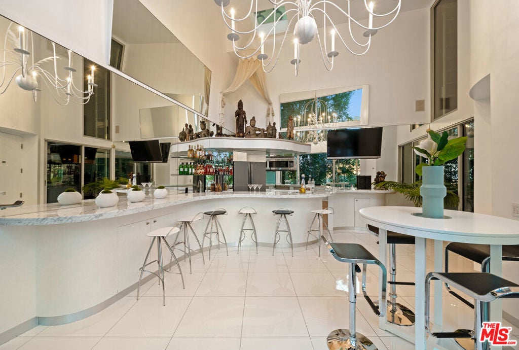 Perched atop the coveted Bird Streets in Doheny Estates, 9353 Nightingale Drive is an architectural triumph that seamlessly blends modern luxury with breathtaking panoramic views. This exquisite residence boasts an open-concept design, where soaring ceilings, floor-to-ceiling glass walls, and expansive living spaces create an effortless flow between indoor and outdoor living. The sleek chef's kitchen is a culinary dream, featuring top-of-the-line appliances, custom cabinetry, and a stylish islandperfect for both entertaining and everyday living. Just beyond, an outdoor BBQ and seating area provide the ideal setting for al fresco dining. The primary suite is a private sanctuary, offering head-on city views, a cozy fireplace, a serene seating area, and a spa-inspired bath. A dream walk-in closet, designed with double functionality as a panic room, adds a touch of discreet sophistication. For ultimate entertainment, the home has a dedicated media room, a fitness area, and a full bar with seating, accompanied by a temperature-controlled wine cellar. The resort-style backyard is an oasis of relaxation, complete with a stunning pool, fire pit, and multiple outdoor lounge spaces all set against the dazzling backdrop of Los Angeles' skyline. Other features include an elevator, a fireproof room, a state-of-the-art security system, and a two-car garage equipped with lifts to accommodate additional vehicles. Just moments from the world-class dining, shopping, and entertainment of the Sunset Strip, this extraordinary residence presents a rare opportunity to own one of the most iconic homes in Los Angeles.