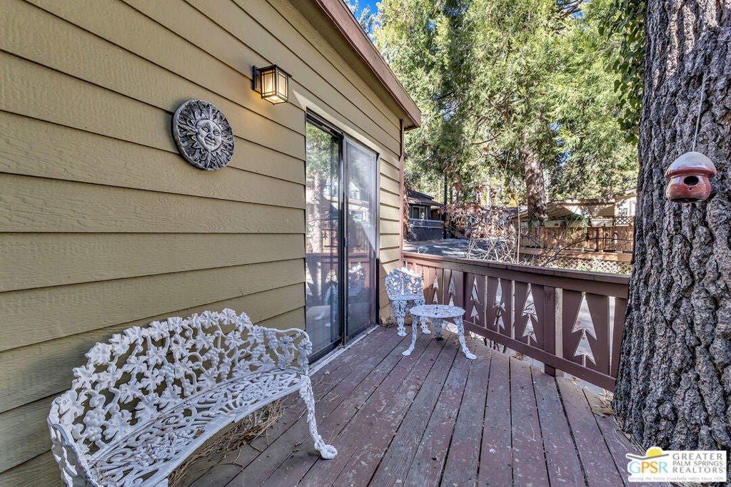 ** Price Reduced ** Cozy Cottage. This 55 plus community, 2 bed home located in the heart of downtown Idyllwild, just steps from the village center. Walk to all of the restaurants, shops, wineries, and markets. Features a charming living room with high ceilings, plenty of windows/sliding doors for natural light. Also has a wood burning fireplace, and dual-pane windows. Step into a modern kitchen with appliances included. The home is heated and cooled with a large mini-split. The primary bedroom and guest rooms are spacious with quality mirrored closets. The home also includes front loading washer/dryer. Outdoors features 2 patios perfect for warm evenings. There is large storage shed with electricity and a fenced dog run. This charming cottage is very nice and won't last long. Amenities includes clubhouse for residents, snow plow service, water bill included. Space rent is $809.00 per month. SELLER TO PAY 6 MONTHS OF SPACE RENT. Senior Living 55 plus only. Requires park approval. STR's are not permitted. Back on the market. Home inspection available upon request.