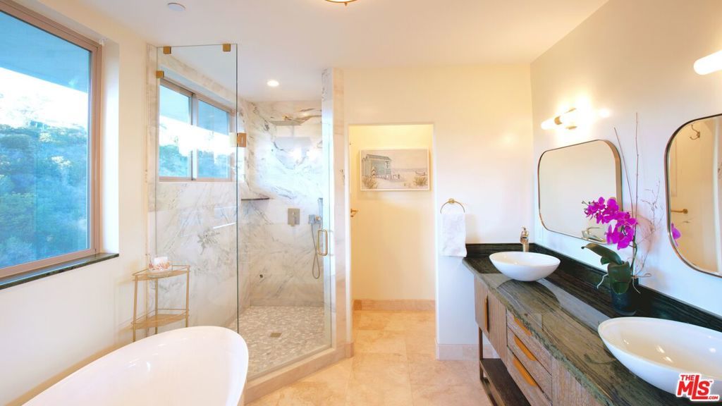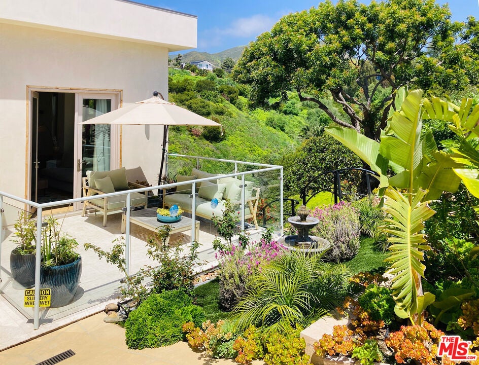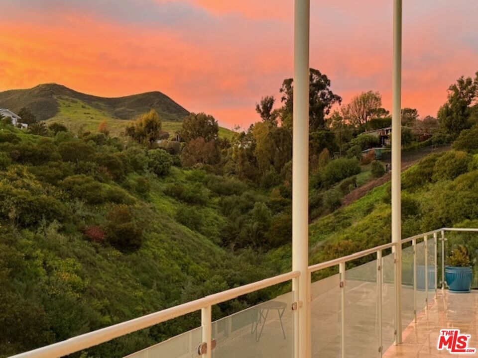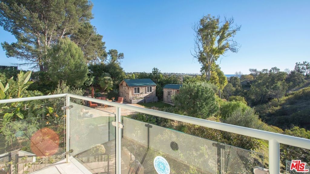 GREAT OPPORTUNITY! Exceptional newly constructed Architectural offers the perfect blend of sophisticated European design and modern luxury. Set on 1.09 acres, the property is surrounded by mature trees and beautifully landscaped gardens, creating a peaceful retreat just minutes from Malibu's iconic beaches, schools, shops, restaurants. No detail has been overlooked in this light-filled, two-story home. The interior features European white oak flooring, travertine, Italian marble with granite accents, custom Italian designer lighting, and solid mahogany doors throughout. Soaring 15' ceiling and wide travertine wrap-around balconies enhance the home's airy, open feel. Every room enjoys views of the Tuscany-like gardens and partial ocean view, and gorgeous colorful sunsets to adore. The spacious open floor plan seamlessly connects the Chef's kitchen, dining area, and living room with a stylish gas fireplace, creating an ideal space for both everyday living and entertaining. A media room connecting to a travertine deck further enhance the home's appeal. The fabulous kitchen features Mont Blanc Quartzite countertops with backsplash, high-end appliances, and a walk-in pantry. A cozy breakfast nook and dining area provide the perfect settings for casual meals or entertaining guests. The lower level hosts a spacious master suite and a comfortable guest suite, both with private balconies and Italian marble bathrooms. A third bedroom/office with its own private entrance offers flexibility and privacy for guests or work, plus a separate laundry room and a workout room with direct access to the garden. In addition to the main living spaces, this home boasts an approximately 500 sq ft bonus room beneath the lower level, on the ground floor. This versatile space is perfect for a large gym, sound studio or workshop, featuring also a 15' ceiling, ready for you to customize to suit your lifestyle. The home is equipped with a fully paid-off 10Kw solar system and 30Kw storage batteries, ensuring energy independence with the option to connect to SCE grid power. Wired for EV charging. All utilities electric, gas and water are underground. Central heat and A/C, smart home features, including a WiFi Nest thermostat and WiFi-controlled irrigation system for the gardens. 2 car garage and ample private guest parking. In addition to the main house are 2 Vermont style post & beam cottages, one built as a living space, and one with separate fully equipped kitchen , solar and electricity, and an outdoor warm water shower providing additional living space in the beautiful garden setting. Can be completed as ADU. Jacuzzi/hot tub in the lower garden. There is room for a pool, detached garage or a guest house. This exceptional home is conveniently located close to Malibu's pristine beaches, renowned restaurants, schools, Trancas Market, Point Dume , Westward Beach and Zuma Beach, combining privacy and natural beauty all around. All this offered at a very fair price to value.