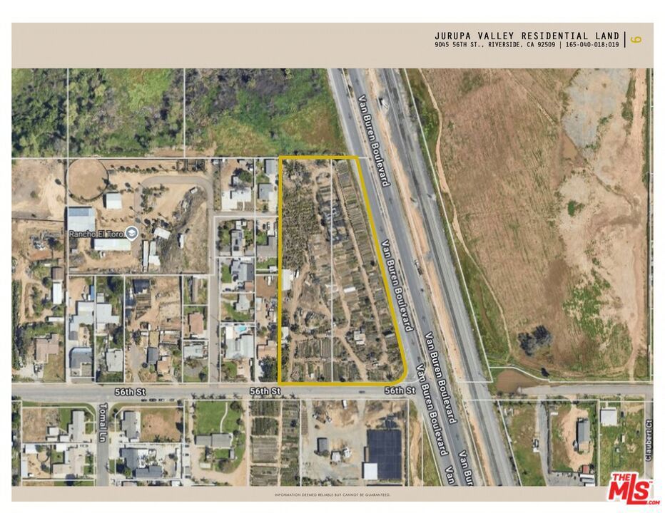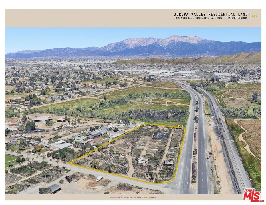 Around 5 acres of residential land located in the fast growing city of Jurupa Vally, Riverside county. Fantastic opportunity for developers! Centrally located in the highly desired area of Jurupa Valley. Fully entitled to build 6 new single family houses with a minimum of 20,000 SF lot size. The permit is in the process from 6 houses to 12 houses, pending city approval. Additional parcel of 119,790 SF, 165-040-019, is included in the sale.