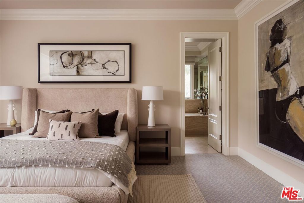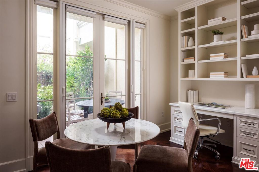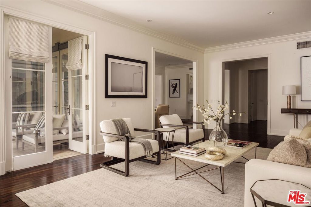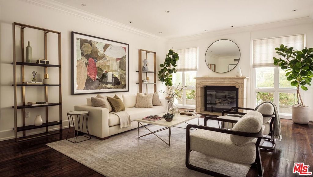 One of the premier residences in Century City's prestigious Le Parc community a beautifully updated and thoughtfully re-designed condominium offering exceptional craftsmanship, space, and privacy. This expansive 2-bedroom, 3-bath home is defined by clean architectural lines, high flat ceilings, and bespoke details throughout. Honed walnut floors run seamlessly through the main living areas, complementing the elegant custom moldings and recessed lighting found in every room. The formal living room is anchored by a fireplace with hand-carved French limestone mantle. The eat-in kitchen features marble countertops and backsplash, custom cabinetry, built-in marble topped desk, separate storage area, and direct access to the patio, creating an ideal space for everyday living and entertaining. A separate library is outfitted with built-in bookcases, offering a quiet retreat for reading or working from home. This could alternatively serve as a second bedroom with two closets and en-suite bath. The generously sized primary suite is a true sanctuary, with French doors leading to a landscaped balcony, dual walk-in closets with custom interiors, and a spacious marble-clad bath with soaking tub, dual vanities, and spa-style finishes. Additional highlights include a large in-unit storage closet, and excellent flow throughout the open-concept living and dining areas. Le Parc is a full-service, guard-gated community in the heart of Century City, offering resort-style amenities including two pools and spas, tennis courts, gym, and a clubhouse all just minutes from Beverly Hills, Westwood, and world-class dining and shopping.