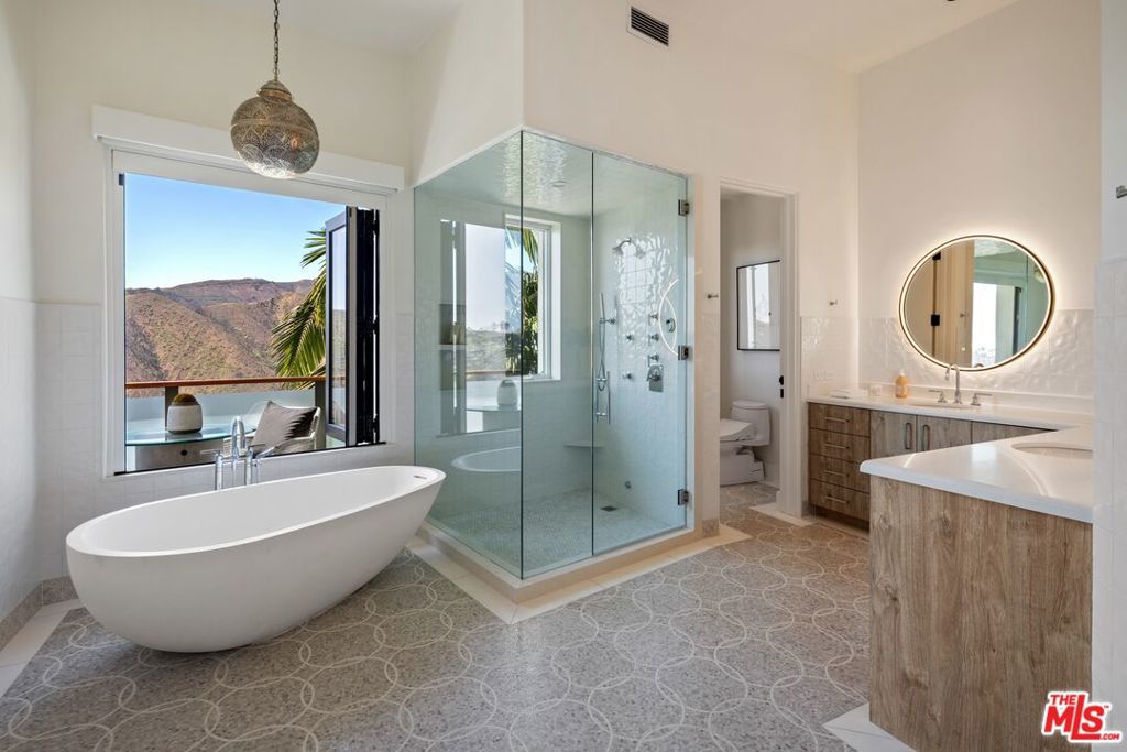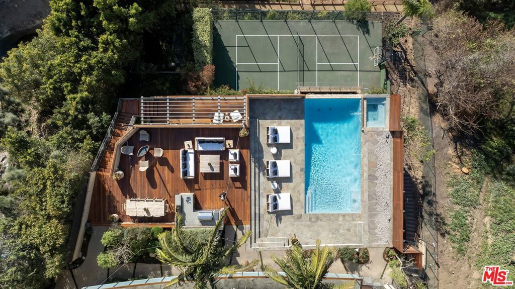 Peaceful, private and designed with exceptional care, 1535 Umeo Road in the Pacific Palisades' Upper Riviera neighborhood balances modern amenities, timeless style and unparalleled convenience. This gated, 6-bedroom/9-bath home (all ensuite plus two half baths) is steeped in serenity and boasts a resort-like ambiance. Set across 8,640SF spanning a main house and an additional guest studio 1535 Umeo Road offers versatile, expansive living space designed for gathering and connecting. This estate's one-of-a-kind views are simply without comparison. Enjoy sweeping sunsets and panoramas that encompass Will Rogers State Park, the ocean and beyond from its rooftop deck with pergola, backyard and multiple balconies. Inside, find a spacious kitchen, outfitted with top-tier Sub-Zero and Viking appliances, a 146-bottle wine fridge, and a butler's pantry. The indoor-outdoor bar area & game room is ideal for all-season social gatherings. Luxurious features also include heated floors throughout, three fireplaces, a glass elevator with a custom mural, a home theater, gym, and a 1,000-bottle wine cellar. Smart home technology enhances convenience with Lutron-controlled lighting and window treatments. The picture-perfect primary suite is also replete with a fireplace and a newly remodeled bathroom with dual Toto toilets, a steam shower, and a freestanding tub. Outside, exquisite landscaping by celebrity designer Stephen Block of Inner Gardens adds a zen-like quality to the estate, complete with fruit trees, a succulent-filled hillside, and elegant stone and teak decking. A true entertainer's paradise, this home's outdoor space includes an infinity pool and spa, outdoor shower, fire pit, sports court with pickleball and half-court basketball, and a spacious deck with built-in BBQ and fridge. A detached on-site guest suite (suited to be an art studio or office with bedroom & en-suite bathroom) offers even more versatility. The 16-camera security system, Elk alarm system & interior/exterior fire sprinklers, keep the home safe. Solar panels reduce energy costs while the RO water purification system ensures clean water throughout the property. A refined retreat in a divine location, 1535 Umeo Road pairs resort-style living with easy access to beloved local attractions and amenities. Brentwood Country Mart, Riviera Country Club & Santa Monica are all minutes away. All pictures & videos for this listing were taken on April 9, 2025