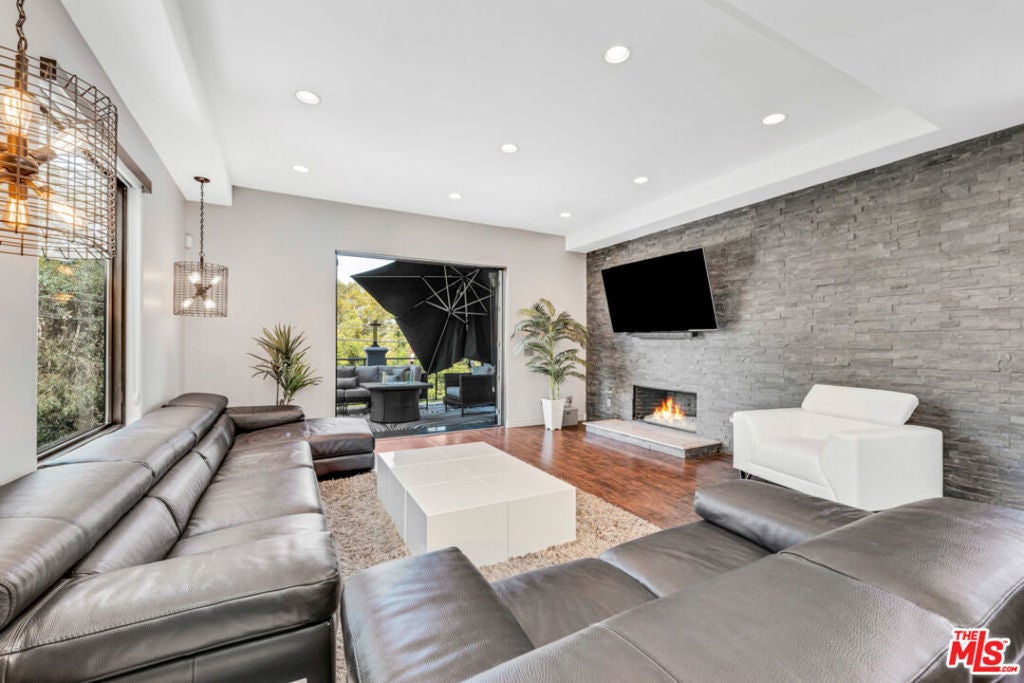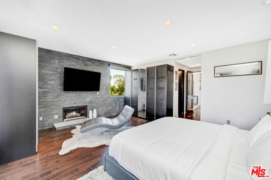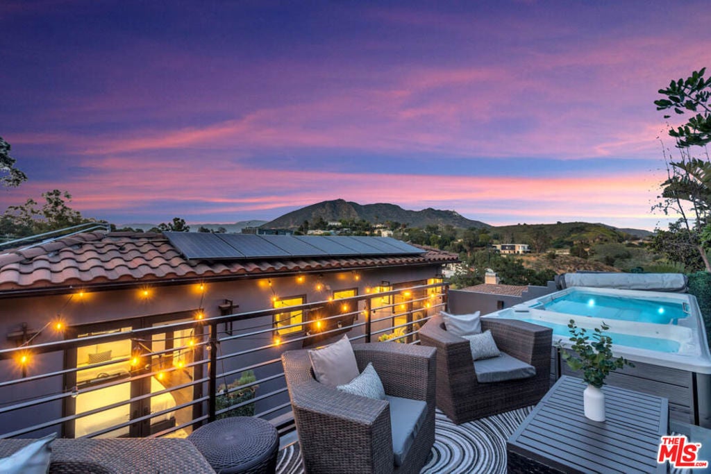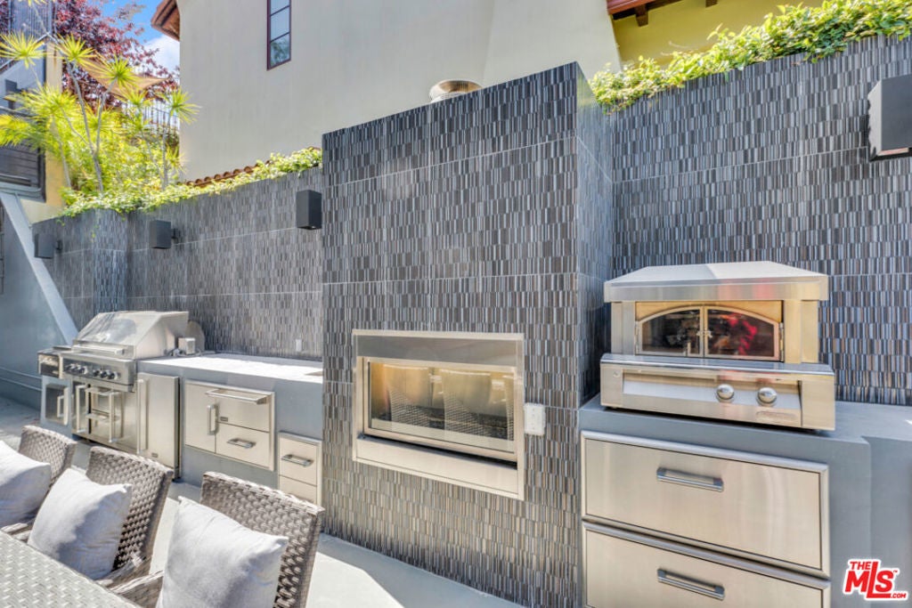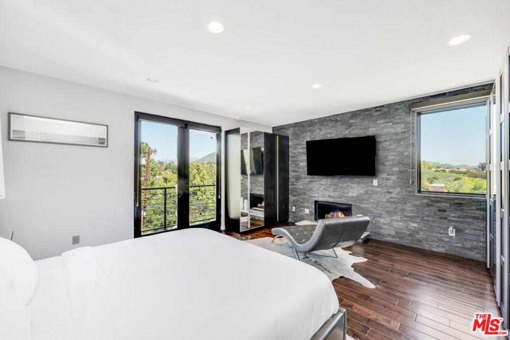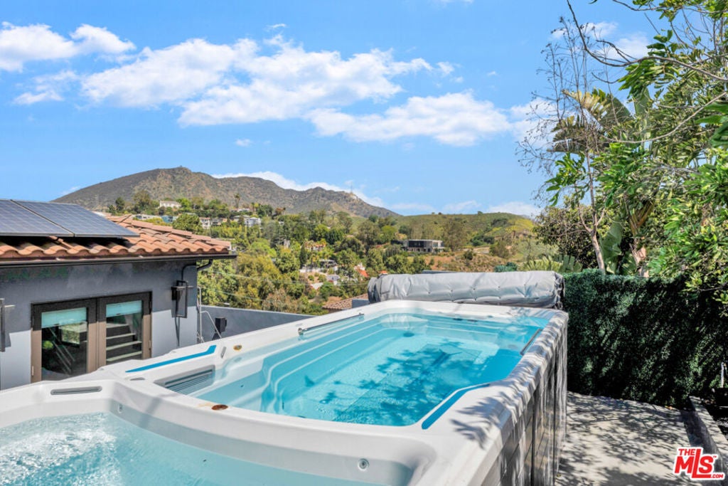 Exquisite Home with Breathtaking Views in Hollywood Hills. No expense has been spared in the complete renovation of this stunning 4-bedroom, 4-bathroom residence. As you enter through the private gated driveway, you'll notice the newly upgraded 2-car garage with epoxy flooring and a brand new garage door. The secured gated entry leads you to a custom outdoor kitchen equipped with top-of-the-line appliances including a professional wok, pizza oven, Viking BBQ, and stainless steel cabinetry. The outdoor area also features a fireplace, custom tile walls, and a relaxing seating area. Step through the modern glass entry door and you'll find a spacious living room designed for seamless indoor-outdoor living. The living room boasts Pella doors, custom window shades, and a main level bedroom with a full bath nearby. The chef's kitchen is a culinary dream, featuring Viking appliances, a large island, custom cabinetry, and beautiful stone countertops. There are also multiple built-in wine fridges with a combined capacity of 400 bottles. The entertainment-focused design continues outside with a large deck and multiple outdoor seating areas. Enjoy the stunning views of the Hollywood sign while lounging in the private outdoor spaces. The multi-level backyard provides direct access to two generously sized bedrooms, each with an en-suite bath. The master suite offers a walk-in closet, a stone facade fireplace, and a balcony with panoramic views of the Hollywood sign. The spa-like master bathroom features two separate vanities, a two-person jacuzzi tub, a steam shower, and large windows that flood the space with natural light. This home is equipped with various upgrades including a fully owned solar system, a water filtration system by Life Source, and a tankless water heater. The exterior features new lighting, drought-resistant landscaping, and fresh paint. Additional amenities include a dog run, a swim spa E2000 Endless Pool Fitness System, an outdoor TV with a sound bar, and easy access to popular locations such as the 101, Runyon Canyon, West Hollywood, and Beverly Hills. This property is registered to do Short Term Rentals and has consistent BOOKINGS! Which provides a great investment opportunity for one looking for that. This property is permitted to operate as a Short Term Rental.