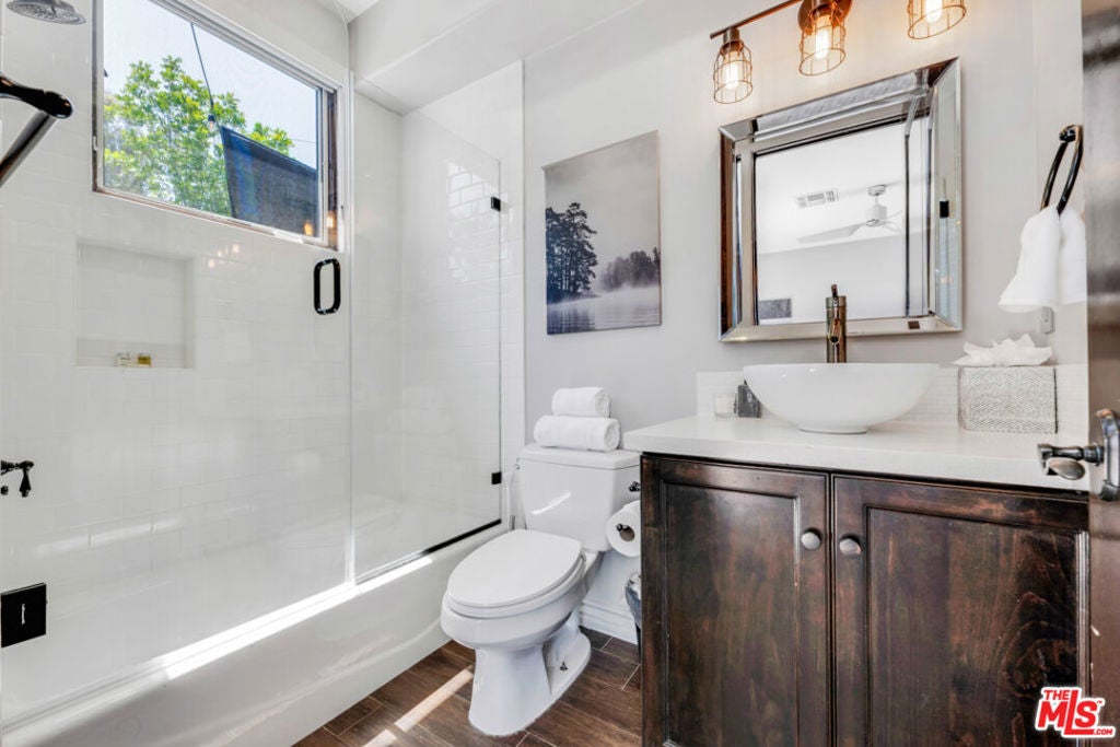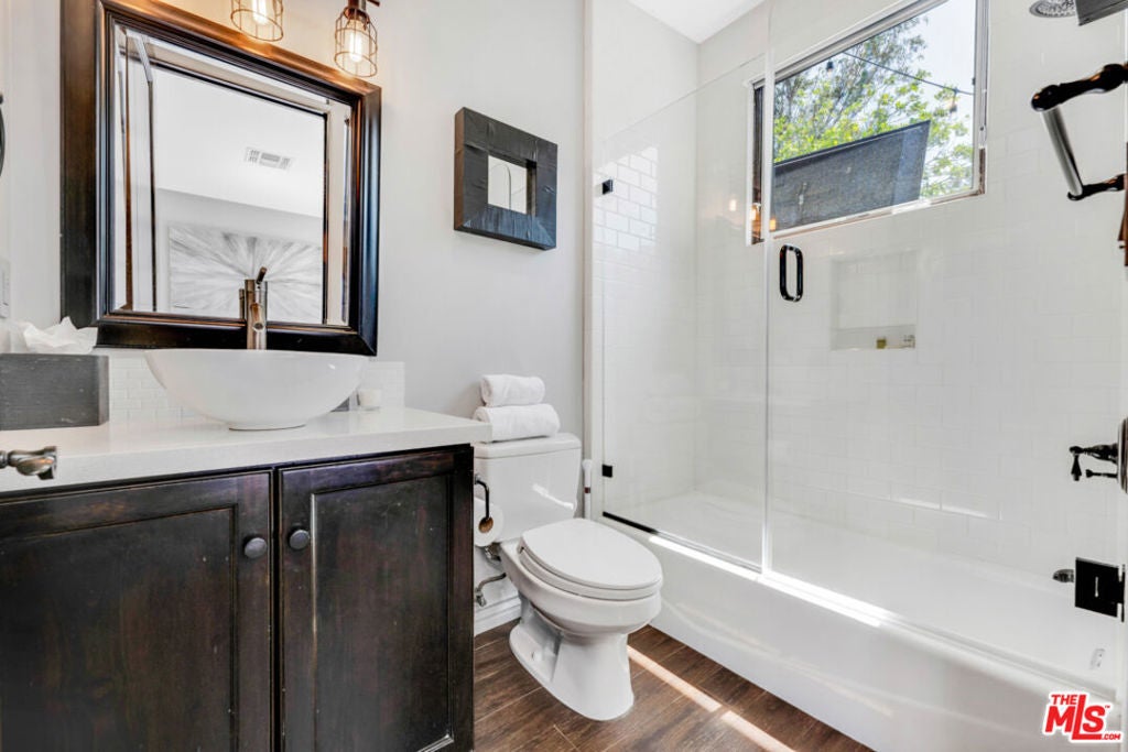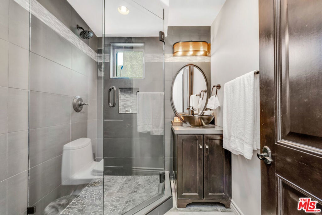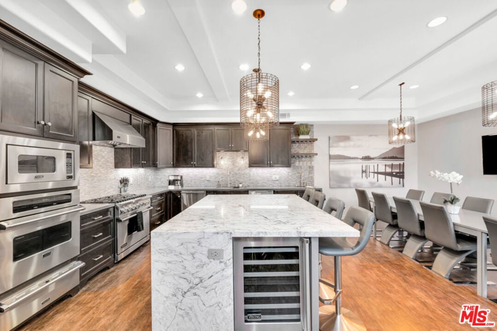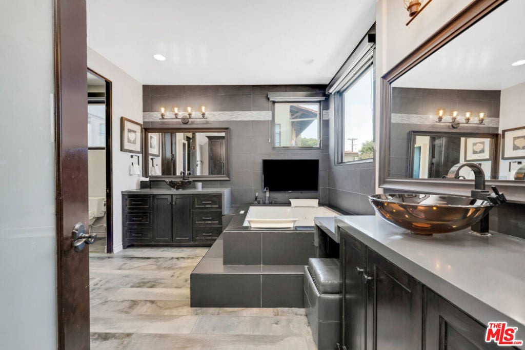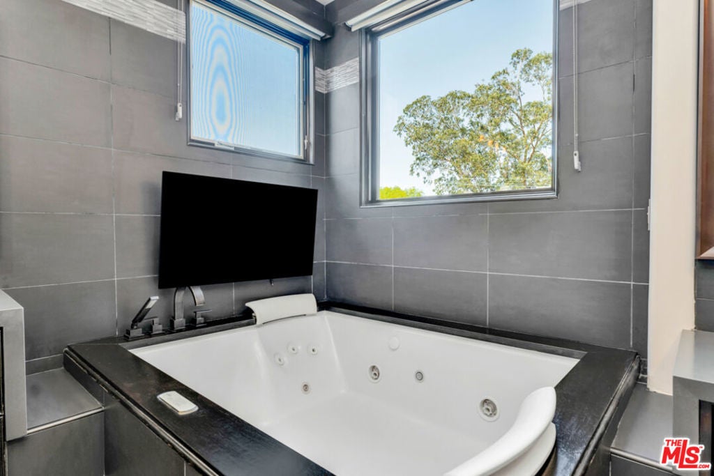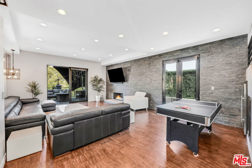 Exquisite Home with Breathtaking Views in Hollywood Hills. No expense has been spared in the complete renovation of this stunning 4-bedroom, 4-bathroom residence. As you enter through the private gated driveway, you'll notice the newly upgraded 2-car garage with epoxy flooring and a brand new garage door. The secured gated entry leads you to a custom outdoor kitchen equipped with top-of-the-line appliances including a professional wok, pizza oven, Viking BBQ, and stainless steel cabinetry. The outdoor area also features a fireplace, custom tile walls, and a relaxing seating area. Step through the modern glass entry door and you'll find a spacious living room designed for seamless indoor-outdoor living. The living room boasts Pella doors, custom window shades, and a main level bedroom with a full bath nearby. The chef's kitchen is a culinary dream, featuring Viking appliances, a large island, custom cabinetry, and beautiful stone countertops. There are also multiple built-in wine fridges with a combined capacity of 400 bottles. The entertainment-focused design continues outside with a large deck and multiple outdoor seating areas. Enjoy the stunning views of the Hollywood sign while lounging in the private outdoor spaces. The multi-level backyard provides direct access to two generously sized bedrooms, each with an en-suite bath. The master suite offers a walk-in closet, a stone facade fireplace, and a balcony with panoramic views of the Hollywood sign. The spa-like master bathroom features two separate vanities, a two-person jacuzzi tub, a steam shower, and large windows that flood the space with natural light. This home is equipped with various upgrades including a fully owned solar system, a water filtration system by Life Source, and a tankless water heater. The exterior features new lighting, drought-resistant landscaping, and fresh paint. Additional amenities include a dog run, a swim spa E2000 Endless Pool Fitness System, an outdoor TV with a sound bar, and easy access to popular locations such as the 101, Runyon Canyon, West Hollywood, and Beverly Hills. This property is registered to do Short Term Rentals and has consistent BOOKINGS! Which provides a great investment opportunity for one looking for that. This property is permitted to operate as a Short Term Rental.