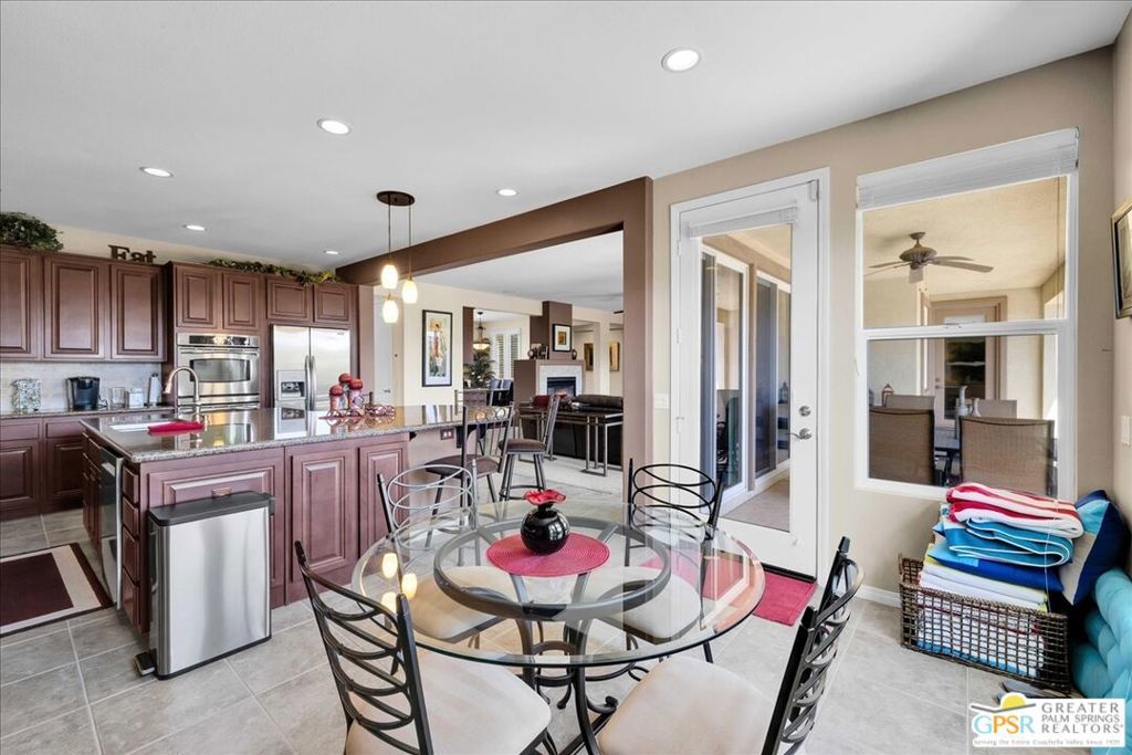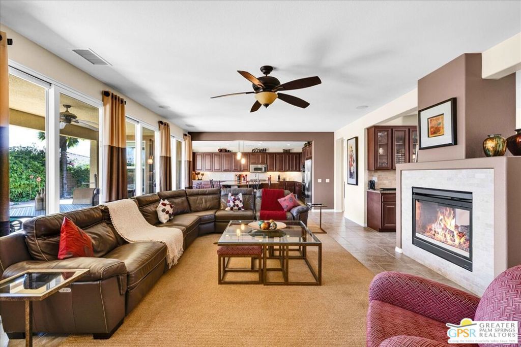 Another MAJOR PRICE REDUCTION! Motivated sellers! This beautiful home is the largest floor plan at Aviara at Mission Shores and comes fully furnished. The open plan features a large great room, separated from the formal dining room by a see-through fireplace, and an oversized kitchen with a large island perfect for entertaining or for casual meals. Cooking is a delight with the double oven and gas stove top. There are 4 ensuite bedrooms, including an oversized primary suite with 2 walk-in closets. The south facing backyard provides mountain views and hours of enjoyment with a covered patio, pebble tech pool and spa and a BBQ island. Mission Shores is a gated community in prestigious Ranch Mirage, equal distance to downtown Palm Springs and El Paseo, and close proximity to the airport, golf courses, hiking trails and all that the Valley has to offer. The low HOA fees include front yard maintenance, an upgraded Spectrum TV package, 1 gig Internet speed and well funded Reserves.