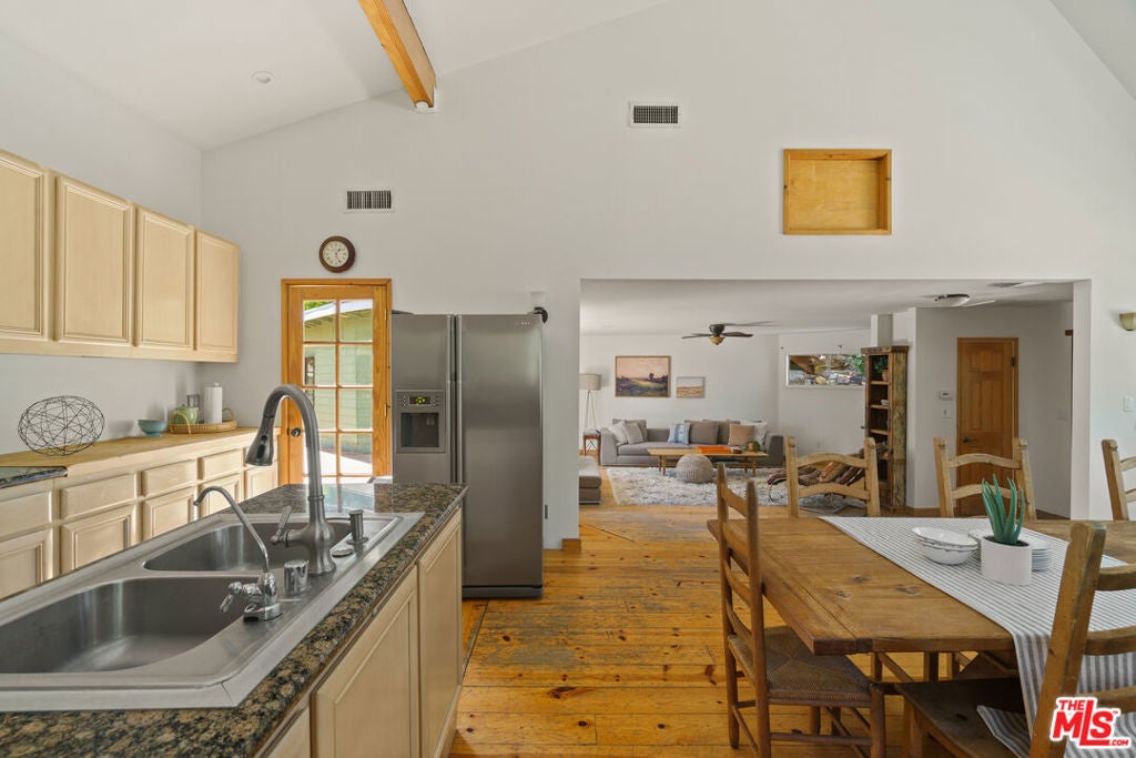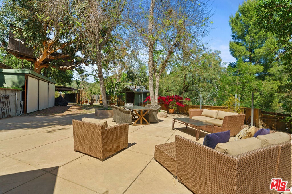 Nestled on a peaceful street off Old Topanga Canyon Road, this light-filled 4-bedroom, 2-bath home is a soulful retreat surrounded by nature and full of rustic charm. A separate 1-bedroom, 1-bath guest unit adds flexibility, ideal for visitors, creative space, or potential rental income. High ceilings, expansive windows, and soft natural light throughout create a warm, open atmosphere that embraces the spirit of canyon living. The main living and dining areas offer a comfortable flow, leading into a clean, functional kitchen that's ready for your personal touch. Natural materials and organic tones carry throughout the home, bringing a sense of calm and connection to the outdoors. Each of the four bedrooms feels bright and serene, with the primary suite opening to a private patio perfect for quiet mornings or stargazing nights. Surrounded by mature trees and multiple outdoor living areas, this property offers peaceful seclusion just minutes from hiking trails, the heart of Topanga village, and the coast.