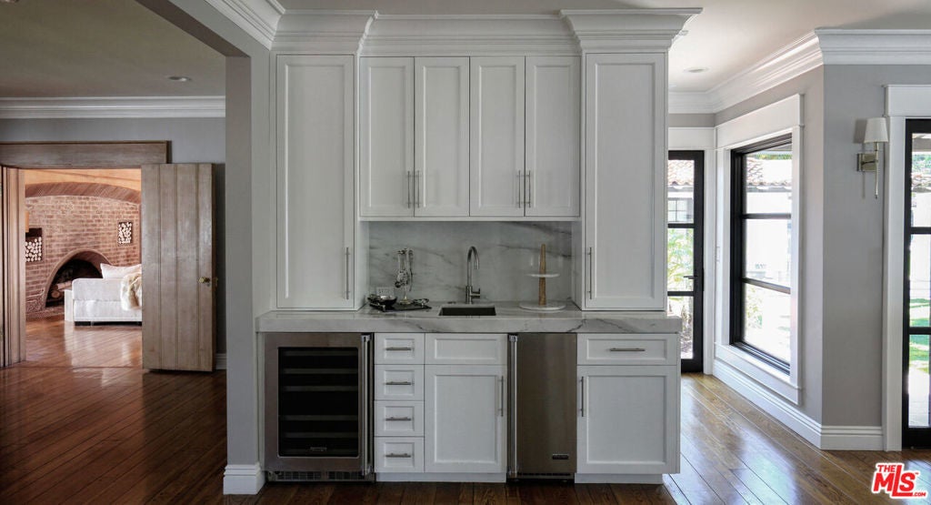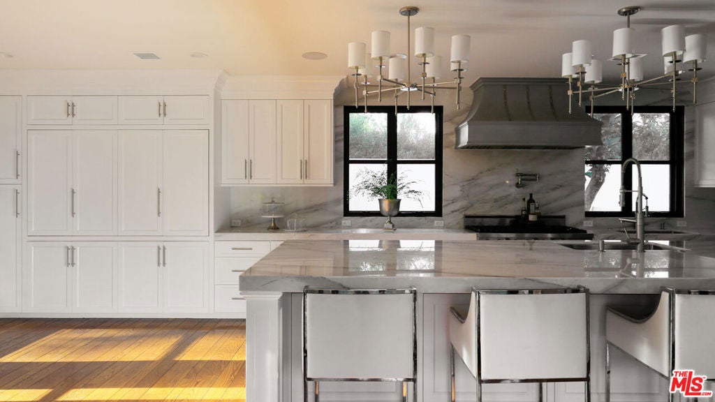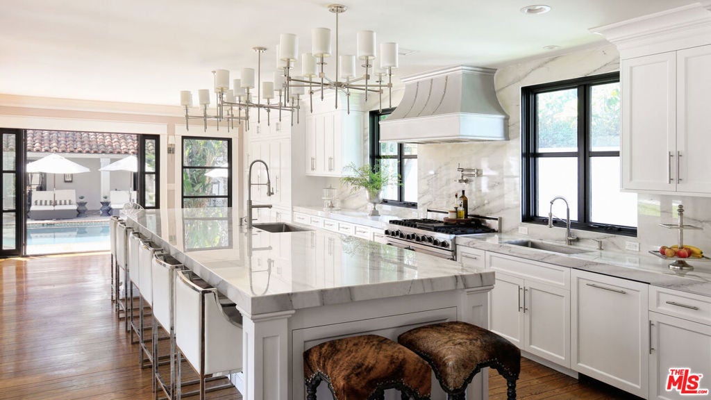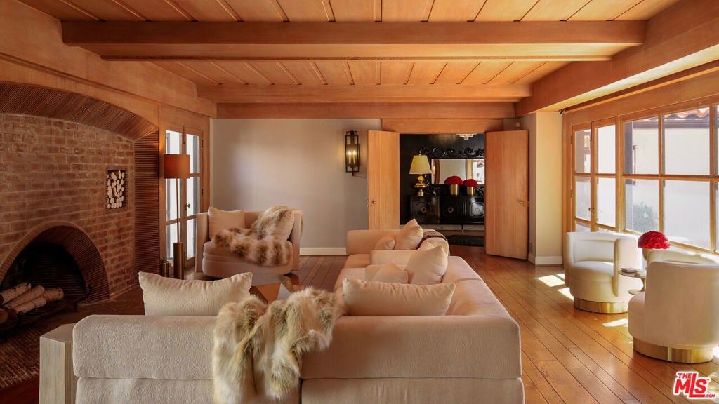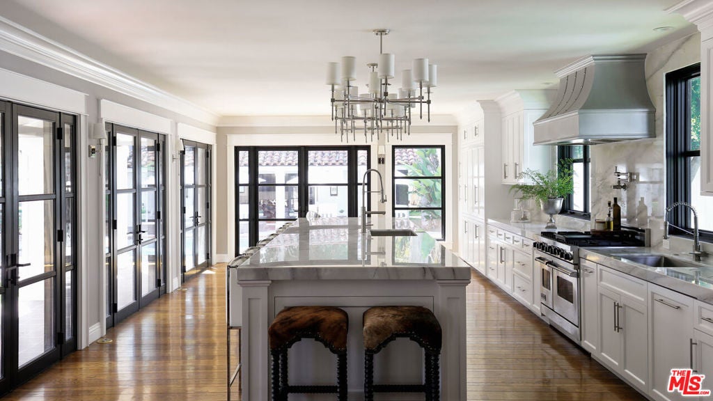 **** CALL TO VIEW ****. Rarely does timeless elegance merge so effortlessly with modern luxury as in this iconic 1923 Spanish Hacienda Estate--- once part of historic Rancho Mission and owned by Edgar Rice Burroughs. Nestled on a rare, flat, park-like acre, this gated 6-bed, 9-bath, 6,180 sqft compound is a private sanctuary embodying the romance of a bygone era and the essence of classic California living. Fully walled and gated, the estate opens to a double-wide motor court and spacious four-car garage. Meandering paths lead through lush gardens, fountains, expansive lawns, and a guest home. At its heart, a resort-style pool evokes the magic of old Hollywood. *** The single-level hacienda, centered around a serene courtyard, celebrates the indoor/outdoor lifestyle. Inside, warm architectural details and expansive spaces create an inviting setting for both grand entertaining and relaxed living. A full-wall fireplace with bold brick design anchors the grand living room, enhanced by beamed and paneled ceilings and classic French doors that flood the space with light and sunning views of the grounds. *** The oversized dining room opens to the inner courtyard, while the newly remodeled chef's kitchen is a showstopper anchored by a stunning 16-foot Calacutta marble island, matching marble countertops, custom cabinetry, and top-tier appliances, including a Viking 8-burner range with double ovens, 2 dishwashers, triple basin Franke Stainless Steel sink, and an array of countless premium upgrades. Framed by floor-to-ceiling steel French doors, the room offers breathtaking views of the grassy courtyard and sparkling pool. *** The expansive primary suite is a serene retreat with a brick-arched fireplace, spa bath, sitting room, and private office. A colonnade leads to three oversized ensuite bedrooms, a fourth bedroom or library, a private office/gym, and oversized full media room overlooking the inner courtyard. *** Step outside and experience the vast, simply unmatched grounds--- like having your very own private park! From charming alfresco dining areas and multiple patios ideal for lounging or entertaining, to a sprawling Great Lawn that effortlessly accommodates everything from playful afternoons to the grandest of holiday gatherings and timeless celebrations. The show-stopping pool, nestled under 19 swaying palms, evokes classic Beverly Hills glamour. An impressive guest house with its own courtyard and yard completes the retreat and offers endless expansion possibilities. *** Secreted away, this extraordinary timeless estate stands as one of the area's most exceptional and rare offerings. A true one-of-a-kind compound that echoes the charm of a bygone era, it showcases distinctive architecture, unrivaled privacy, and a breathtaking natural park-like setting. From the moment you arrive, you're transported to a world all your own. A rare offering like none other, this estate must be seen to truly appreciate.