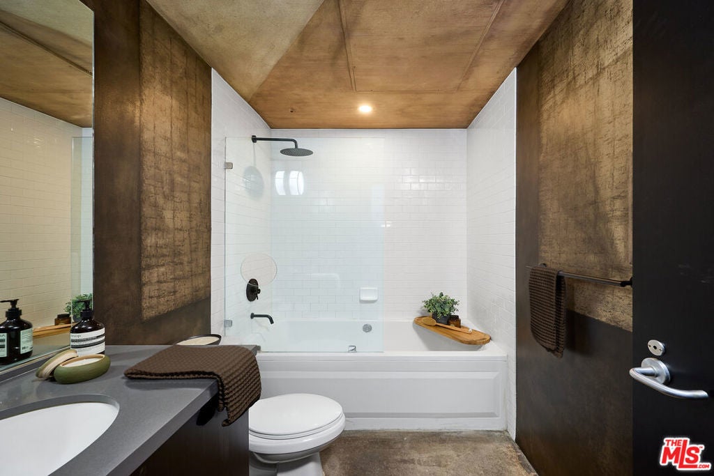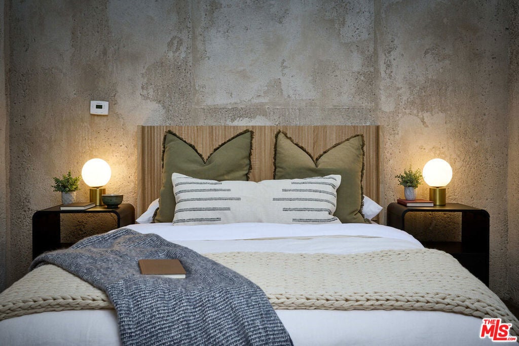 Wake up every morning to breathtaking skyline panoramas and sophisticated interiors thoughtfully crafted by internationally celebrated designer Jose Carrasco-Lama. With a dramatically reduced price, this Arts District loft honors the aesthetics and elements of the original Toy Factory building and reinterprets them into a fresh and dynamic live/work home. The textures and coloring of the iconic Toy Factory support pillars are echoed in the newly-constructed private bedroom retreat. The sun-drenched living room takes advantage of the original east-facing factory windows that overlook the architectural landmark of the new Sixth Street Bridge. The remodeled kitchen has new paneled appliances and emphasizes the warmth and sophistication found throughout the loft. The generous bathroom showcases Carrasco-Lama's one-of-a-kind custom paint design that completes this unique living environment which is sophisticated and elevated yet livable and unpretentious. The Toy Factory Lofts enjoy the best amenities of any of DTLA and Metro LA's complexes including a roof-top pool and pavilion, a mid-building outdoor garden with panoramic views of LA's skyline, generous dining areas, and community barbecues. On the ground level, a fully-appointed gym is set within a space that highlights the building's early 20th-Century architecture. Secured underground parking with its own dedicated EV charging station, 24-hour security, and a 24-hour concierge elevate this building to an unparalleled living experience. The Toy Factory Lofts are steeped in history - and your personal entry into its history is about to be written. Located amidst the vibrancy of the Arts District, the building is steps from some of the most innovative and award-winning restaurants including Cameila, Bestia, Bavel, Factory Kitchen, and many more. Hank's Grocery lies just outside your front door, as does SoHo House, Warner Music, The Bike Shed Moto Co, Hauser & Wirth Gallery, and so much more.