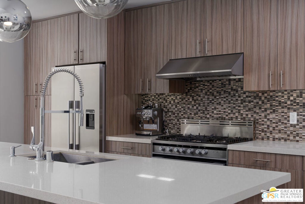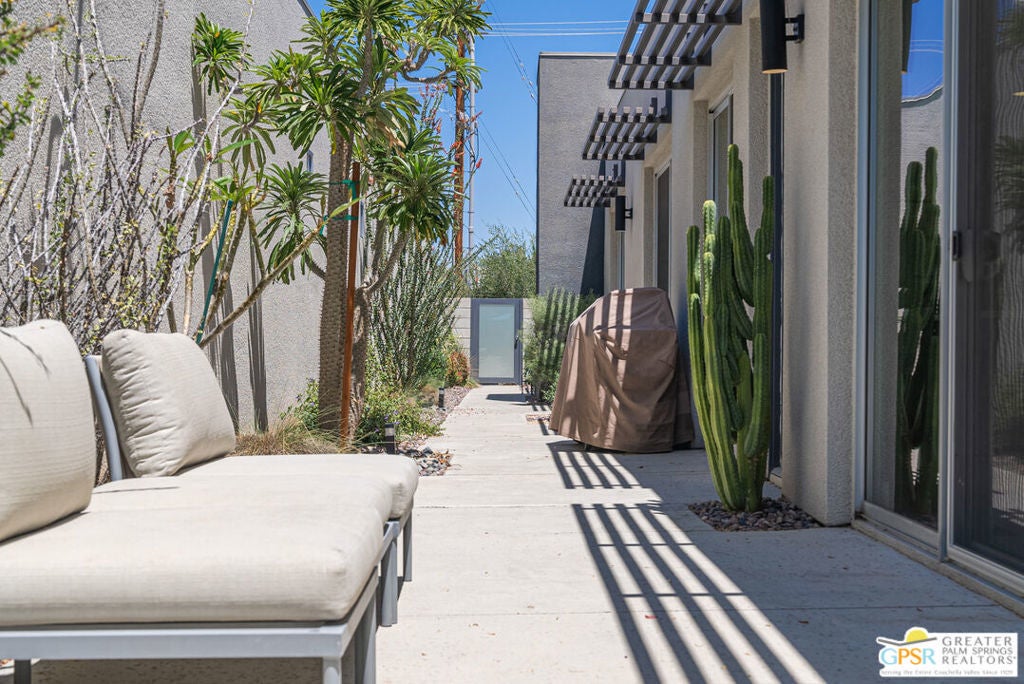 For Seasonal Lease: Located in the highly desirable TWIN PALMS neighborhood, this beautiful MODERN home includes 1793 sqft of living space with 3 bedrooms, 3.5 bathrooms and a 2-car garage. PERFECT Southern California living with 10 foot ceilings and almost full walls of glass sliders meshes indoor and outdoor living. Mid-century style meets modern with a stylish freestanding Malm cone fireplace, and exterior aluminum eyebrows. Enjoy your own private art gallery adjacent to all three bedrooms. Interior features include 24x24 porcelain tiles, quartz counters, thermofoil cabinetry, Fisher & Paykel appliances, Miele washer and dryer, Low emissivity glass, a tankless water heater, low flow dual-flush toilets, 18 solar panels (owned). Your private outdoor experience starts with a front electric security gate entry to a lengthy side yard with BBQ and seating areas. The back yard hosts the private pool and spa, fire pit, seating area and MOUNTAIN views. Close proximity to outstanding Palm Springs establishments such as Koffi, ACE Hotel, V Hotel, El Mirasol and more. Offered furnished per inventory for you to start enjoying the Palm Springs life!