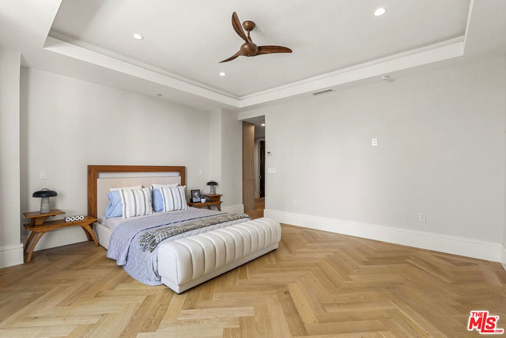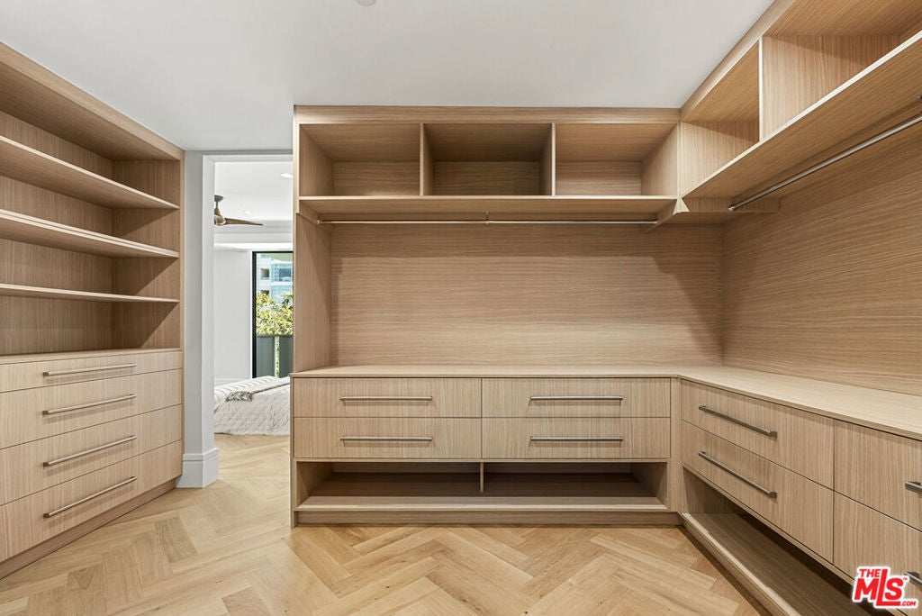 Welcome to Wilshire Terrace. As the very first residential tower constructed on the Wilshire Corridor, this property is a classic example of mid-century 1950s architecture. Built with robust concrete and steel, it features high ceilings and generous floor plans that balance iconic original design with modern conveniences. The porte-cochre, lobby, elevators, and common areas have all been thoughtfully and fully restored, all set within a beautiful and well-maintained two-acre private estate. Amenities include a wonderful pool and jacuzzi spa, a well-equipped fitness center, hair salon, updated common spaces throughout, and a 24-hour valet service along with full-time doorman. The building is also pet-friendly, welcoming residents and their four-legged companions.Apartment 2F has been fully and tastefully renovated, offering over 2,400 square feet with three spacious bedrooms, each with an en-suite bathroom, plus an additional powder room. The primary suite features a large walk-in closet, soaking tub, and dual-sink natural quartzite and natural wood vanity.High-end appliances and finishes include a Gaggenau refrigerator/freezer, two Sub-Zero wine refrigerators, dual dishwashers, premium range, Duravit toilets, Graff fixtures, custom cabinetry, European oak flooring in the main living areas and primary bedroom, and wool carpets in the secondary bedrooms. Facing due south, the residence receives ample natural light throughout the year and overlooks the pool and surrounding grounds. Residents benefit from Wilshire Terrace's full-service amenities, including utilities, high-speed internet, cable, and security. The apartment also comes with two, non-tandem fully secure parking spaces and a separate, generously-sized storage unit. Conveniently situated, the property is literally minutes from Beverly Hills, Century City, and UCLA, with Holmby Park just a ten-minute stroll away.