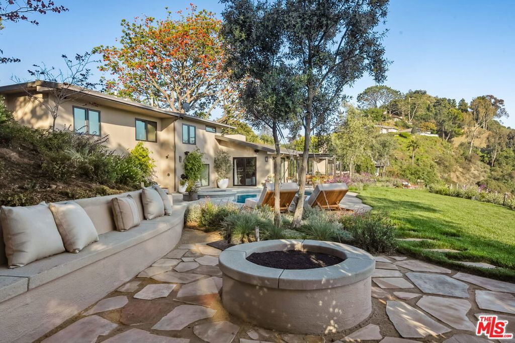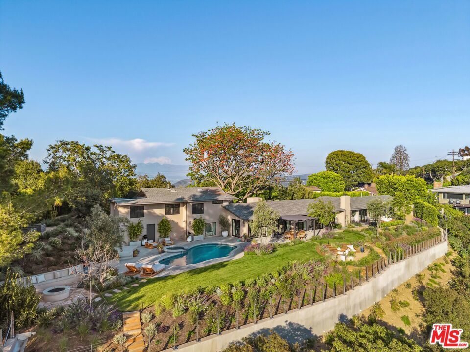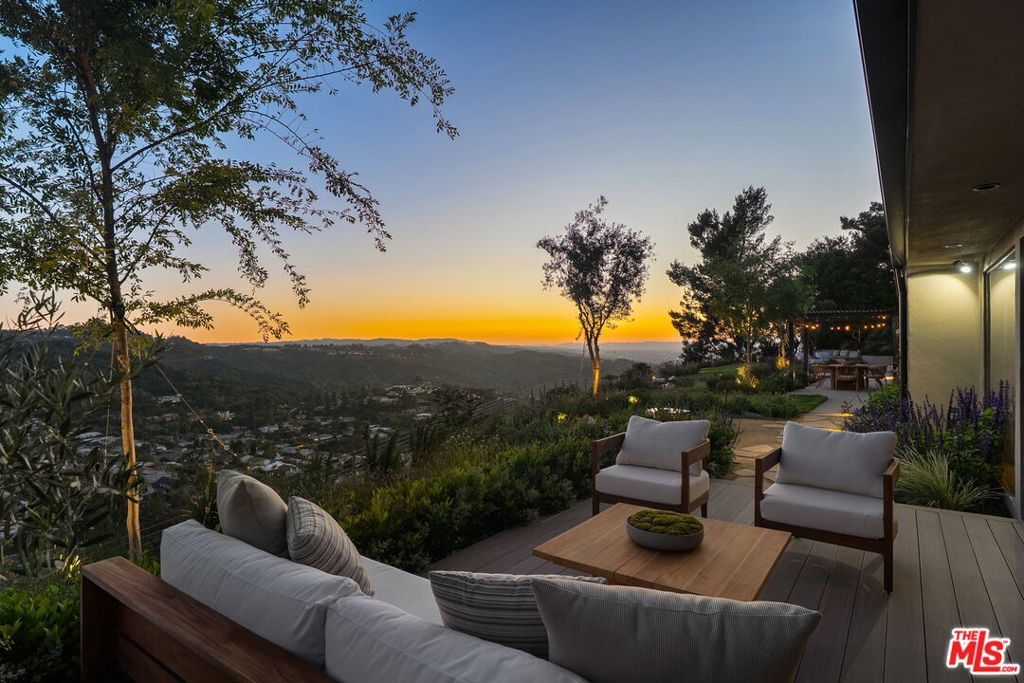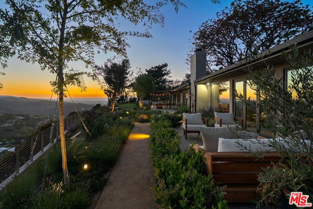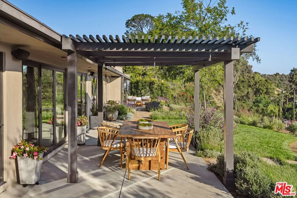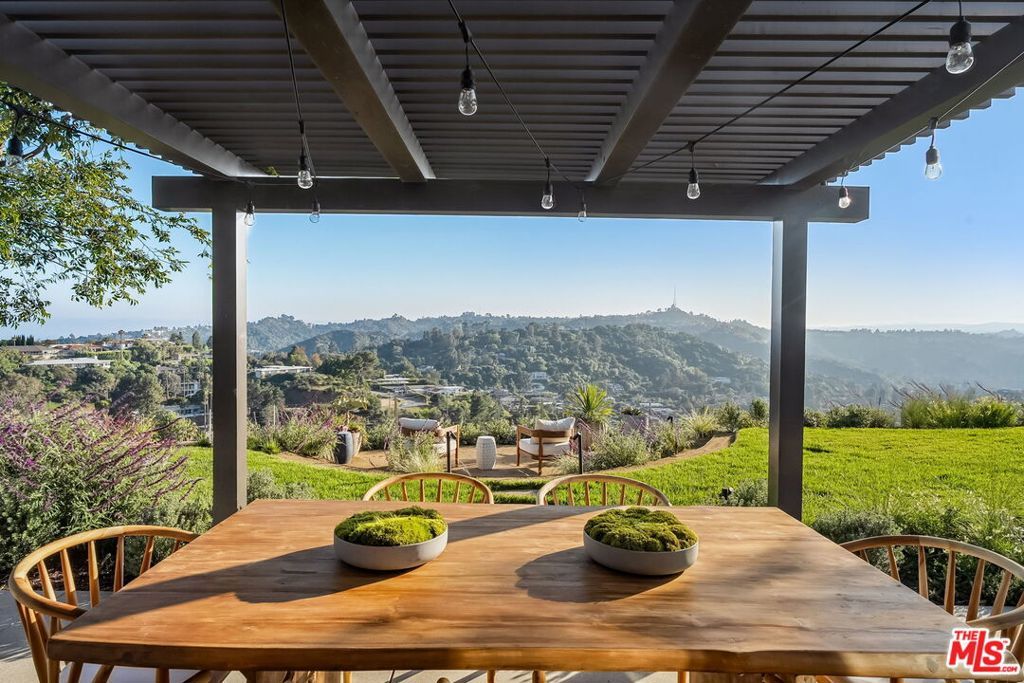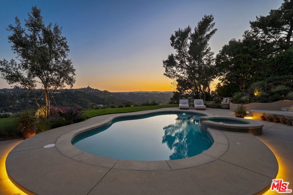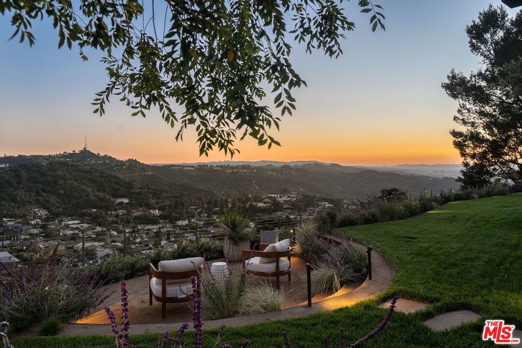 This exclusive Hollywood Hills estate delivers absolute privacy, elevated design, and a palpable sense of calm energy rarely found in Los Angeles. Set at the end of one of the most coveted dead-end streets with commanding A+ views, the property carries undeniable Hollywood pedigreeformerly the private sanctuary of actor Chris Evans, known worldwide as Captain America in Marvel's Avengers franchise.Behind its gates lies a property defined by serenity and intention. Evans personally outfitted the home's private gym as his Captain America training space, transforming the estate into a secluded environment that radiates focus and renewal. Neighboring architectural landmarksa Richard Neutra masterpiece and the double-lot estate once owned by Tom Cruiseunderscore the street's architectural and cultural significance.The grounds themselves feel almost enchanted. Mature coral trees anchor lush gardens and vine-draped terraces that evoke a natural flow of light and energy throughout the day. Multiple patios, stone pathways, and hidden sitting areas create a park-like atmosphere that shifts effortlessly from meditative retreat to glamorous entertaining space. The entire property carries an unmistakable sense of balanceprivacy without isolation, grandeur without pretense.Inside, interiors by Stewart-Gulrajani merge architecture and artistry with exacting precision. Vaulted open-beam ceilings, vast picture windows, and refined finishes infuse each room with air, light, and composure. The main living spaces revolve around a dramatic fireplace and connect fluidly to a generous dining area with a sleek wet barevery detail engineered for both aesthetic impact and effortless use. Expertly designed retaining walls expand the usable hillside pad, showcasing an understanding of form and function that mirrors the property's disciplined calm.The chef's kitchen sits at the heart of the home beneath natural skylightsanchored by a 60-inch Wolf range beneath a 10-foot custom hood, Sub-Zero refrigeration, dual Thermador dishwashers, a Miele espresso system, and Bianca marble counters. It is a true culinary workspace designed for rhythm and precision.The southern wing holds the primary suitean elevated sanctuary opening to an Ipe-wood deck overlooking the Santa Monica Mountains. A limestone-and-Calacatta-marble bath with radiant floors, steam shower, and freestanding tub creates a spa environment defined by light and stillness.Beyond the main residence, a full guest ADU includes its own kitchen, office, and Captain America-inspired gym, extending the property's distinctive energy to every visitor.Every room opens to terraces, vineyard-inspired gardens, and a pool-and-spa oasis oriented toward cinematic sunsets over Laurel Canyon. The estate's natural harmonybetween landscape, structure, and spiritmakes it more than a home. It is a retreat of rare composition, where architectural mastery and an almost magnetic tranquility coexist in complete balance.