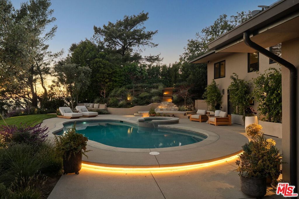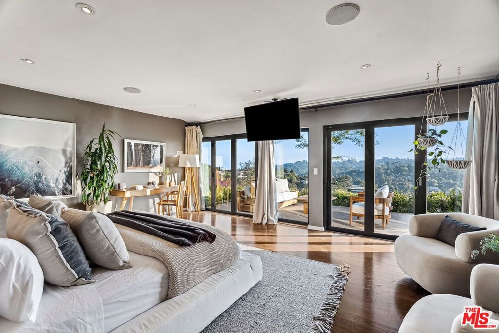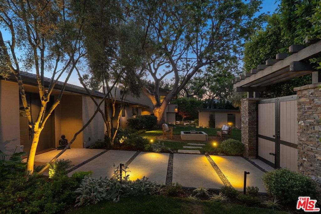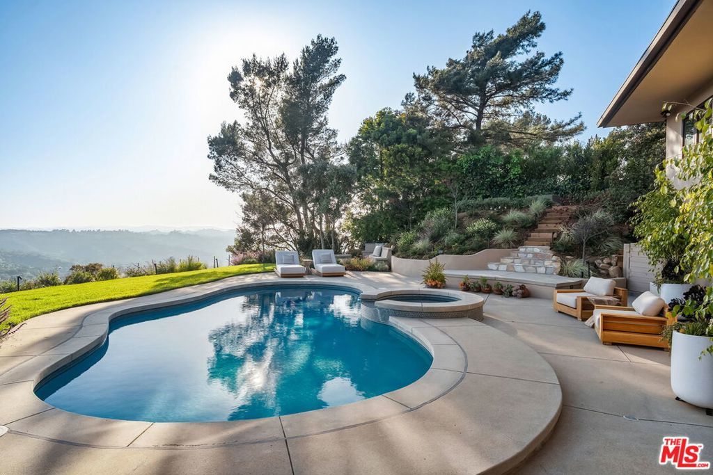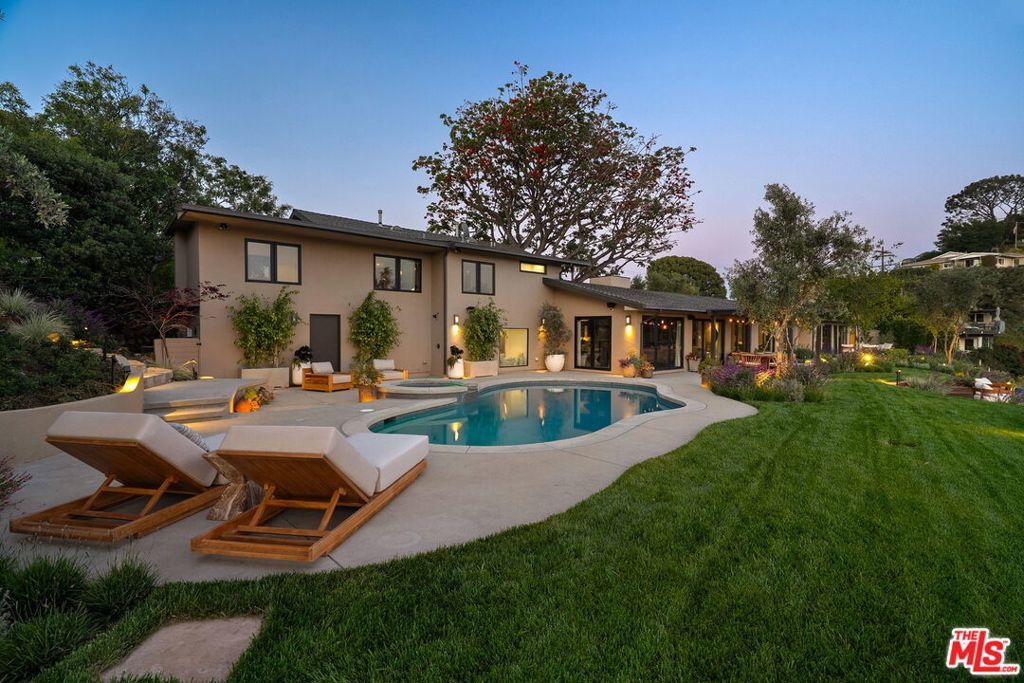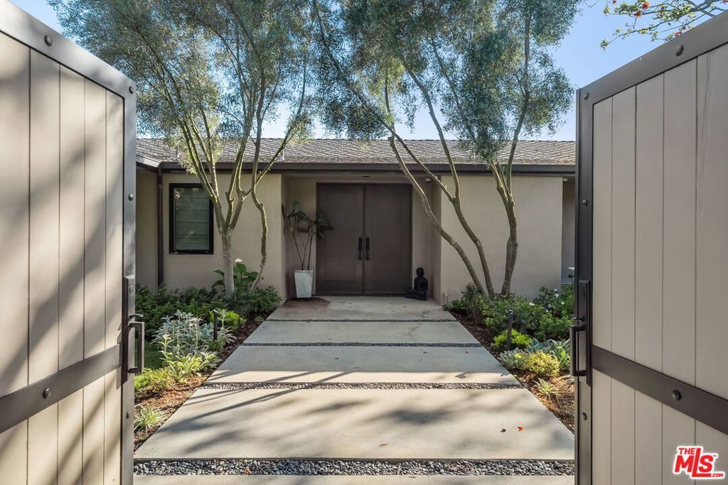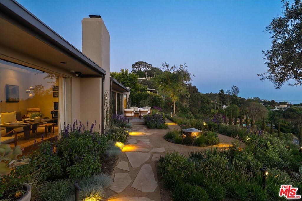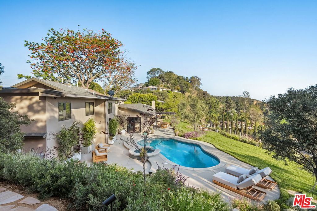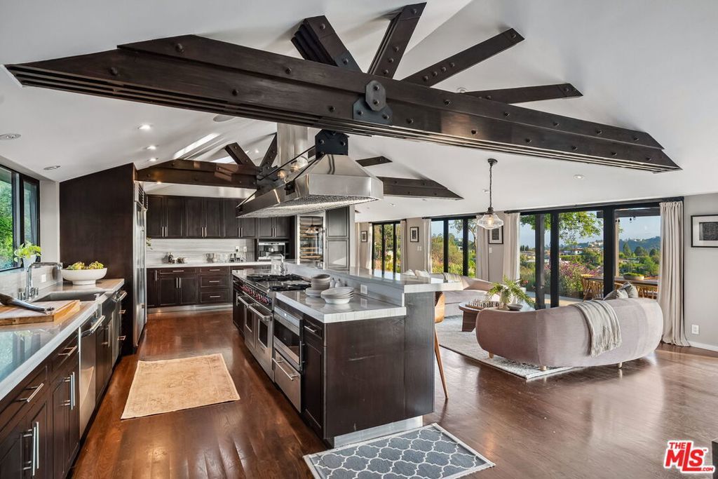 This exclusive Hollywood Hills estate delivers absolute privacy, elevated design, and a palpable sense of calm energy rarely found in Los Angeles. Set at the end of one of the most coveted dead-end streets with commanding A+ views, the property carries undeniable Hollywood pedigreeformerly the private sanctuary of actor Chris Evans, known worldwide as Captain America in Marvel's Avengers franchise.Behind its gates lies a property defined by serenity and intention. Evans personally outfitted the home's private gym as his Captain America training space, transforming the estate into a secluded environment that radiates focus and renewal. Neighboring architectural landmarksa Richard Neutra masterpiece and the double-lot estate once owned by Tom Cruiseunderscore the street's architectural and cultural significance.The grounds themselves feel almost enchanted. Mature coral trees anchor lush gardens and vine-draped terraces that evoke a natural flow of light and energy throughout the day. Multiple patios, stone pathways, and hidden sitting areas create a park-like atmosphere that shifts effortlessly from meditative retreat to glamorous entertaining space. The entire property carries an unmistakable sense of balanceprivacy without isolation, grandeur without pretense.Inside, interiors by Stewart-Gulrajani merge architecture and artistry with exacting precision. Vaulted open-beam ceilings, vast picture windows, and refined finishes infuse each room with air, light, and composure. The main living spaces revolve around a dramatic fireplace and connect fluidly to a generous dining area with a sleek wet barevery detail engineered for both aesthetic impact and effortless use. Expertly designed retaining walls expand the usable hillside pad, showcasing an understanding of form and function that mirrors the property's disciplined calm.The chef's kitchen sits at the heart of the home beneath natural skylightsanchored by a 60-inch Wolf range beneath a 10-foot custom hood, Sub-Zero refrigeration, dual Thermador dishwashers, a Miele espresso system, and Bianca marble counters. It is a true culinary workspace designed for rhythm and precision.The southern wing holds the primary suitean elevated sanctuary opening to an Ipe-wood deck overlooking the Santa Monica Mountains. A limestone-and-Calacatta-marble bath with radiant floors, steam shower, and freestanding tub creates a spa environment defined by light and stillness.Beyond the main residence, a full guest ADU includes its own kitchen, office, and Captain America-inspired gym, extending the property's distinctive energy to every visitor.Every room opens to terraces, vineyard-inspired gardens, and a pool-and-spa oasis oriented toward cinematic sunsets over Laurel Canyon. The estate's natural harmonybetween landscape, structure, and spiritmakes it more than a home. It is a retreat of rare composition, where architectural mastery and an almost magnetic tranquility coexist in complete balance.