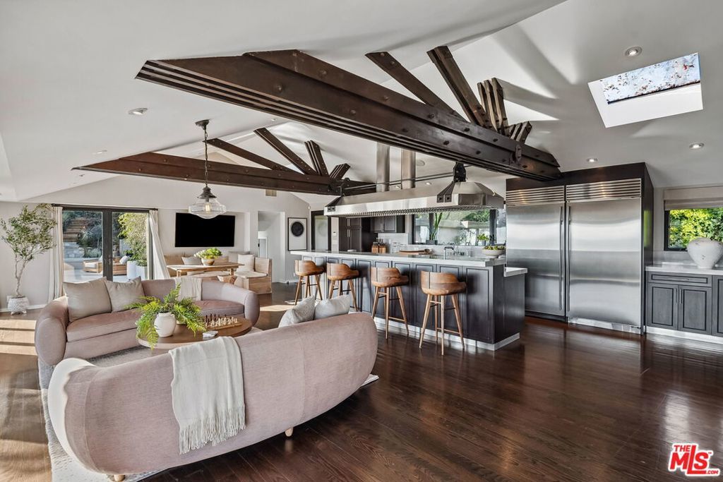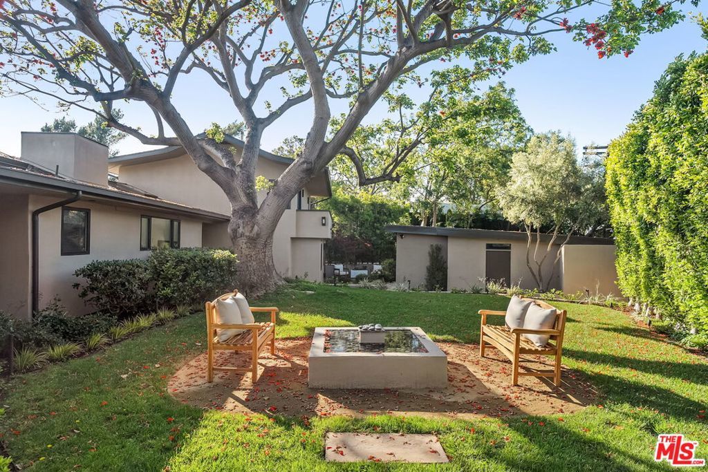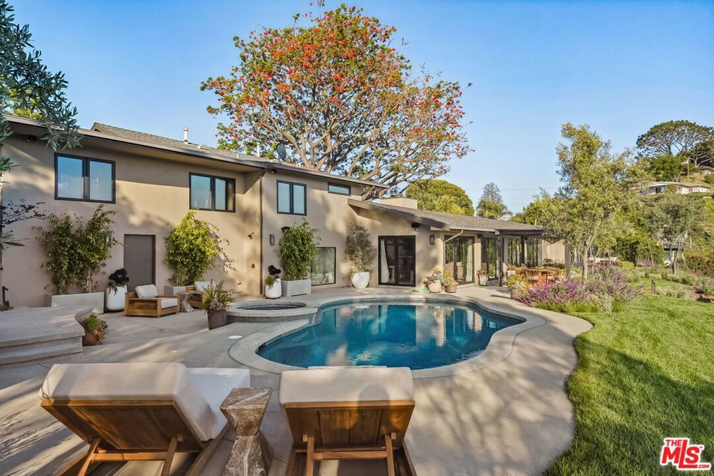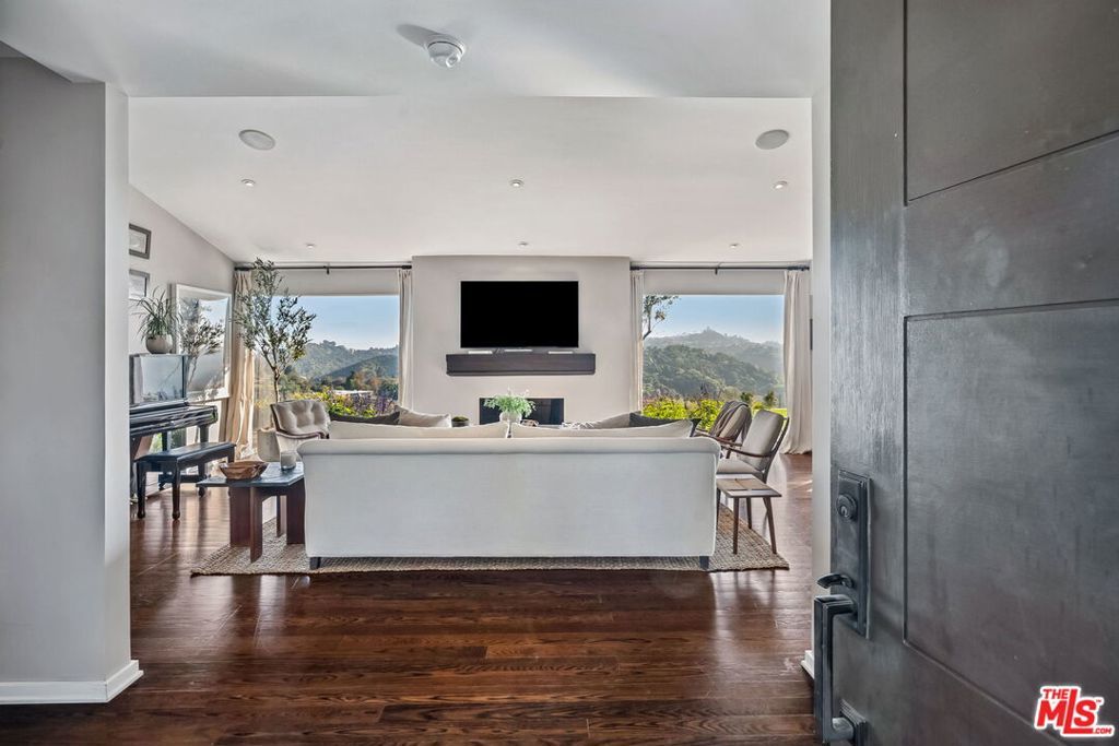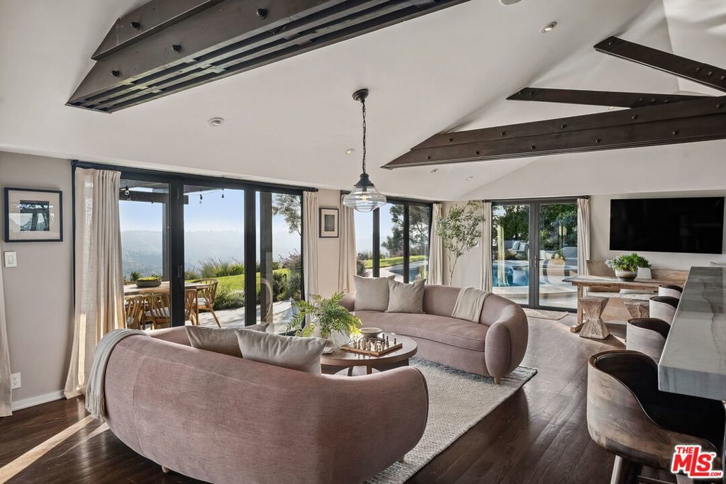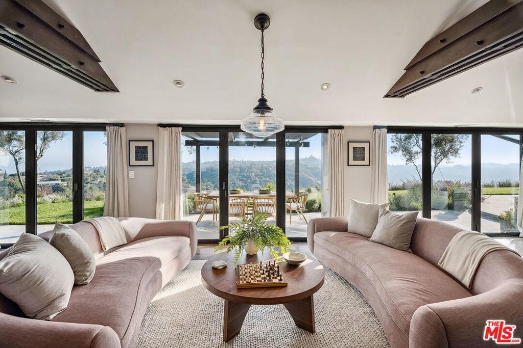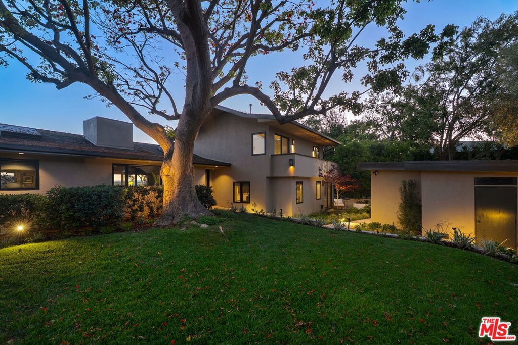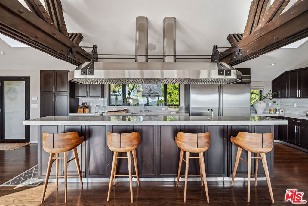 This exclusive Hollywood Hills estate delivers absolute privacy, elevated design, and a palpable sense of calm energy rarely found in Los Angeles. Set at the end of one of the most coveted dead-end streets with commanding A+ views, the property carries undeniable Hollywood pedigreeformerly the private sanctuary of actor Chris Evans, known worldwide as Captain America in Marvel's Avengers franchise.Behind its gates lies a property defined by serenity and intention. Evans personally outfitted the home's private gym as his Captain America training space, transforming the estate into a secluded environment that radiates focus and renewal. Neighboring architectural landmarksa Richard Neutra masterpiece and the double-lot estate once owned by Tom Cruiseunderscore the street's architectural and cultural significance.The grounds themselves feel almost enchanted. Mature coral trees anchor lush gardens and vine-draped terraces that evoke a natural flow of light and energy throughout the day. Multiple patios, stone pathways, and hidden sitting areas create a park-like atmosphere that shifts effortlessly from meditative retreat to glamorous entertaining space. The entire property carries an unmistakable sense of balanceprivacy without isolation, grandeur without pretense.Inside, interiors by Stewart-Gulrajani merge architecture and artistry with exacting precision. Vaulted open-beam ceilings, vast picture windows, and refined finishes infuse each room with air, light, and composure. The main living spaces revolve around a dramatic fireplace and connect fluidly to a generous dining area with a sleek wet barevery detail engineered for both aesthetic impact and effortless use. Expertly designed retaining walls expand the usable hillside pad, showcasing an understanding of form and function that mirrors the property's disciplined calm.The chef's kitchen sits at the heart of the home beneath natural skylightsanchored by a 60-inch Wolf range beneath a 10-foot custom hood, Sub-Zero refrigeration, dual Thermador dishwashers, a Miele espresso system, and Bianca marble counters. It is a true culinary workspace designed for rhythm and precision.The southern wing holds the primary suitean elevated sanctuary opening to an Ipe-wood deck overlooking the Santa Monica Mountains. A limestone-and-Calacatta-marble bath with radiant floors, steam shower, and freestanding tub creates a spa environment defined by light and stillness.Beyond the main residence, a full guest ADU includes its own kitchen, office, and Captain America-inspired gym, extending the property's distinctive energy to every visitor.Every room opens to terraces, vineyard-inspired gardens, and a pool-and-spa oasis oriented toward cinematic sunsets over Laurel Canyon. The estate's natural harmonybetween landscape, structure, and spiritmakes it more than a home. It is a retreat of rare composition, where architectural mastery and an almost magnetic tranquility coexist in complete balance.