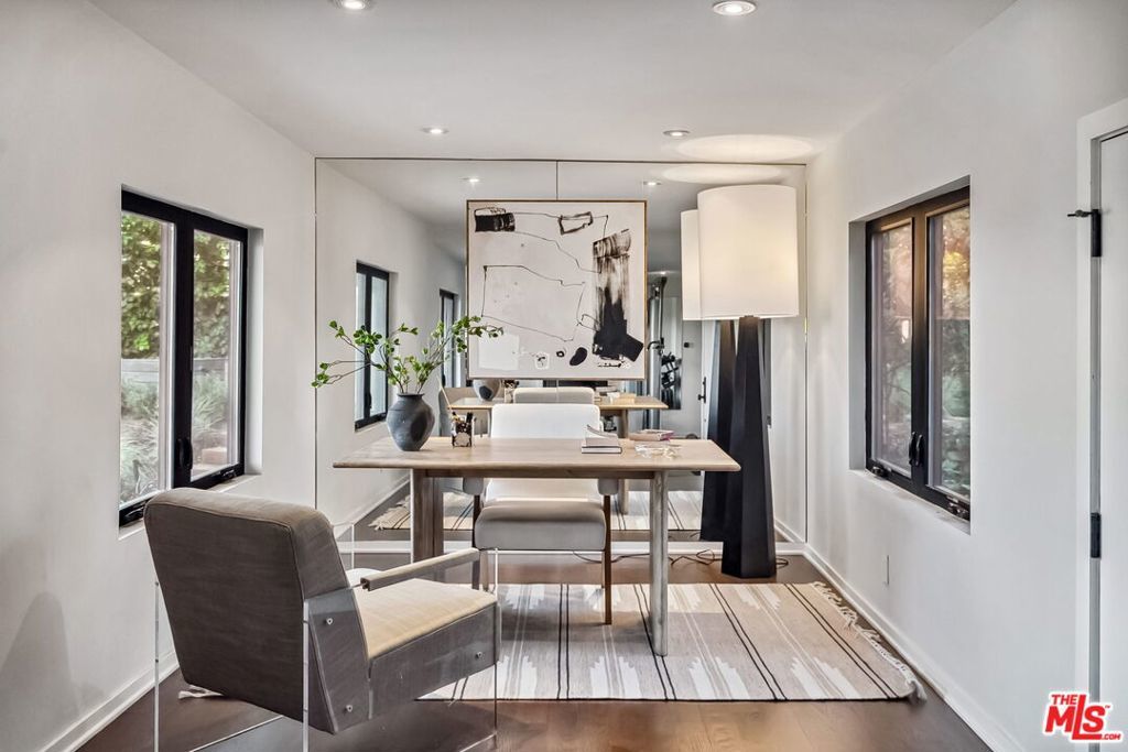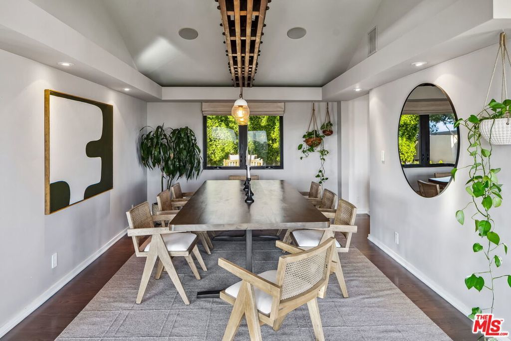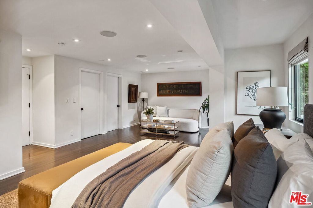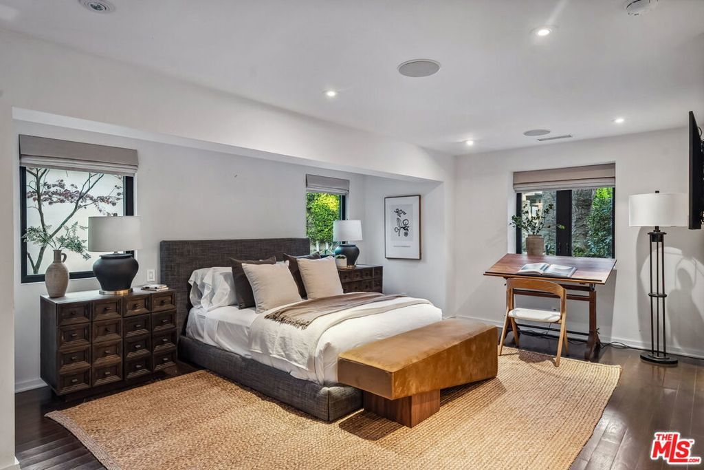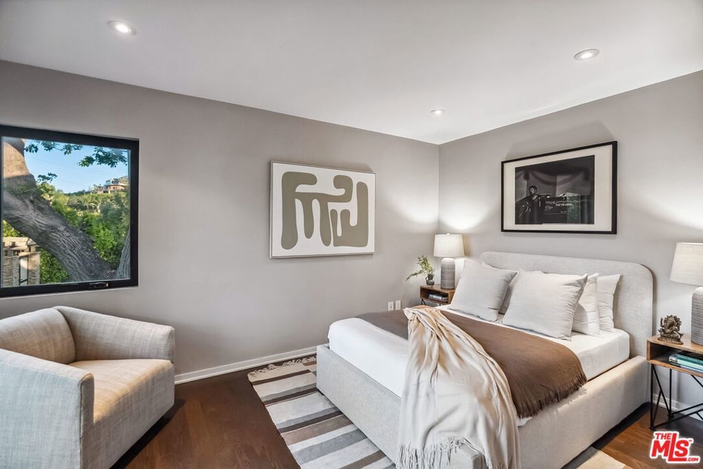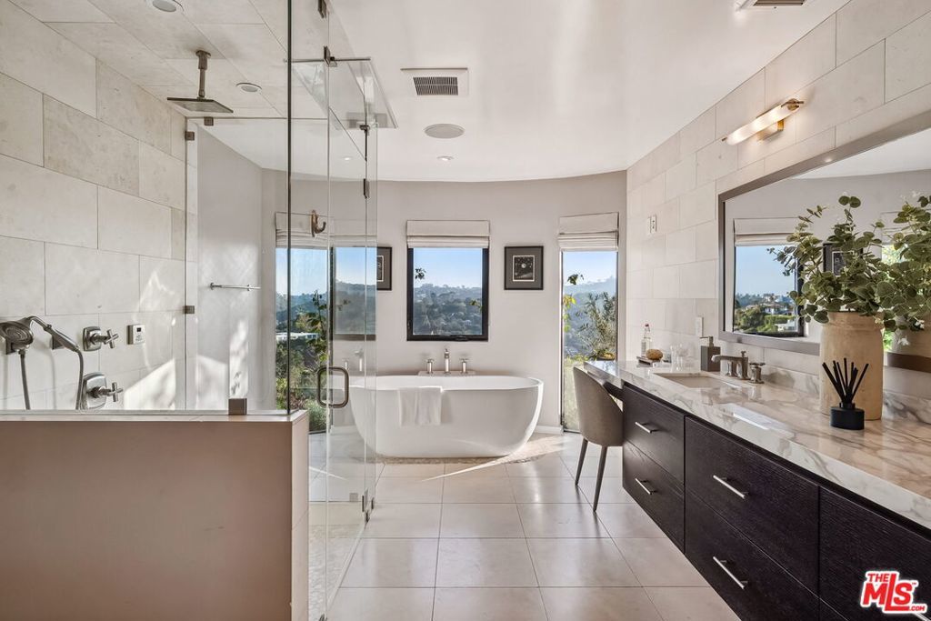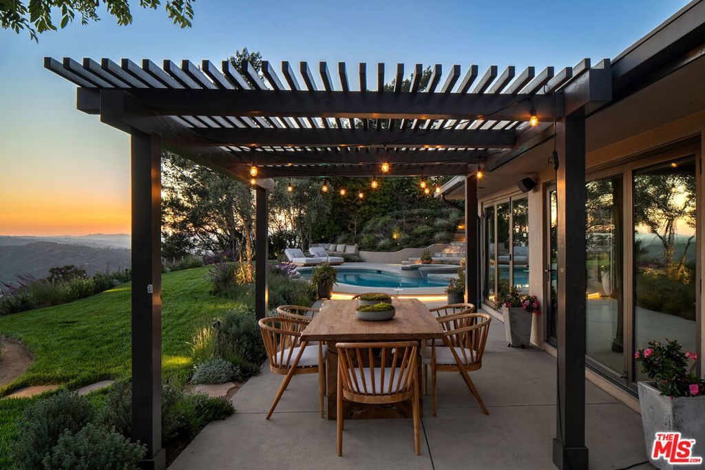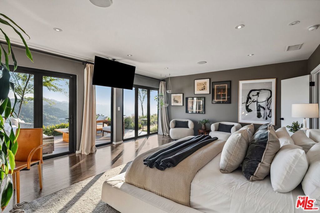 This exclusive Hollywood Hills estate delivers absolute privacy, elevated design, and a palpable sense of calm energy rarely found in Los Angeles. Set at the end of one of the most coveted dead-end streets with commanding A+ views, the property carries undeniable Hollywood pedigreeformerly the private sanctuary of actor Chris Evans, known worldwide as Captain America in Marvel's Avengers franchise.Behind its gates lies a property defined by serenity and intention. Evans personally outfitted the home's private gym as his Captain America training space, transforming the estate into a secluded environment that radiates focus and renewal. Neighboring architectural landmarksa Richard Neutra masterpiece and the double-lot estate once owned by Tom Cruiseunderscore the street's architectural and cultural significance.The grounds themselves feel almost enchanted. Mature coral trees anchor lush gardens and vine-draped terraces that evoke a natural flow of light and energy throughout the day. Multiple patios, stone pathways, and hidden sitting areas create a park-like atmosphere that shifts effortlessly from meditative retreat to glamorous entertaining space. The entire property carries an unmistakable sense of balanceprivacy without isolation, grandeur without pretense.Inside, interiors by Stewart-Gulrajani merge architecture and artistry with exacting precision. Vaulted open-beam ceilings, vast picture windows, and refined finishes infuse each room with air, light, and composure. The main living spaces revolve around a dramatic fireplace and connect fluidly to a generous dining area with a sleek wet barevery detail engineered for both aesthetic impact and effortless use. Expertly designed retaining walls expand the usable hillside pad, showcasing an understanding of form and function that mirrors the property's disciplined calm.The chef's kitchen sits at the heart of the home beneath natural skylightsanchored by a 60-inch Wolf range beneath a 10-foot custom hood, Sub-Zero refrigeration, dual Thermador dishwashers, a Miele espresso system, and Bianca marble counters. It is a true culinary workspace designed for rhythm and precision.The southern wing holds the primary suitean elevated sanctuary opening to an Ipe-wood deck overlooking the Santa Monica Mountains. A limestone-and-Calacatta-marble bath with radiant floors, steam shower, and freestanding tub creates a spa environment defined by light and stillness.Beyond the main residence, a full guest ADU includes its own kitchen, office, and Captain America-inspired gym, extending the property's distinctive energy to every visitor.Every room opens to terraces, vineyard-inspired gardens, and a pool-and-spa oasis oriented toward cinematic sunsets over Laurel Canyon. The estate's natural harmonybetween landscape, structure, and spiritmakes it more than a home. It is a retreat of rare composition, where architectural mastery and an almost magnetic tranquility coexist in complete balance.