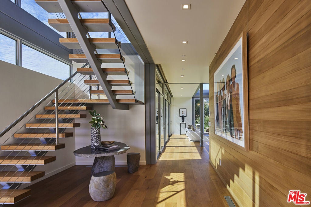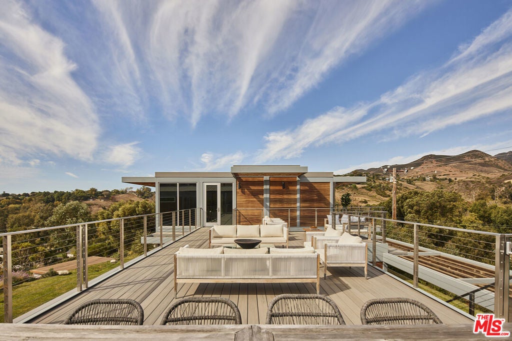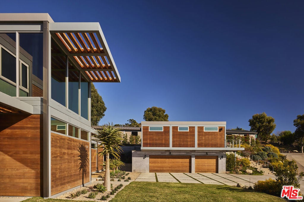 Situated in the heart of Malibu's tranquil Bonsall Canyon, this 2.2 acre architectural equestrian estate by Ray Kappe, presents a harmonious fusion of contemporary design and natural elegance. Framed by lush landscaping and open skies, the property exudes refined sophistication while embracing its serene surroundings. The residence itself is a testament to modern minimalism, with clean lines and an open layout that integrates indoor and outdoor spaces seamlessly. Expansive glass walls flood the interiors with natural light and offer sweeping views of the surrounding greenery and ocean. The main living area is anchored by a spacious great room, ideal for both intimate gatherings and larger-scale entertaining. Adjacent, a gourmet kitchen features premium appliances, custom cabinetry, and a dining area designed for leisurely meals that overlook the picturesque grounds. The primary suite, a mix of rustic and modern, has a private deck looking on to nearby vistas, and features spa-like ammenities from the natural landscape settings to high end bathroom finishes that provide extreme comfort.Perched above the garage and thoughtfully detached from the main residence, the private guest house offers a secluded retreat with idyllic views of the ocean and surrounding mountains. Designed with sophistication and comfort in mind, this guest house features an upgraded full kitchen, equipped with sleek, custom-built cabinetry and top-of-the-line appliances that cater to both casual and gourmet cooking. Two guest bedrooms, each with mountain views, provide a serene, resort-like atmosphere. With ample natural light and refined finishes, this guest residence epitomizes luxury and privacy, offering an elevated experience for visitors.Outside, meticulously landscaped grounds provide a sanctuary with a sparkling pool, lounge area, and verdant lawns. Thoughtful pathways meander through the property, leading to equestrian facilities that offer both functionality and aesthetic appeal, all while enjoying a panoramic ocean view. The entire estate is designed to provide an unmatched lifestyle experience, combining privacy, luxury, and the timeless allure of Malibu's coastal ambiance.